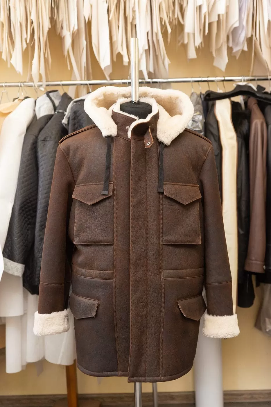 наличие съемных деталей из кожи или меха: капюшон, воротник, манжеты, подстежка.