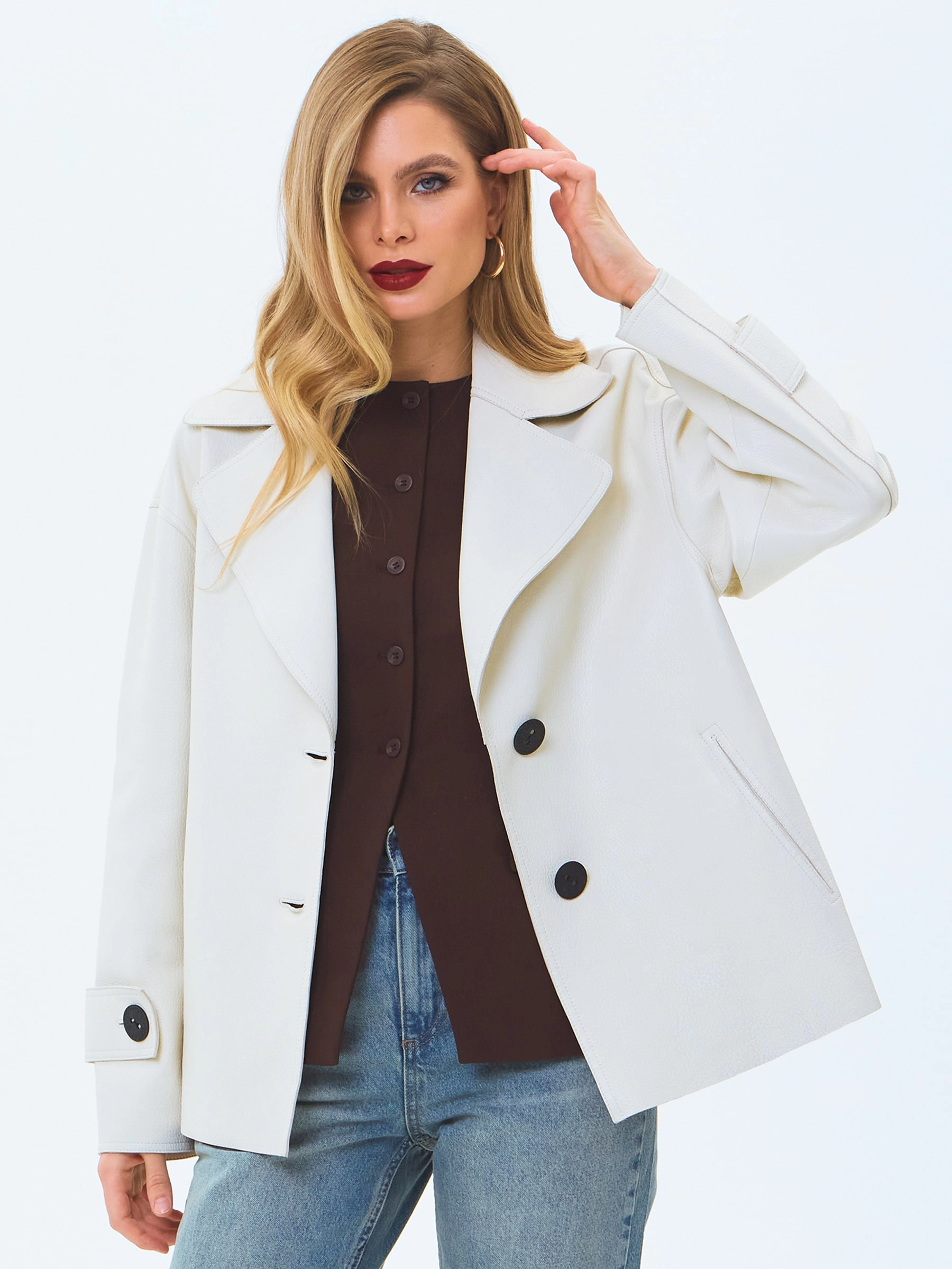 Белый кожаный женский пиджак премиум класса 3097, размер 44, артикул 24720