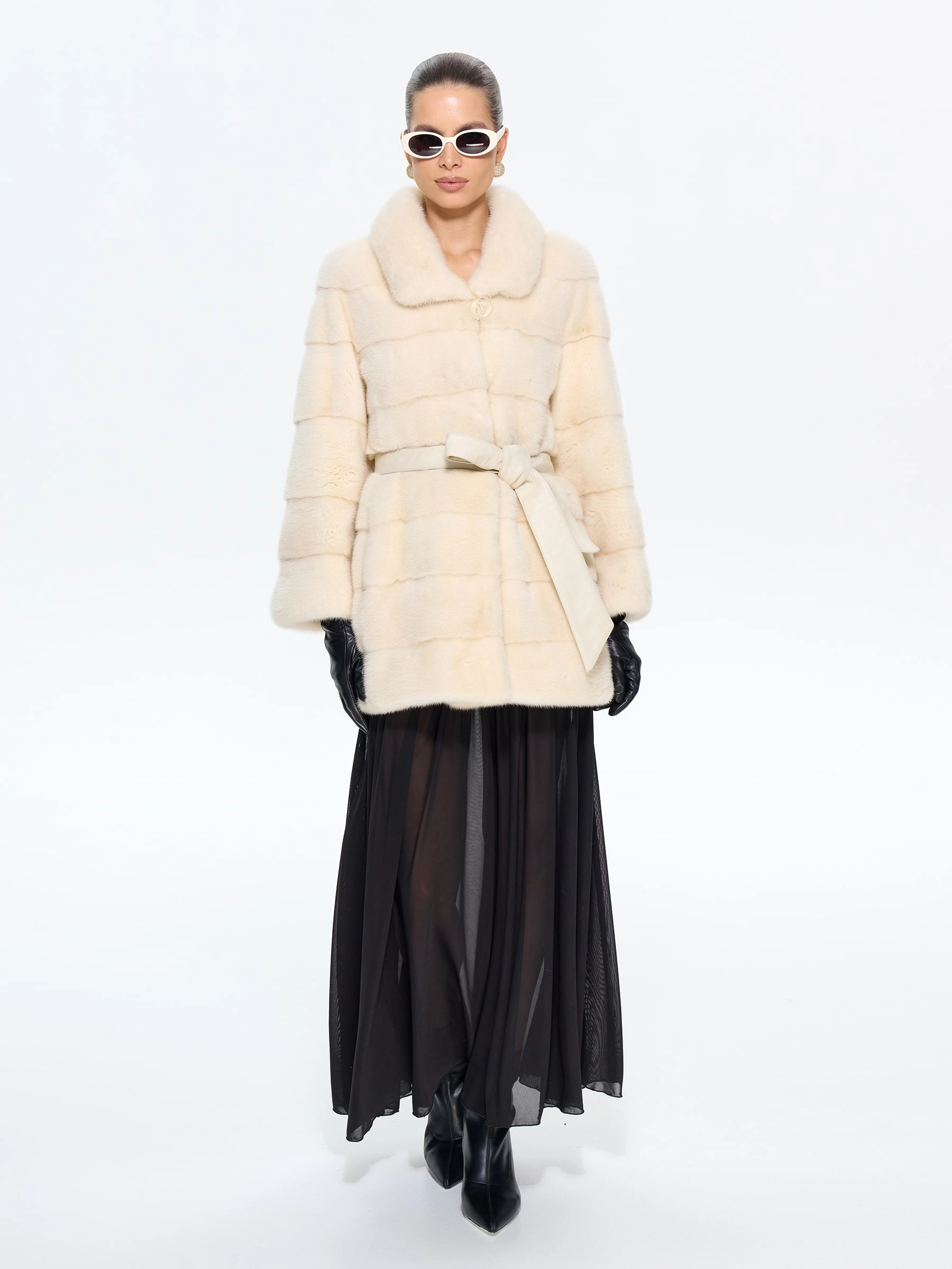 Бежевая женская норковая шуба MANAKAS 2478, размер 44, артикул 34270