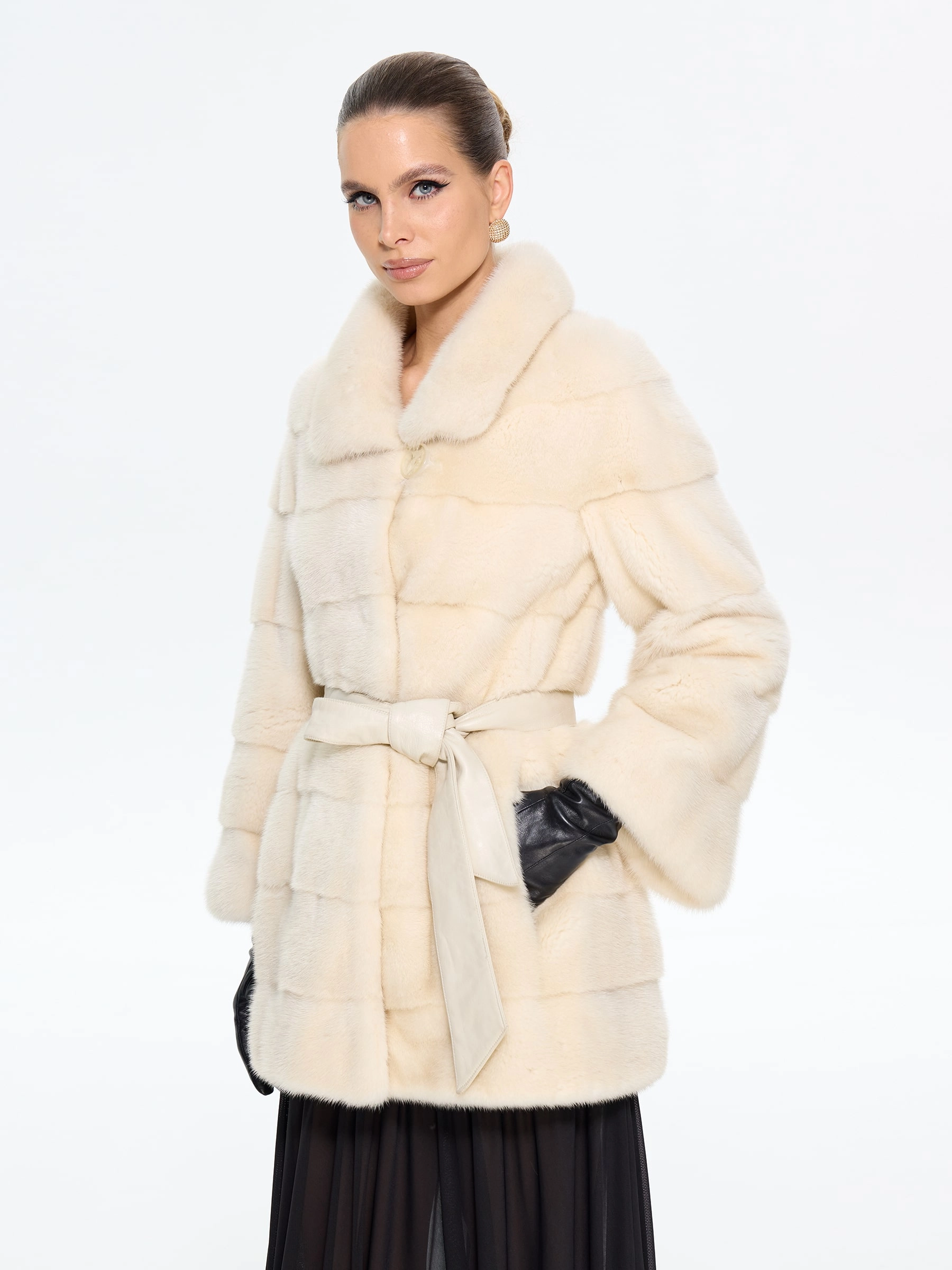 Товар бежевая женская норковая шуба manakas 2478, размер 44, артикул 34270 выполнен из норка с застежкой клипсы. Рассчитан на сезон: зима. Длина изделия 75 см, силуэт прямой.