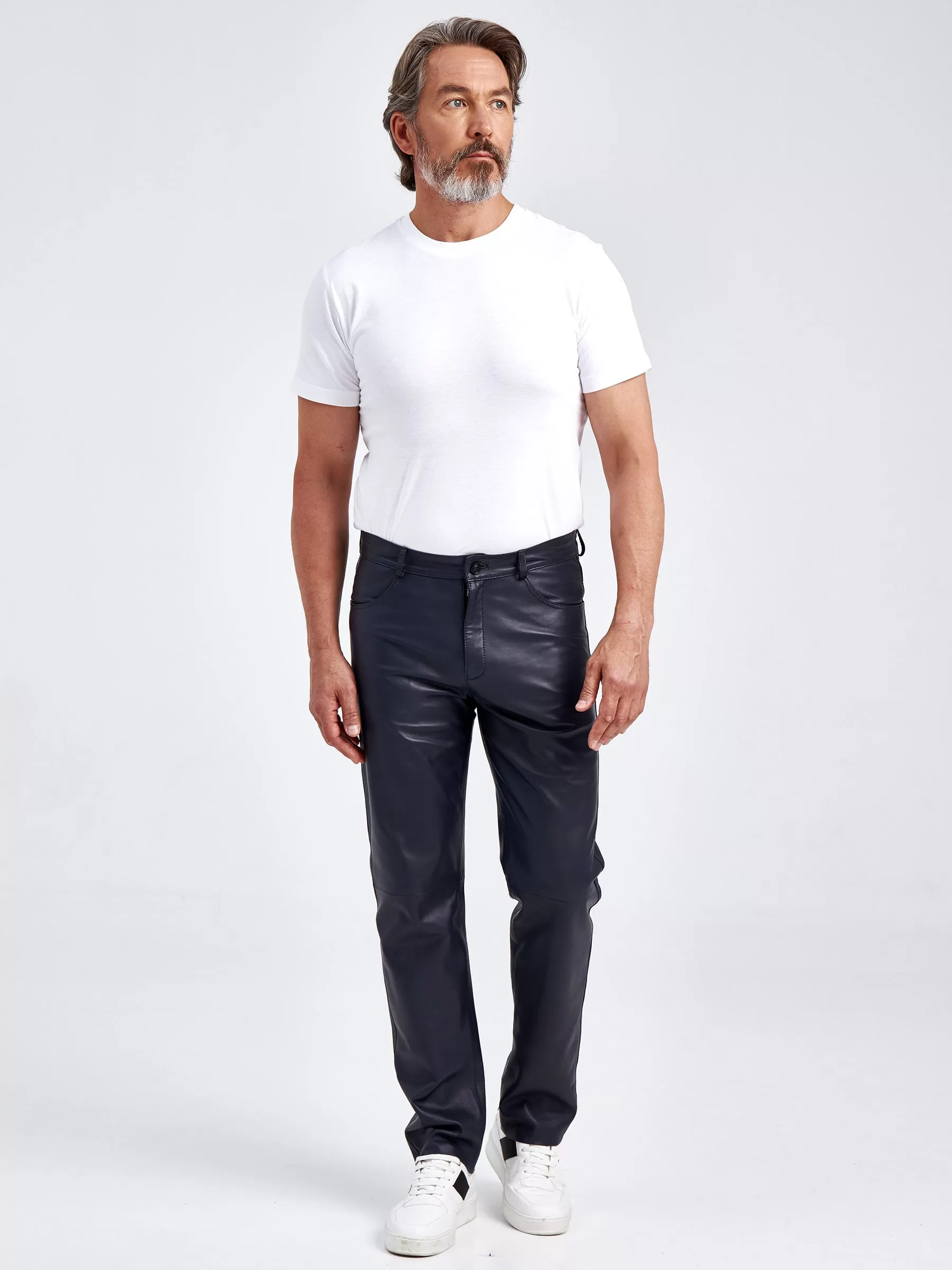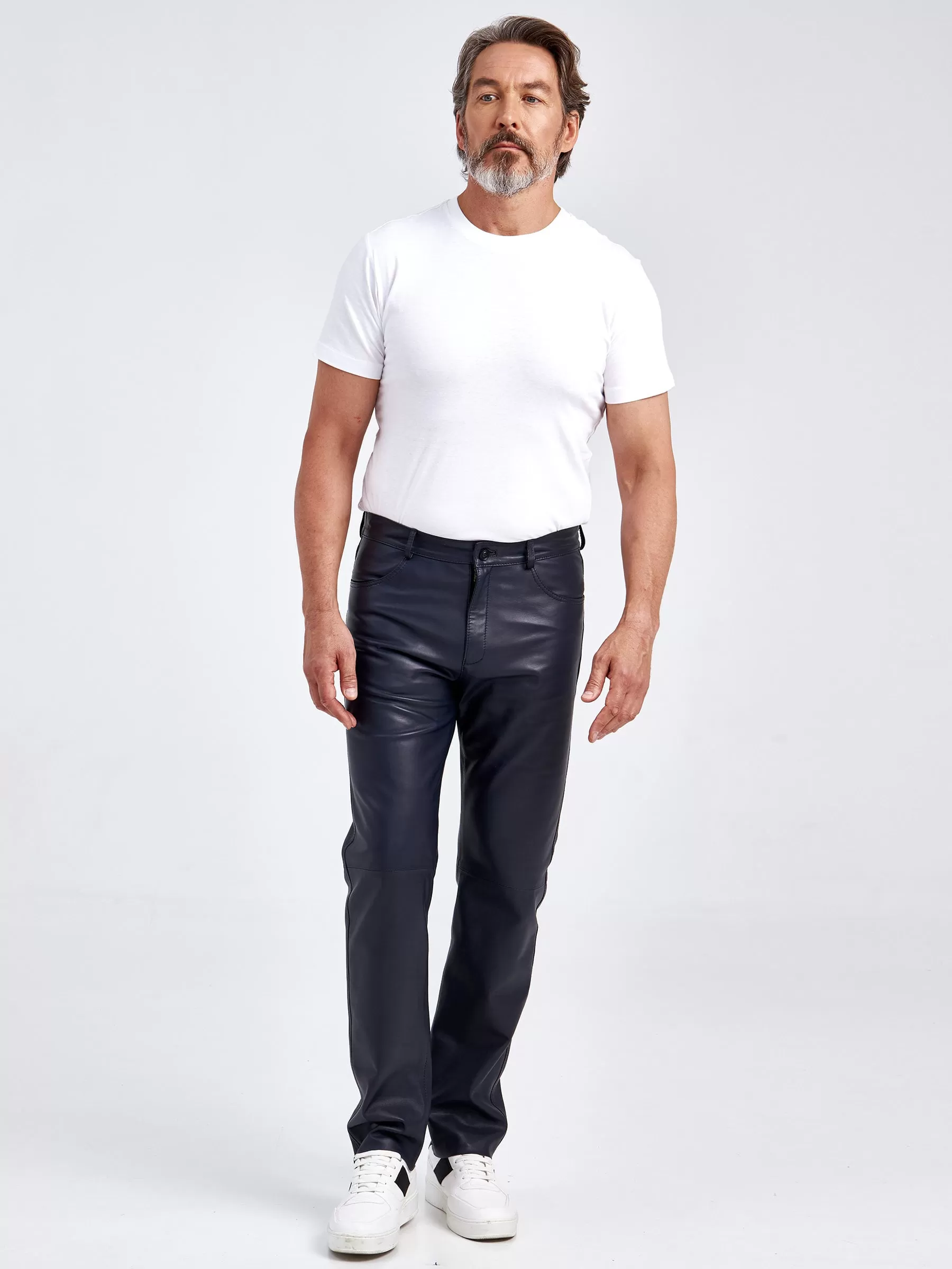 Прямые кожаные джинсы с классическим кроем. Модель поможет сформировать самые разные образы, одинаково удачно сочетаясь как с футболкой и кедами, так и с пальто и челси. Кожа особенно мягкая и слегка эластичная, поэтому вещь комфортно садится по фигуре и не сковывает движения.