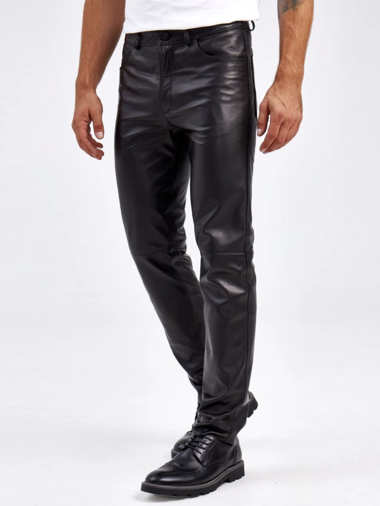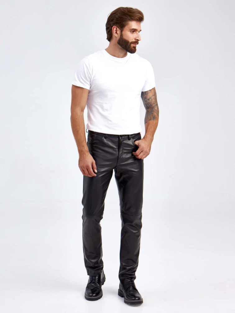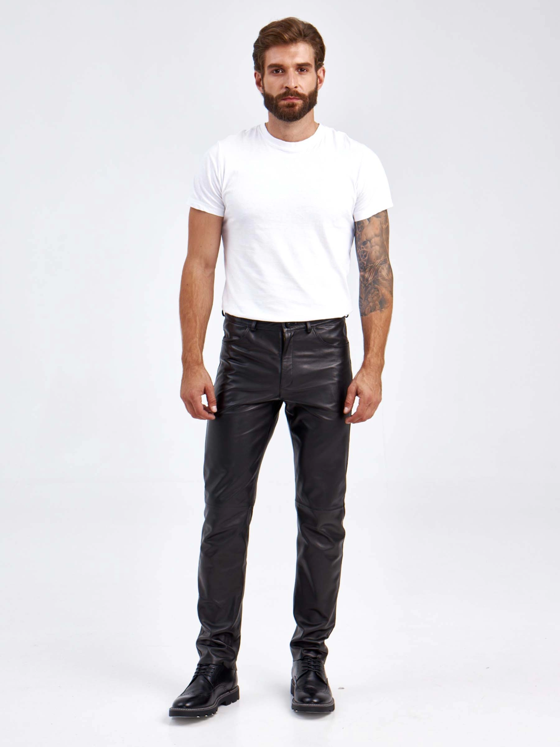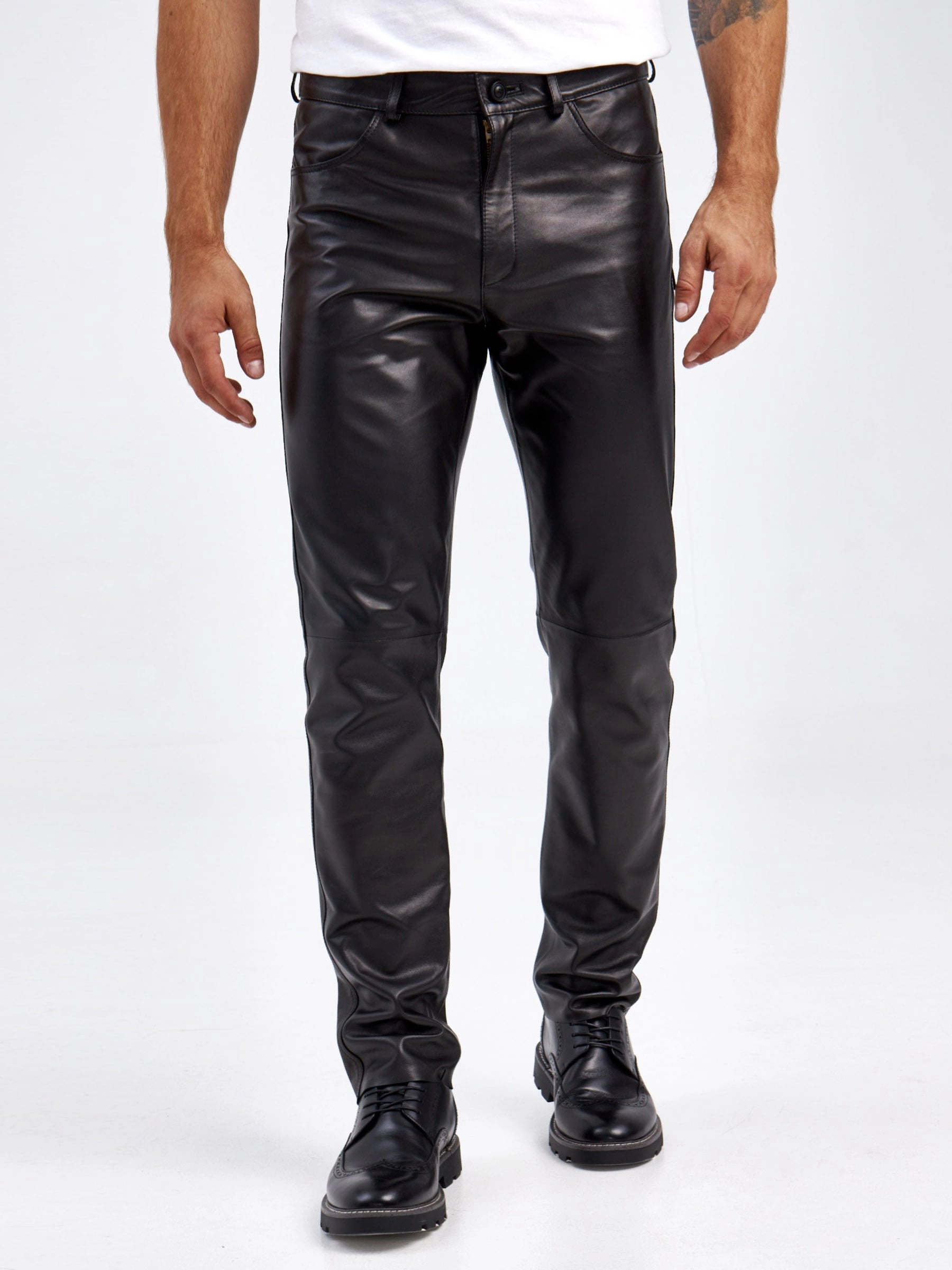Мужские брюки из натуральной кожи премиум класса 01, черные, размер 48, артикул 120012