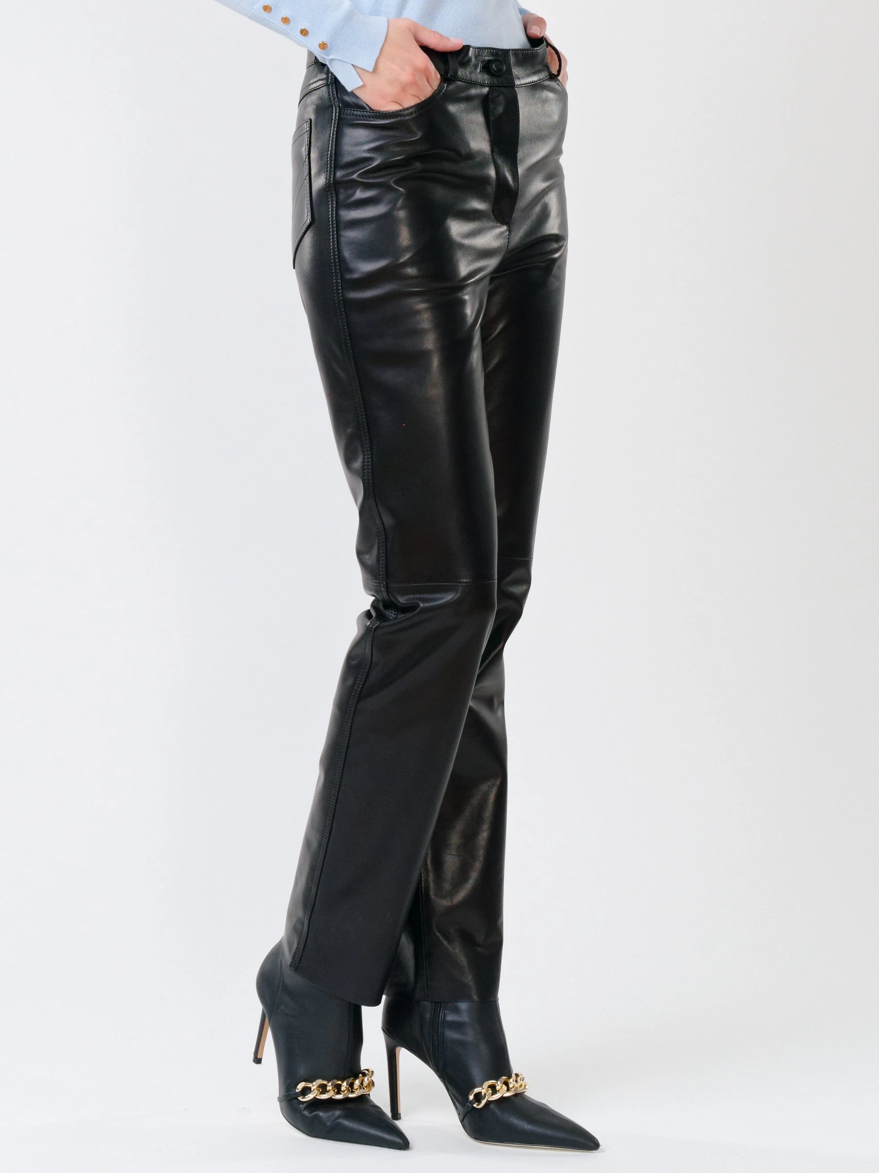 Кожаные зауженные женские брюки 02, черные, размер 44, артикул 85230