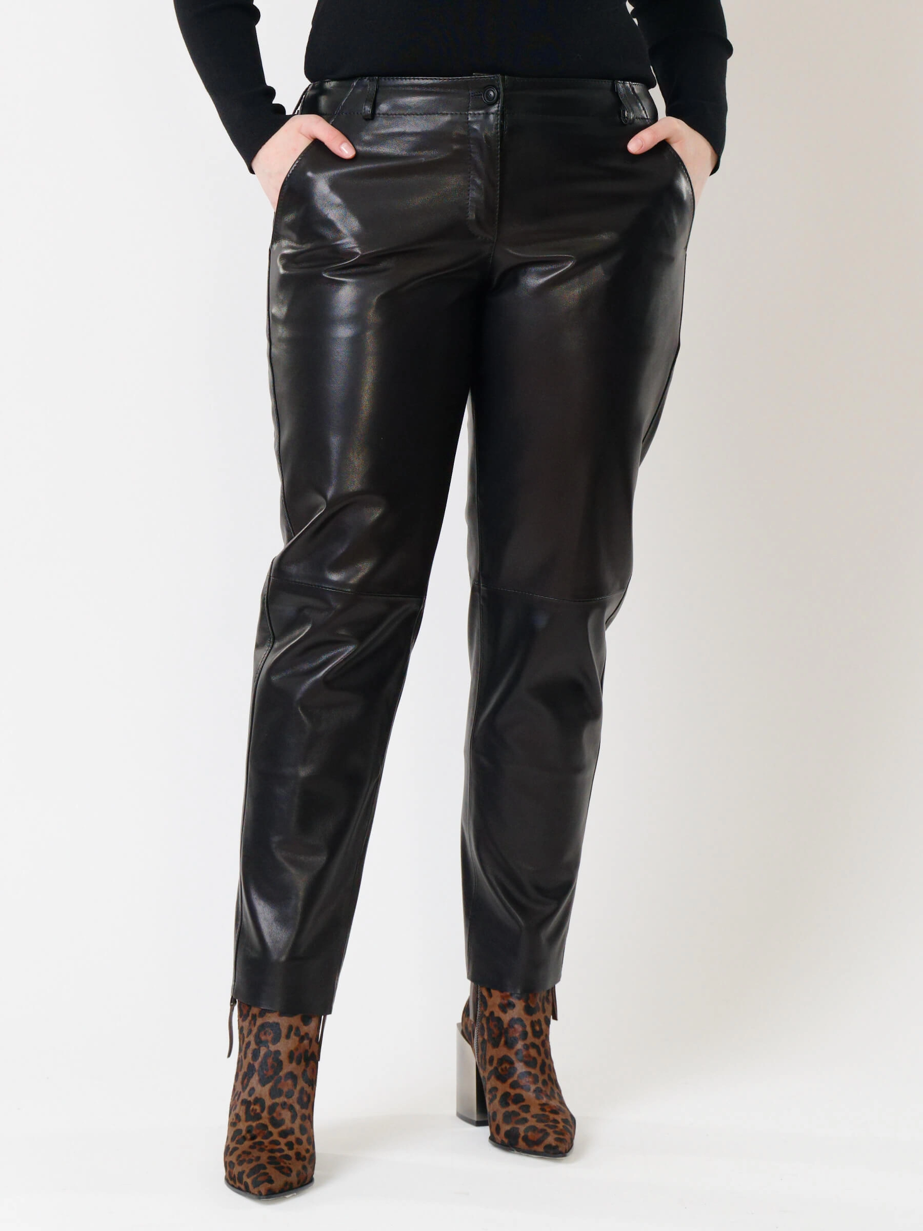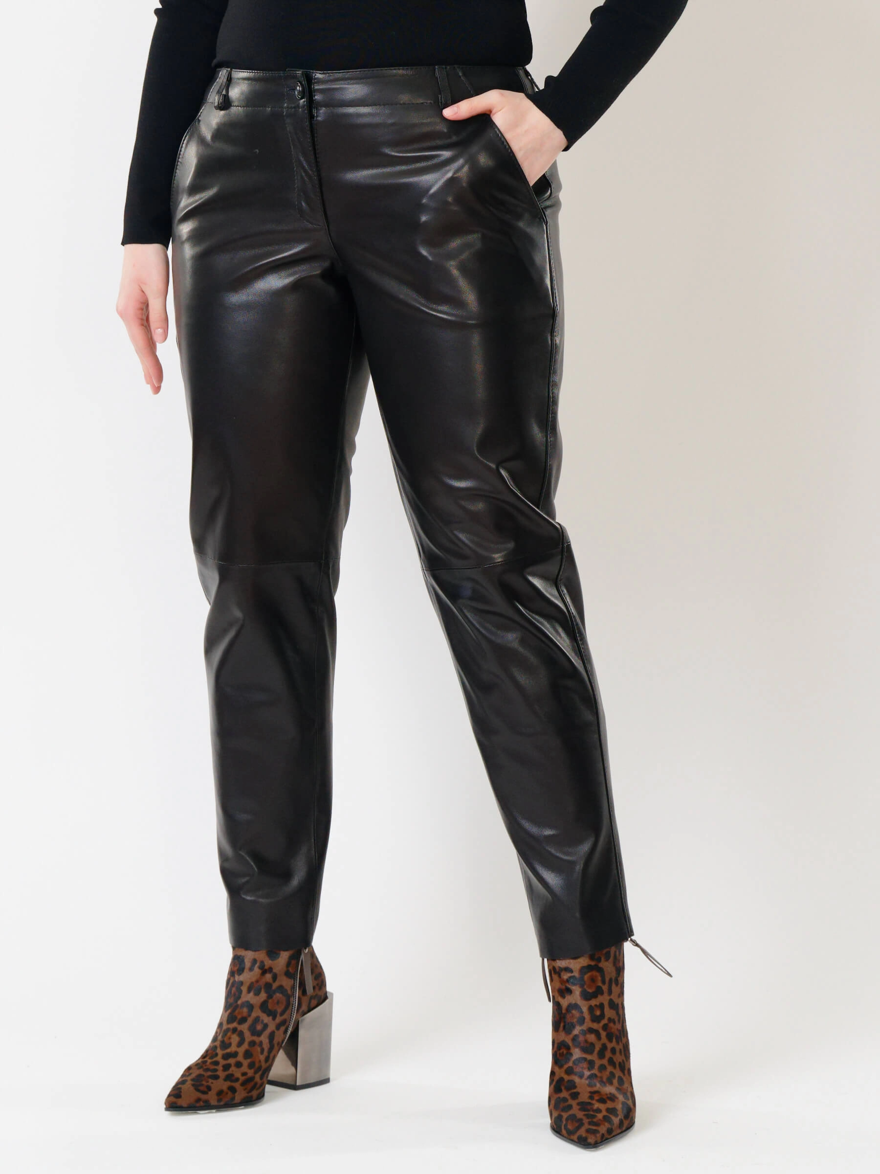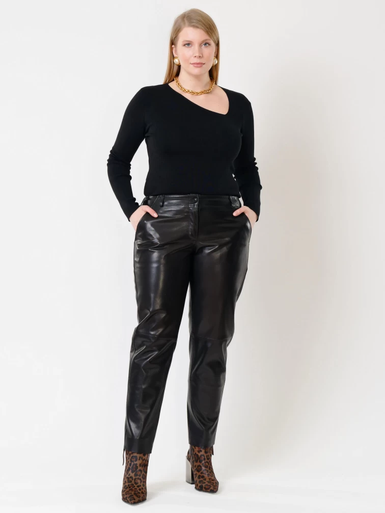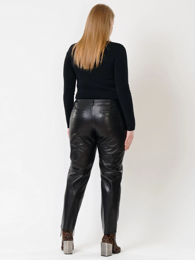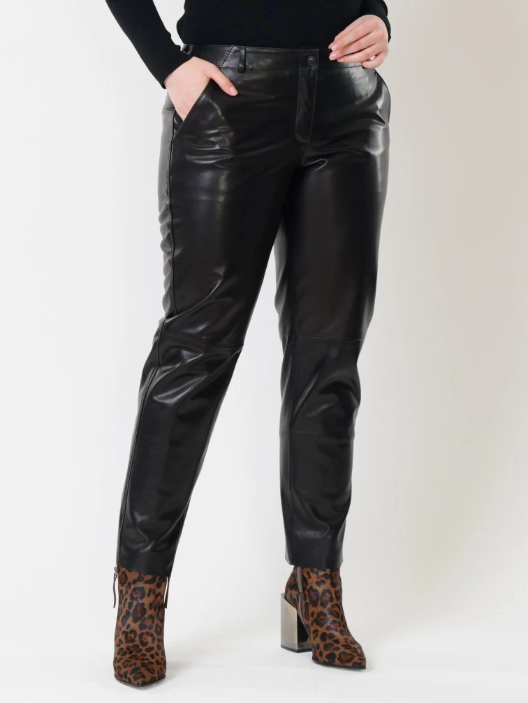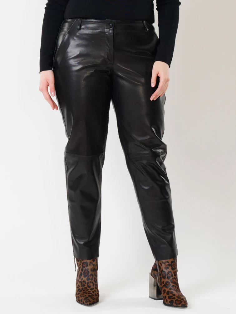 Зауженные женские кожаные брюки 03, черные, размер 48, артикул 85501