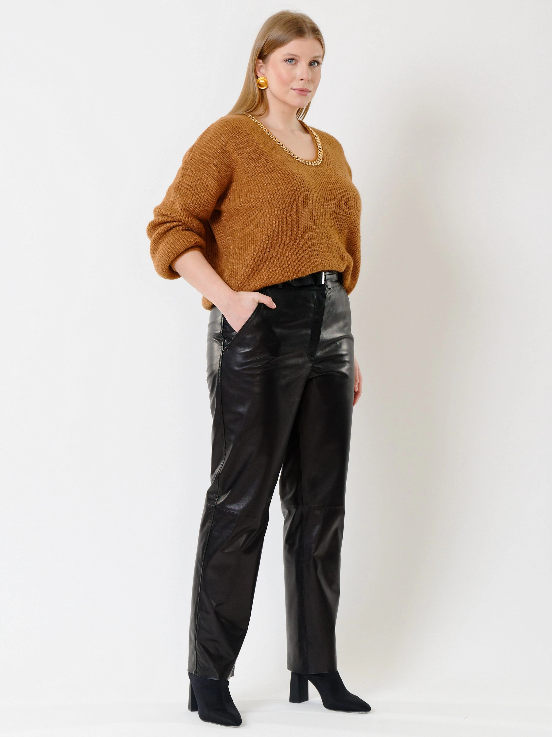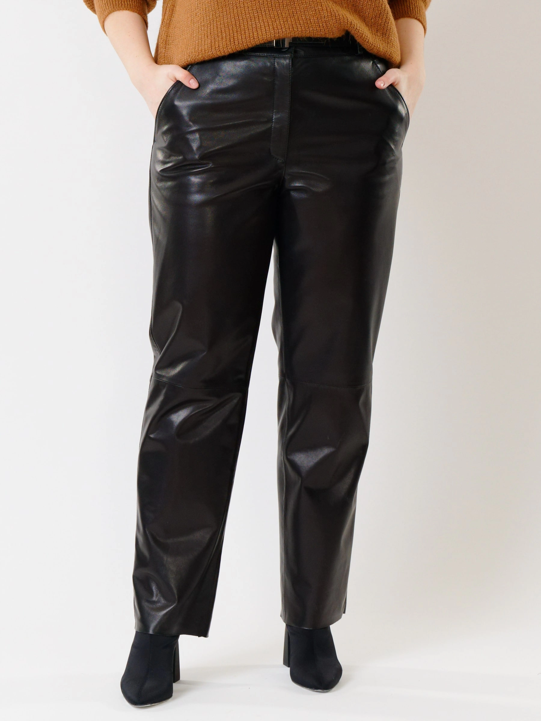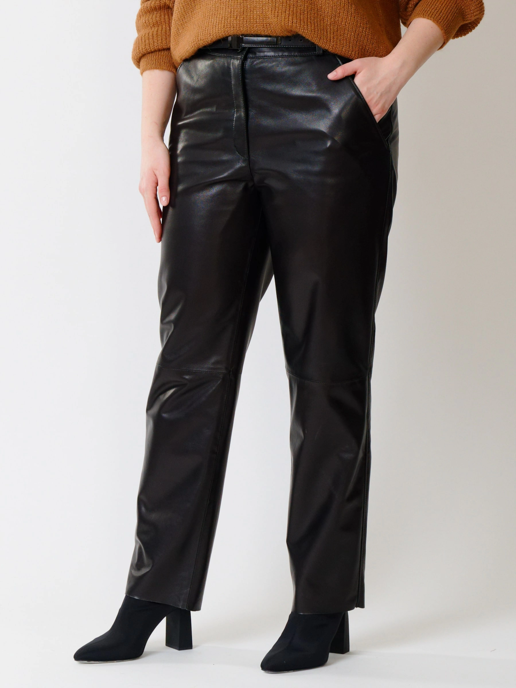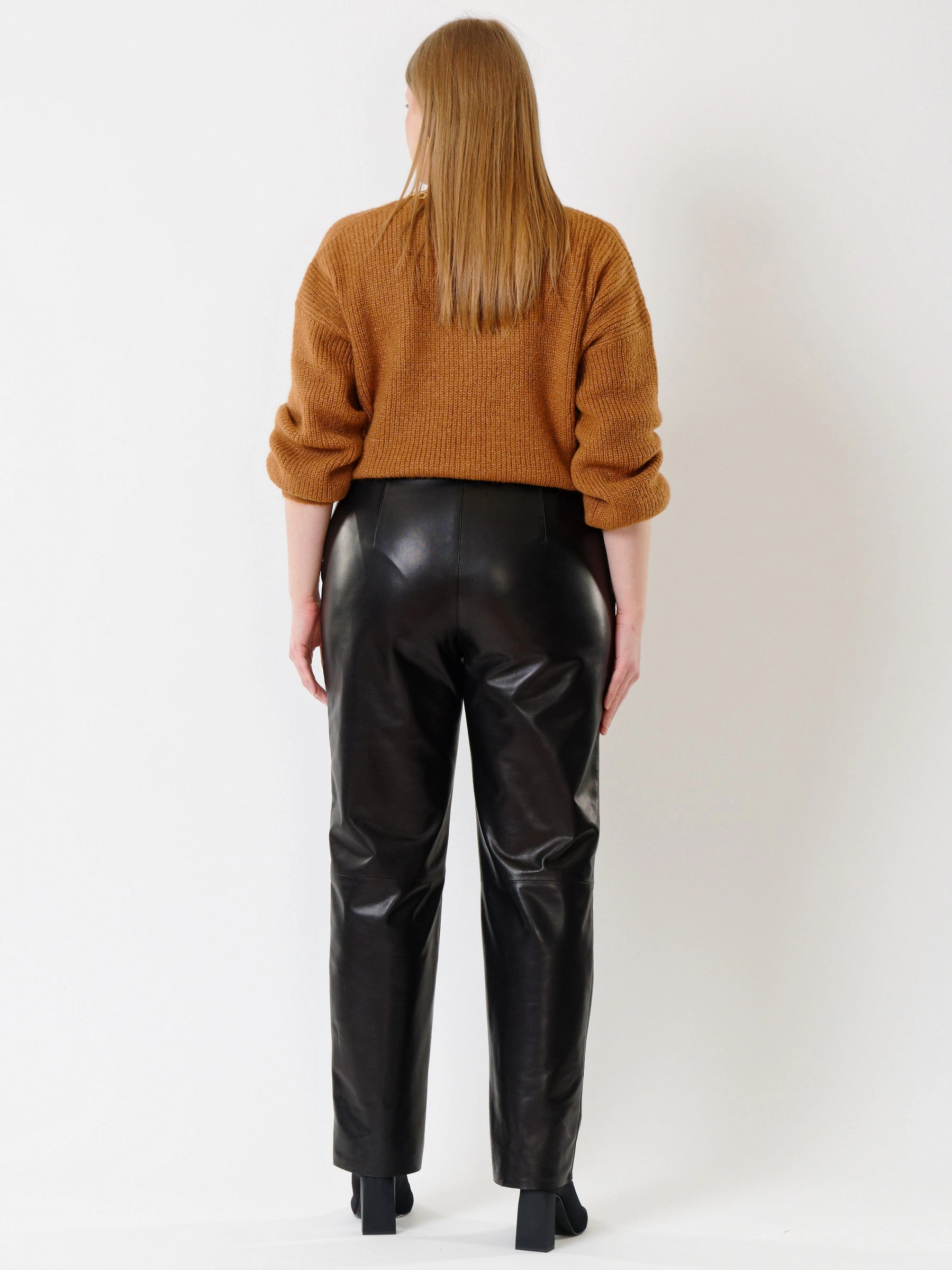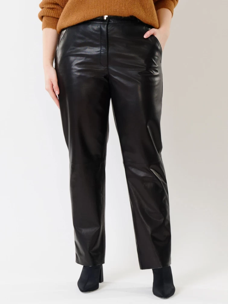 Прямые женские кожаные брюки 04, черные, размер 52, артикул 85390