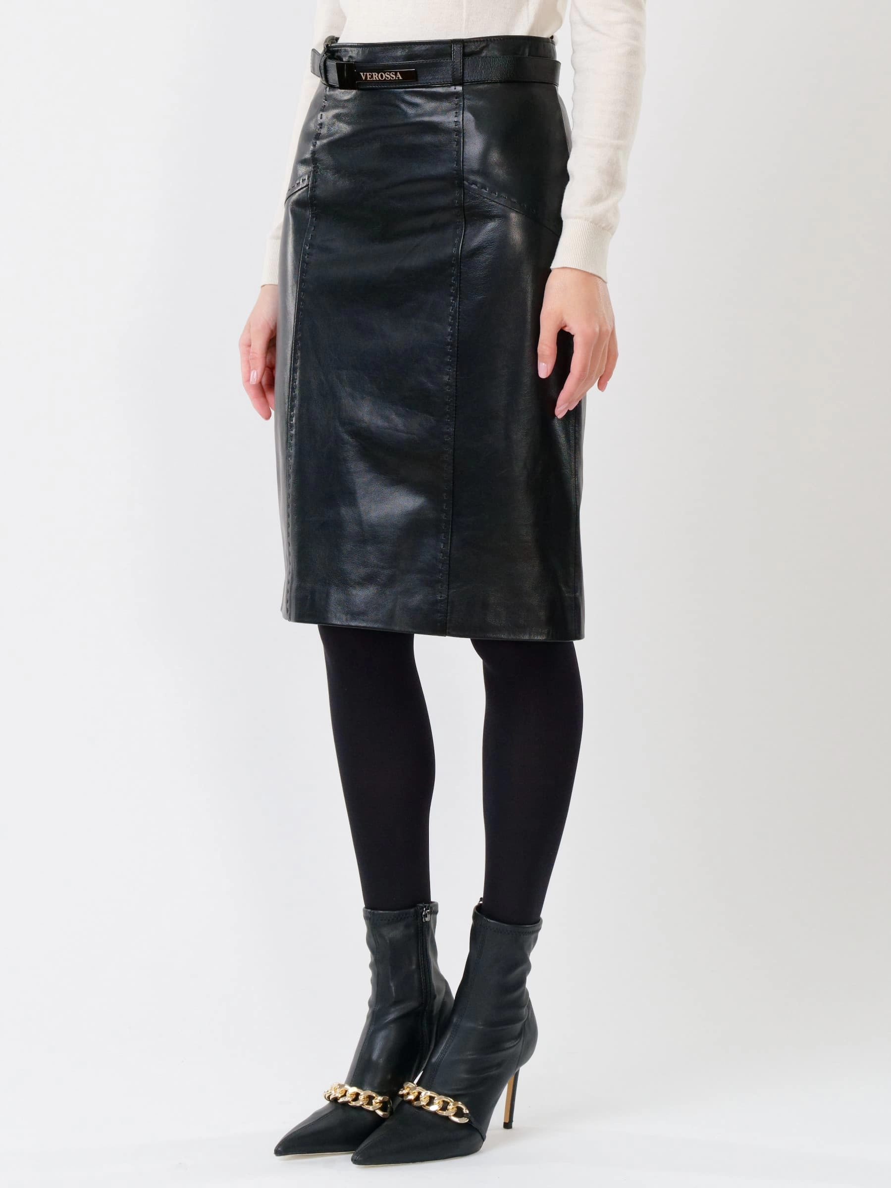 Черная кожаная юбка карандаш 02рс, размер 52, артикул 85481