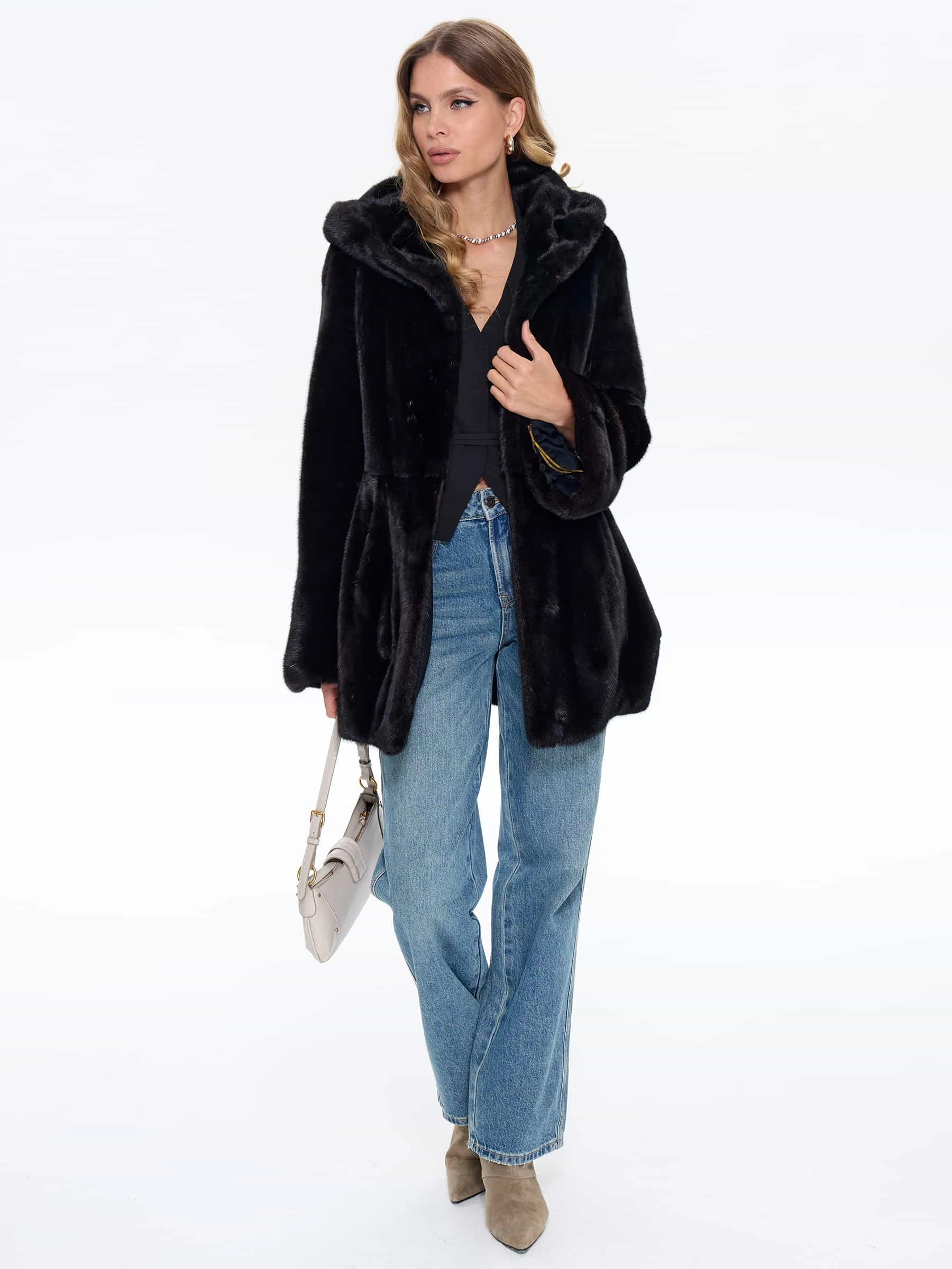 Черная женская норковая шуба BRASCHI Н 717, размер 44, артикул 34410