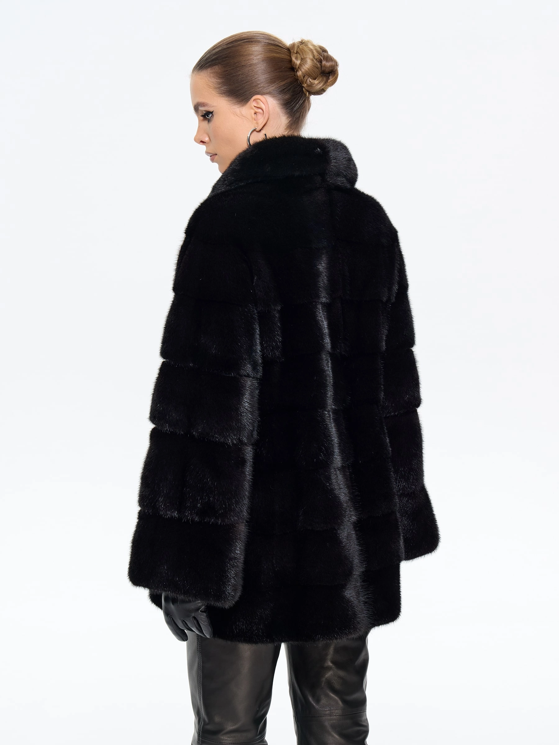 Товар черная женская норковая шуба manakas 2478, размер 38, артикул 34260 выполнен из норка с застежкой клипсы. Рассчитан на сезон: зима. Длина изделия 74 см, силуэт прямой.