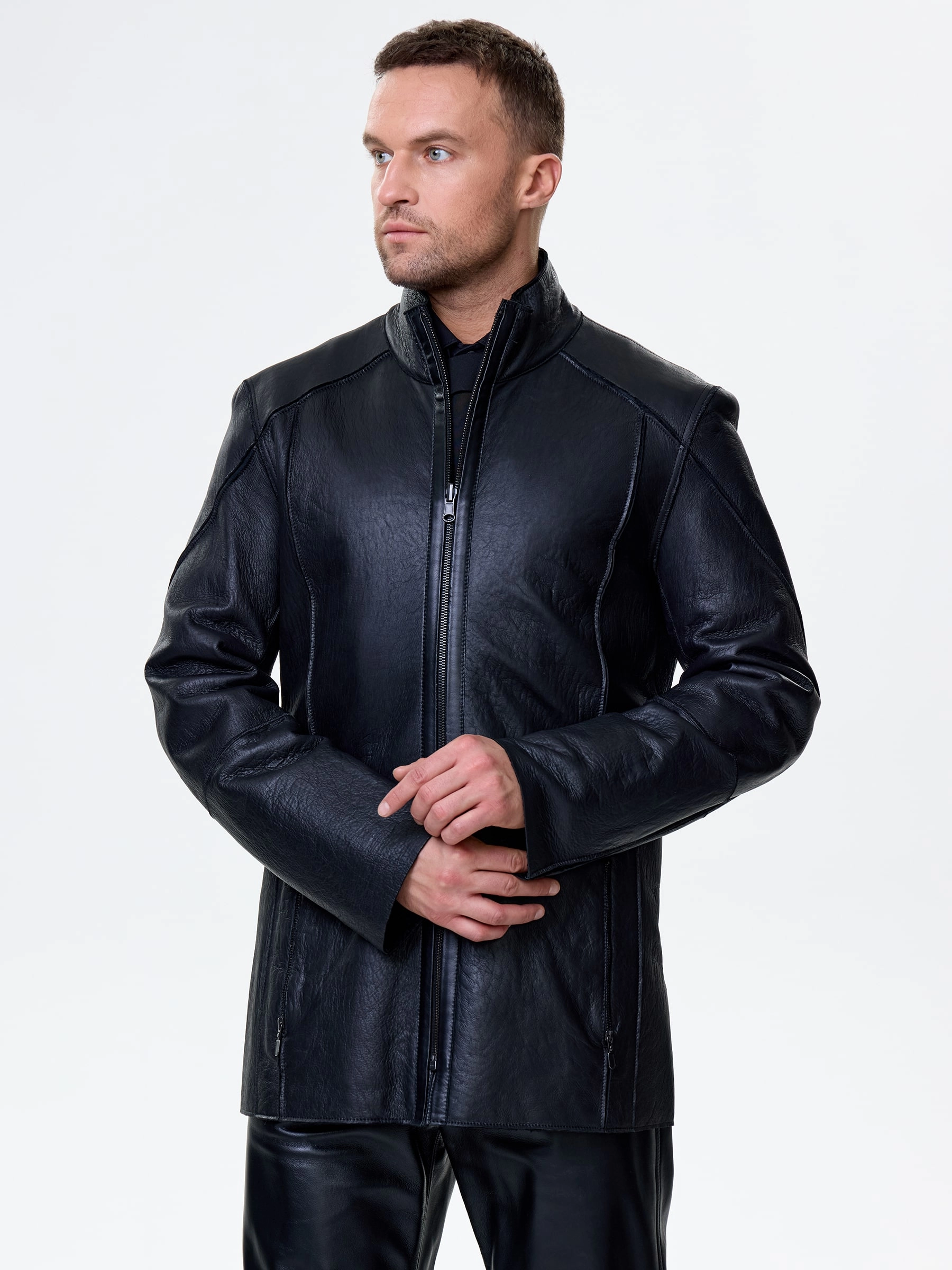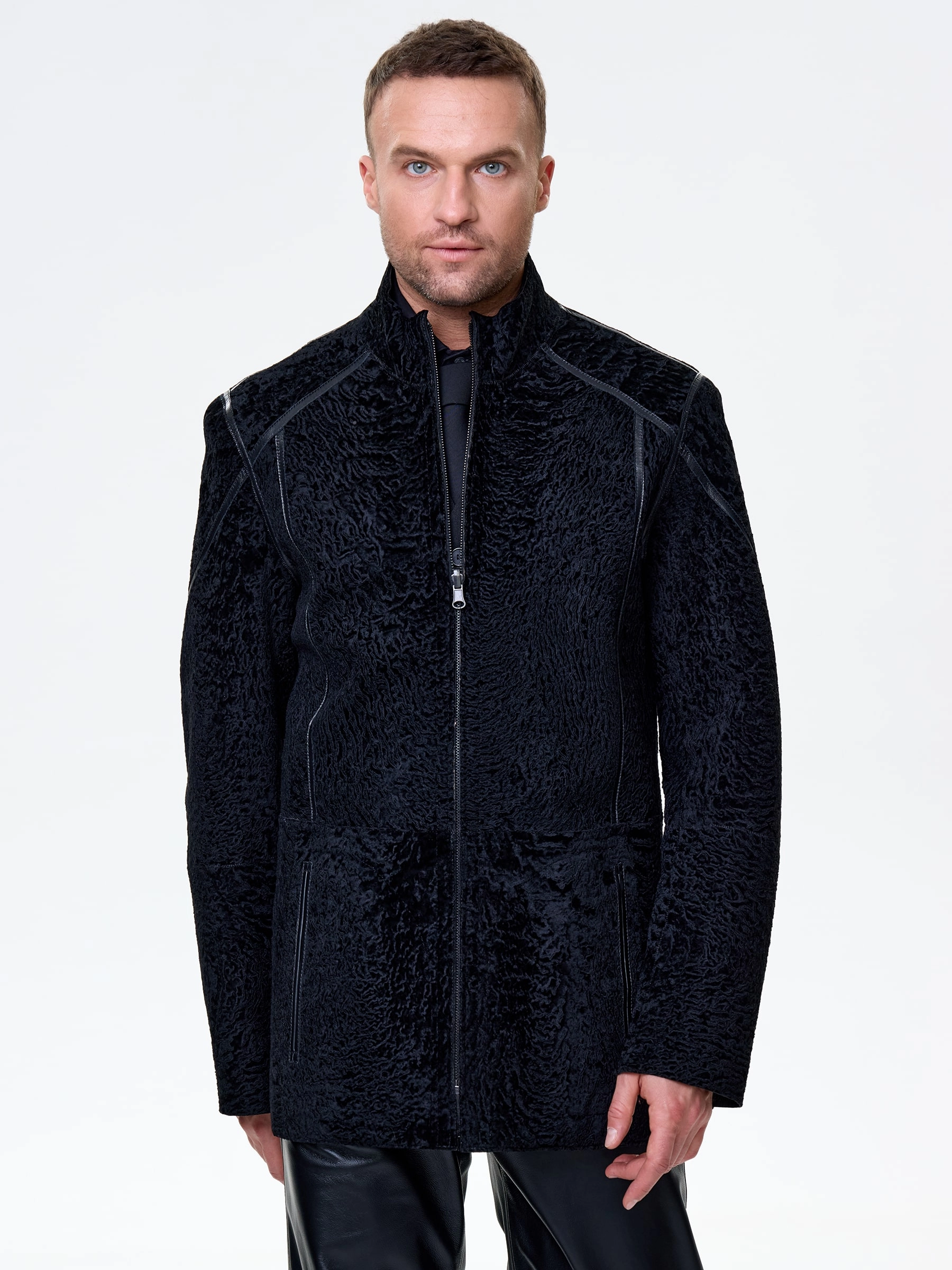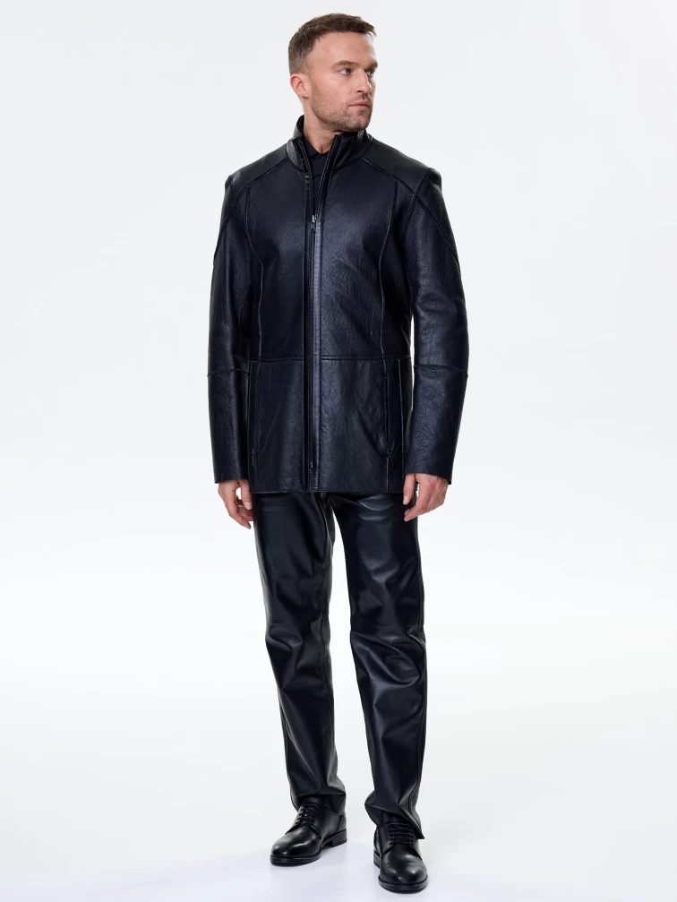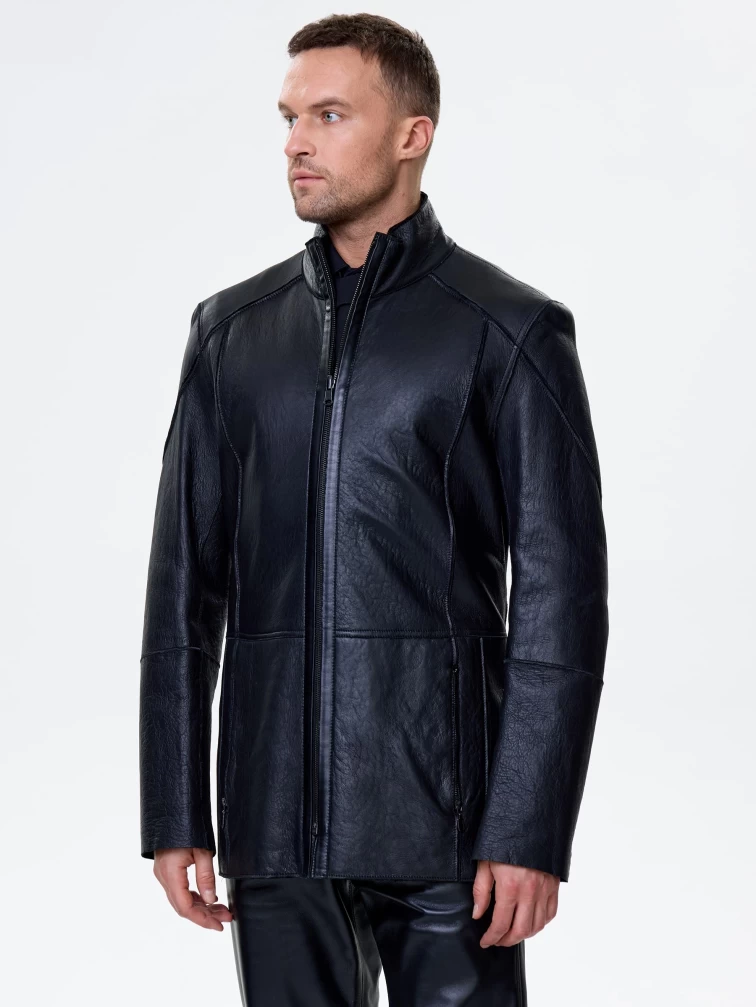 Товар демисезонная двусторонняя мужская дубленка премиум класса 409, черная, размер 50, артикул 71590 выполнен из овчина "мерино" с застежкой молния.