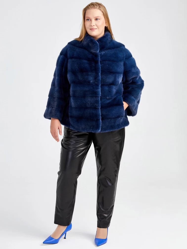 Демисезонный комплект женский: Куртка из меха норки Ольга (с) + Брюки 04, синий/черный, арт. 111186