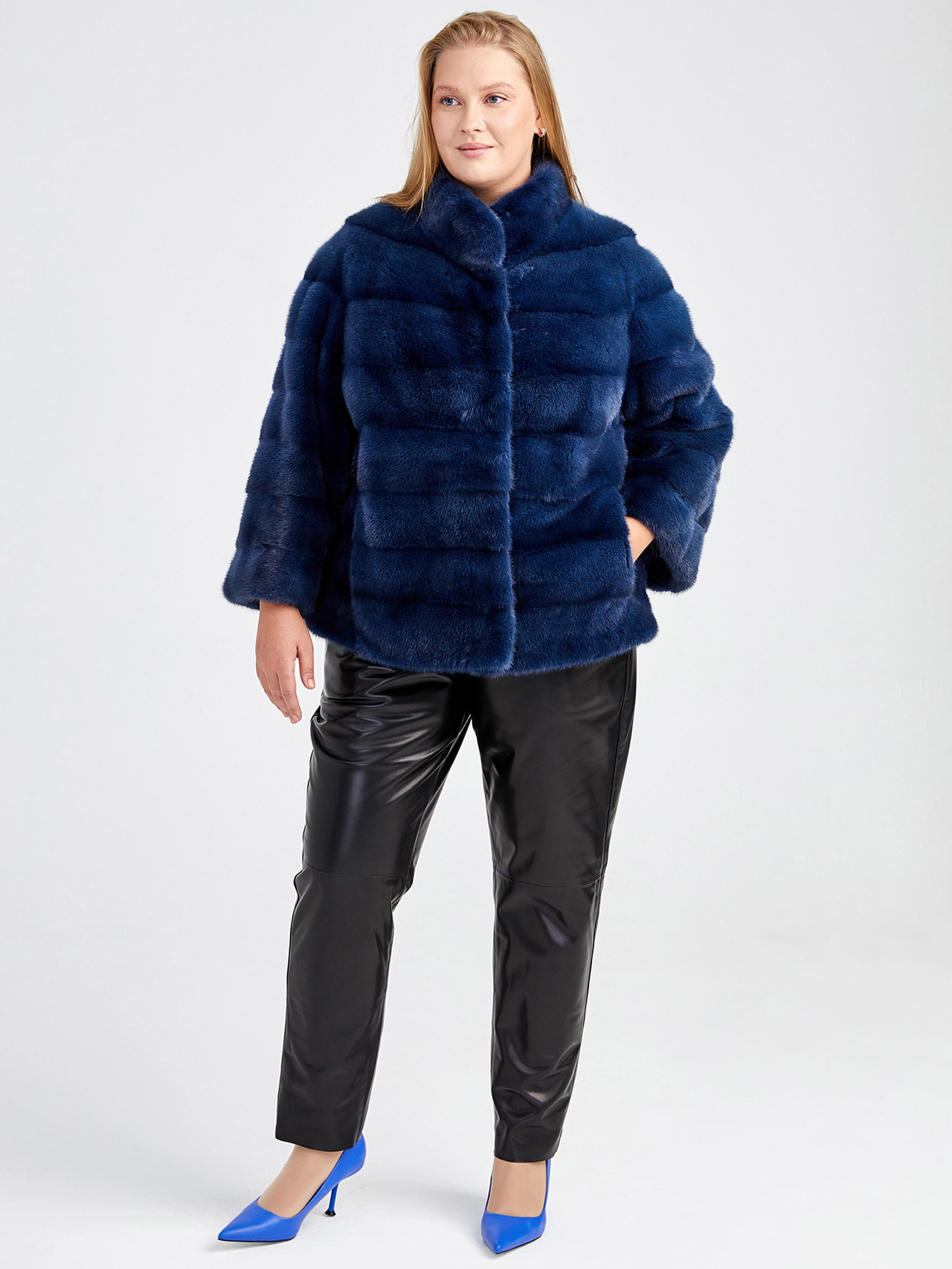 Товар демисезонный комплект женский: куртка из меха норки ольга (с) + брюки 04, синий/черный, арт. 111186.