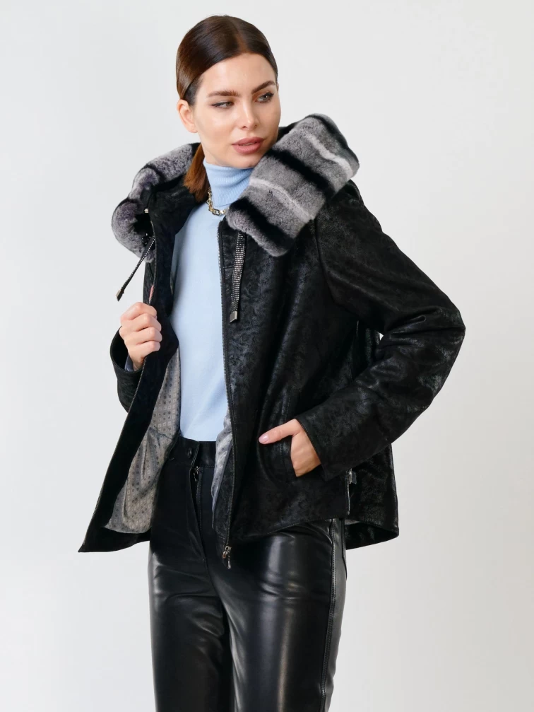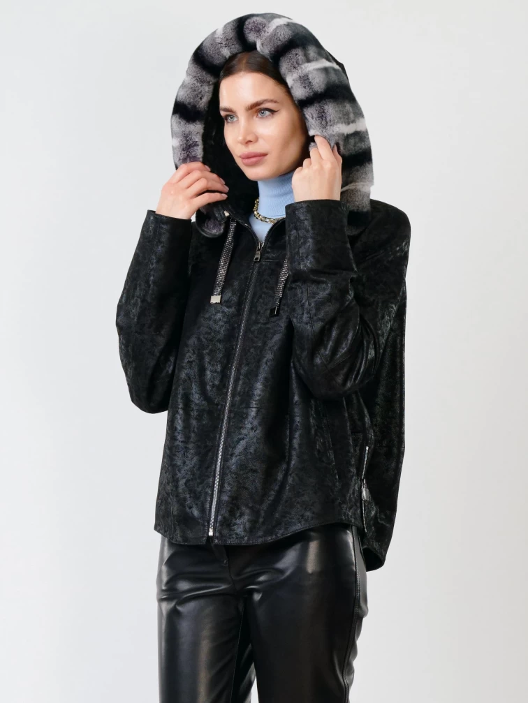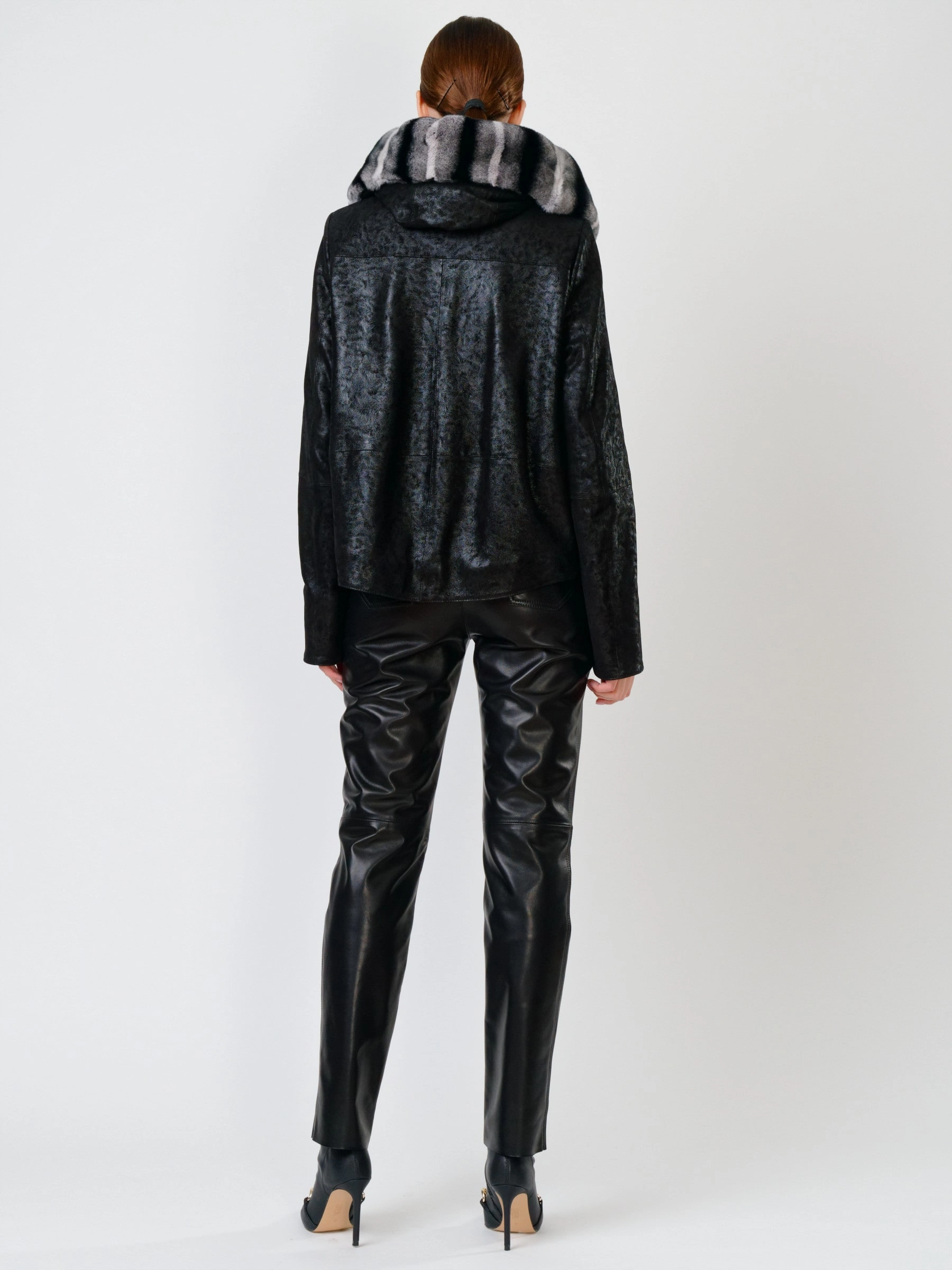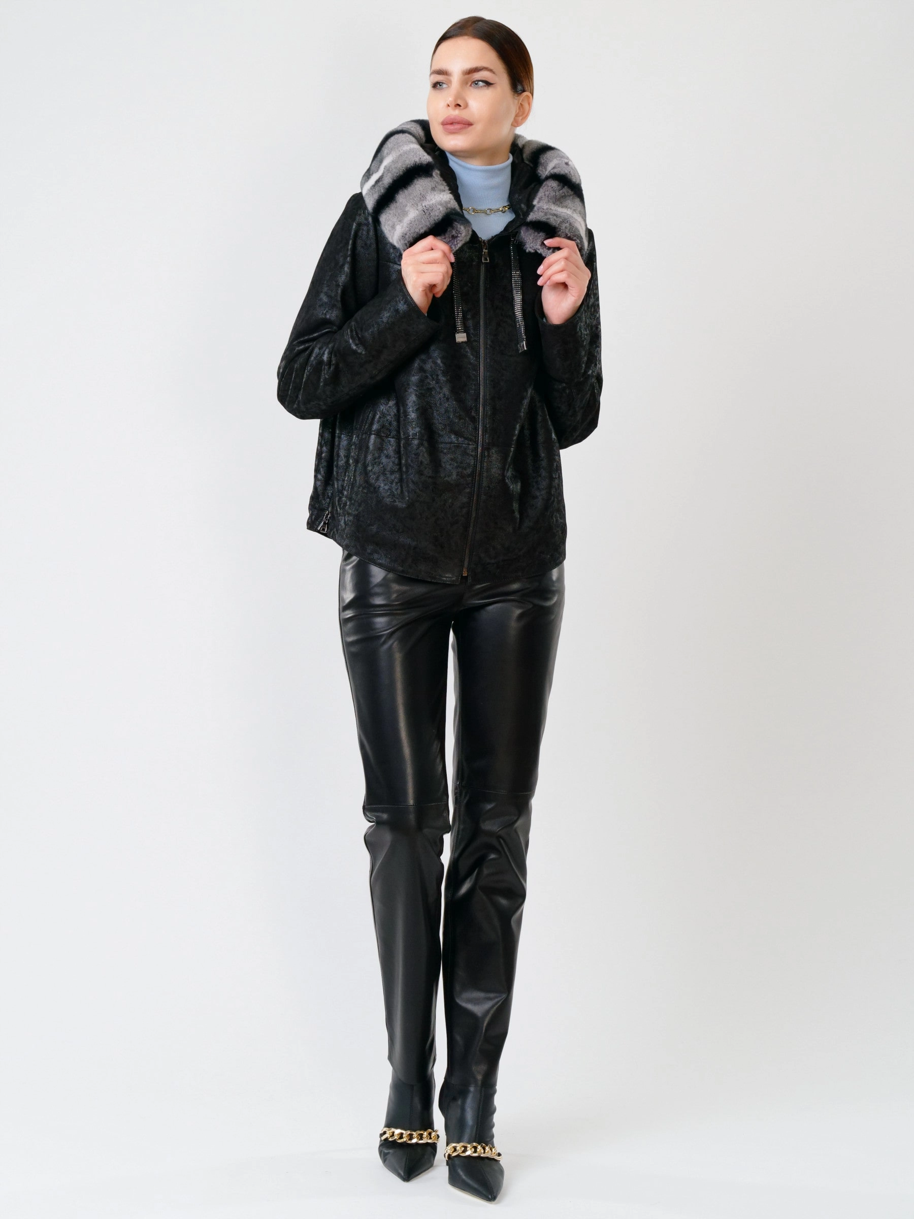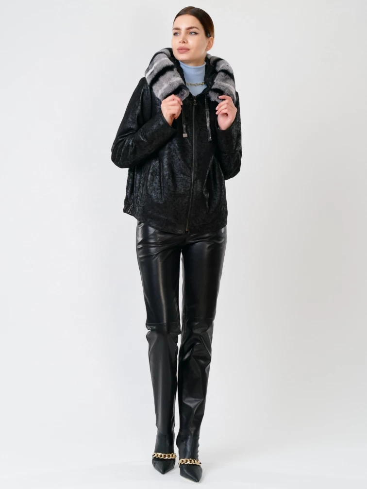 Интересным решением будет объемная, утепленная кожаная куртка. Ее универсальность покорит любую модницу, которая ценит качество и комфорт. Меховую опушку можно легко отстегнуть. Вы за рулем? Не беда, растегните боковые молнии и получите дополнительный комфорт. Ваш образ великолепно дополнят - брюки из мягкой натуральной кожи. Идеальное качество. Безупречная работа наших портных.