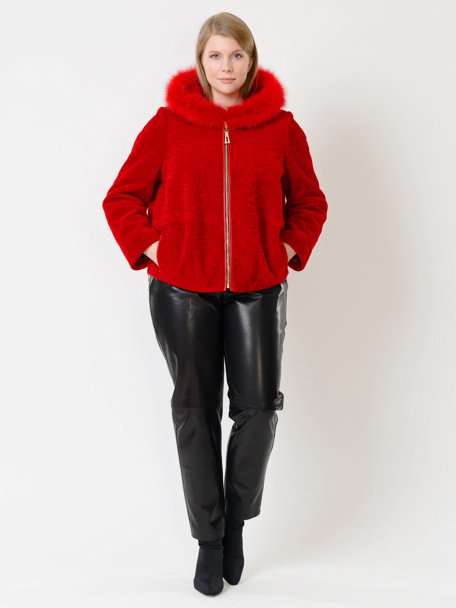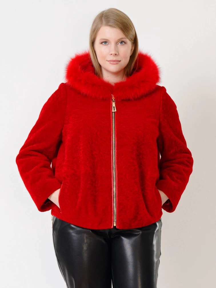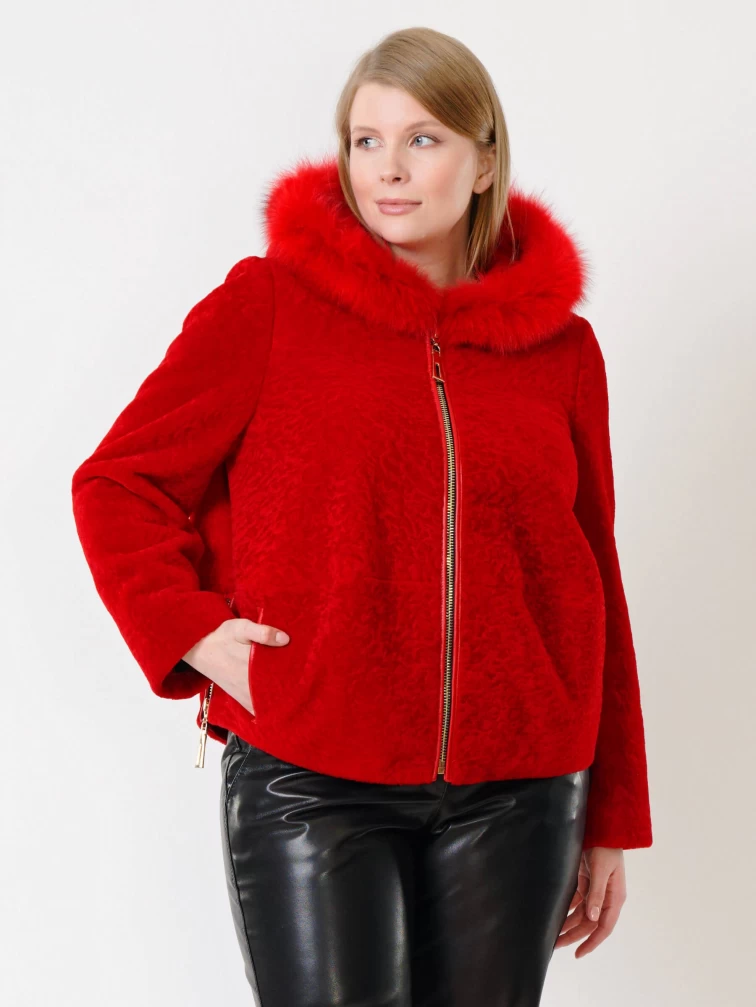 Товар демисезонный комплект женский: куртка из астрагана 48мех + брюки 03, красный/черный, р. 46, арт. 111289.