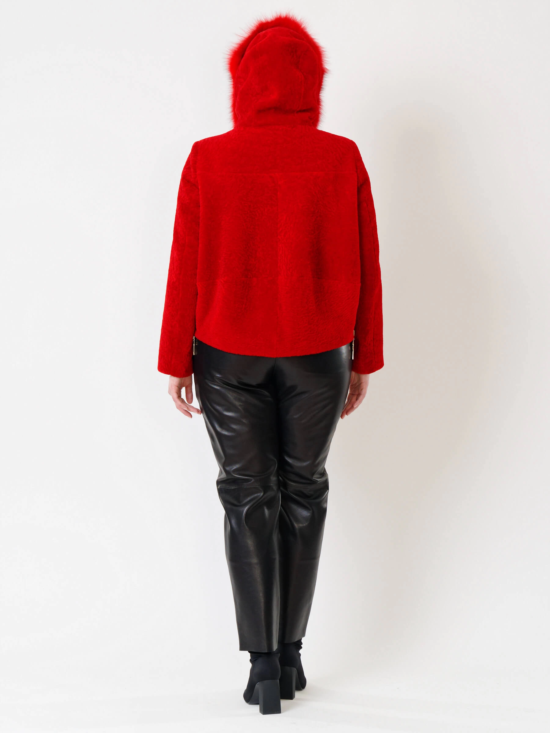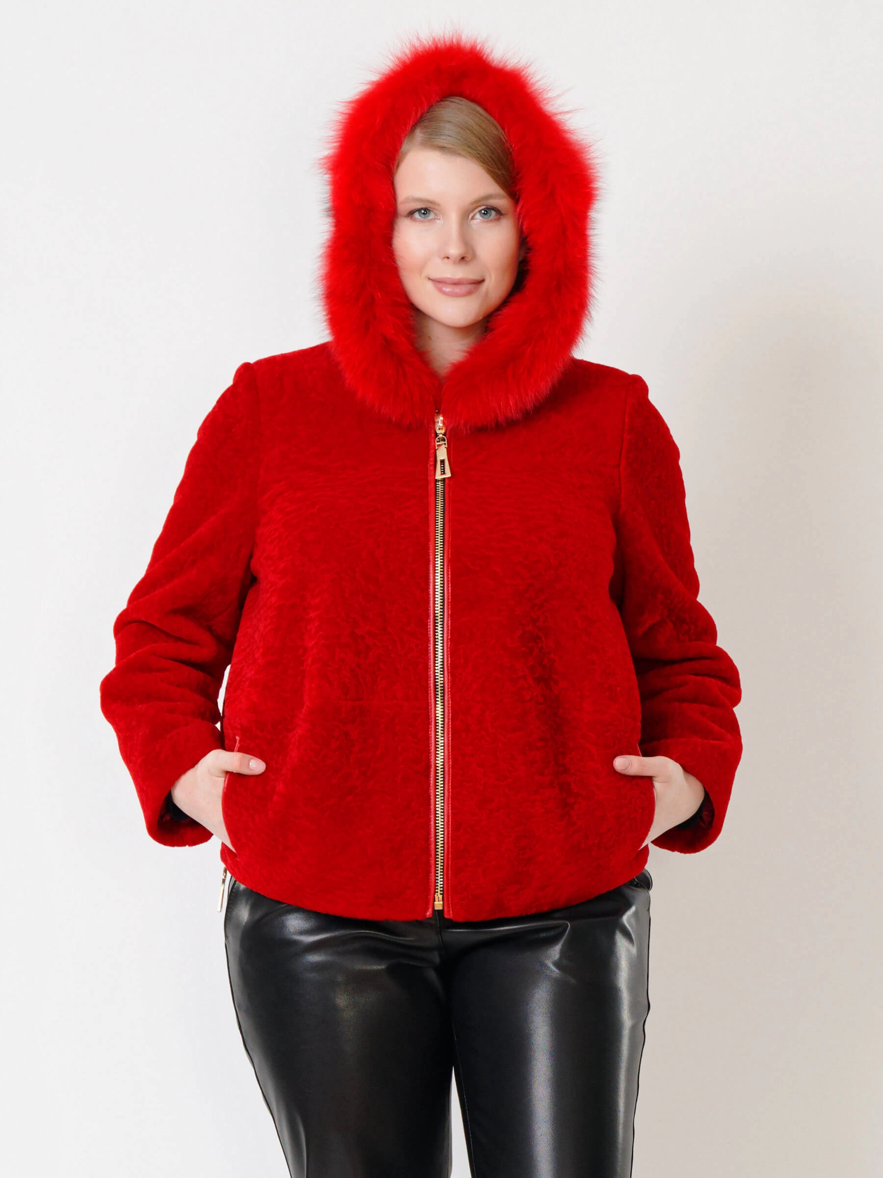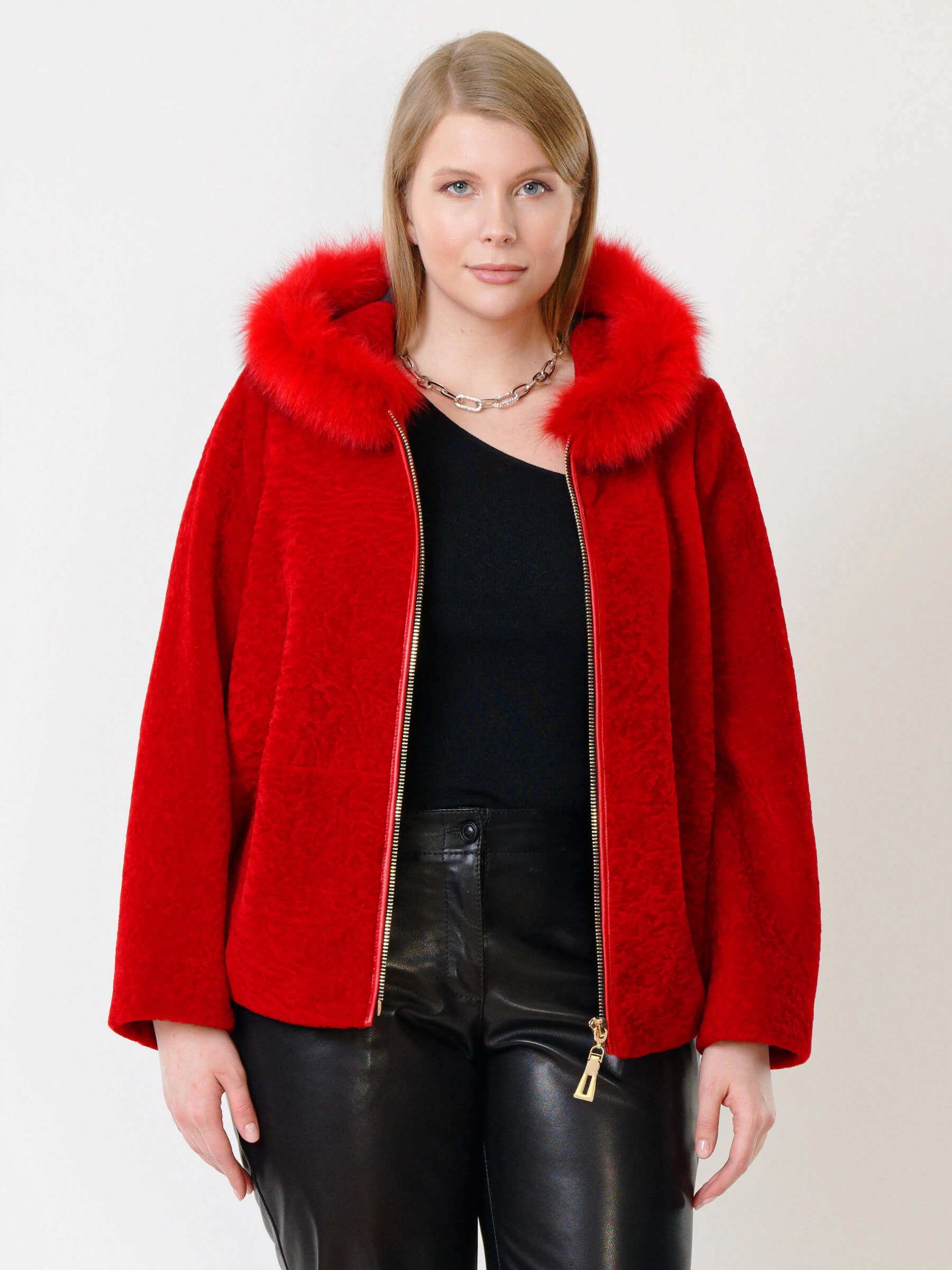 Товар демисезонный комплект женский: куртка из астрагана 48мех + брюки 03, красный/черный, р. 46, арт. 111289.
