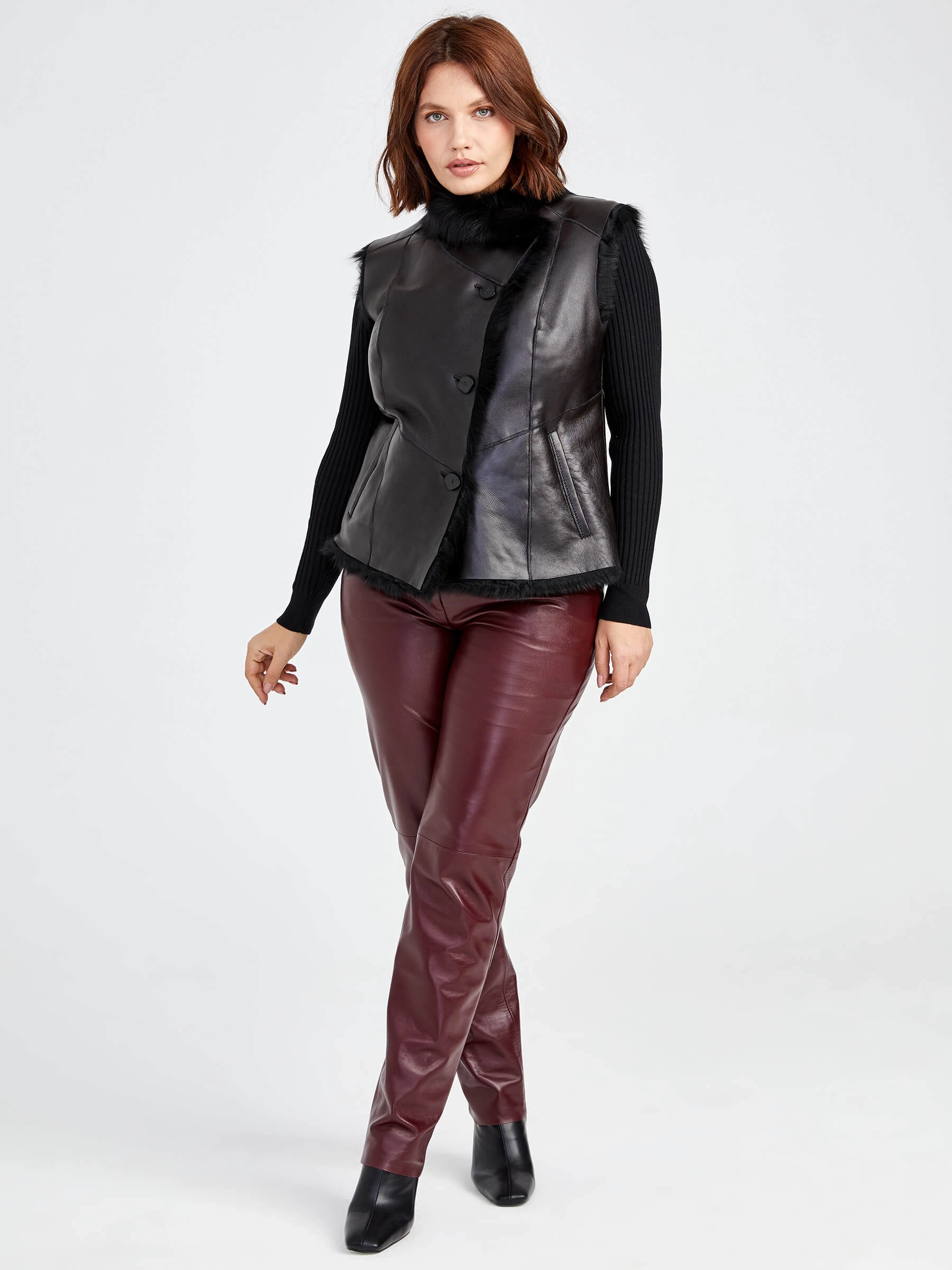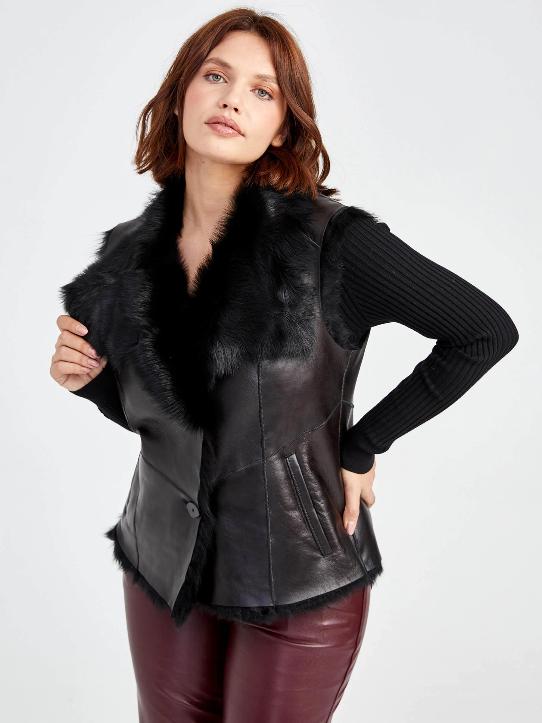 Выглядеть стильно - это тоже работа. Попробуйте поэкспериментировать: наденьте легкий меховой жилет из тосканской овчины в тандеме с брюками из нежной натуральной кожи. Уют и комфорт такого комплекта читается в каждом движении, в каждой строчке.