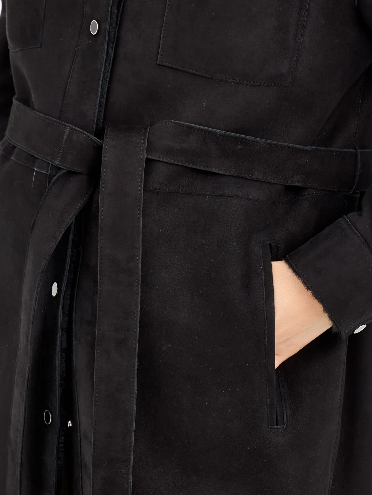 Длинная замшевая женская дубленка 2086, черная, размер 44, артикул 64980