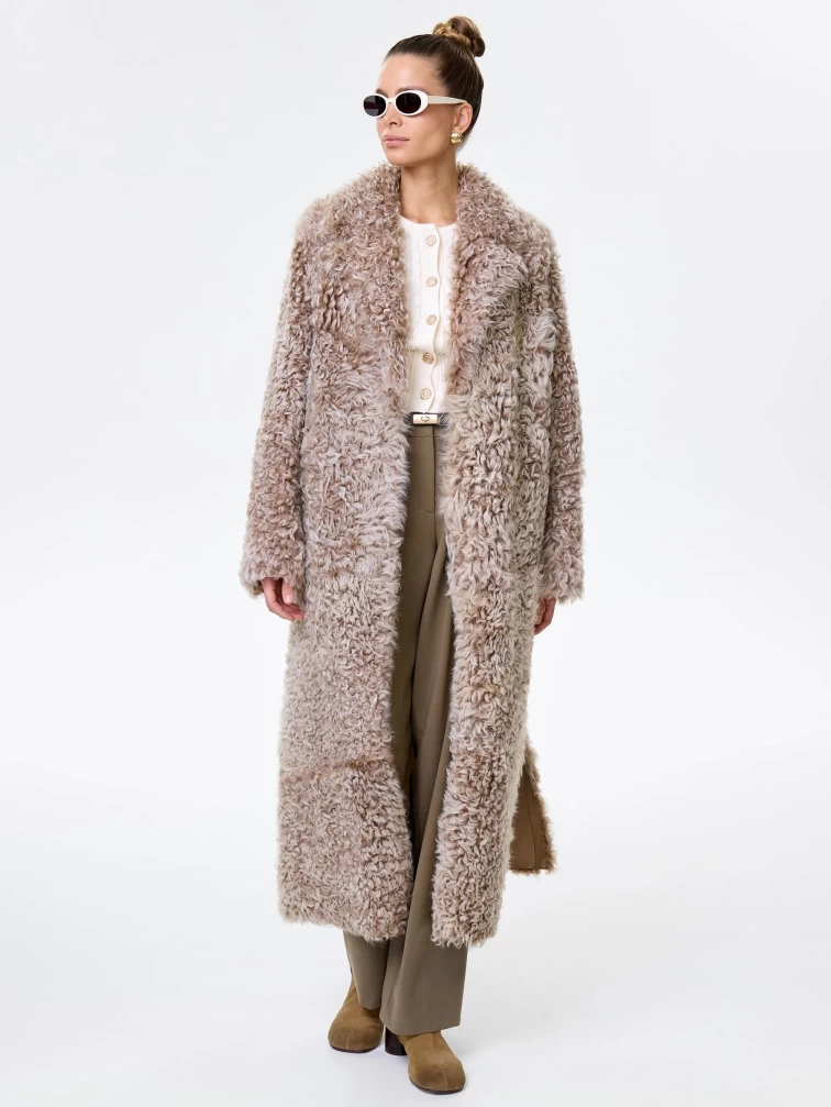 Длинная женская дубленка из натуральной овчины тиградо премиум класса 2023, бежевая, размер 44, артикул 64550