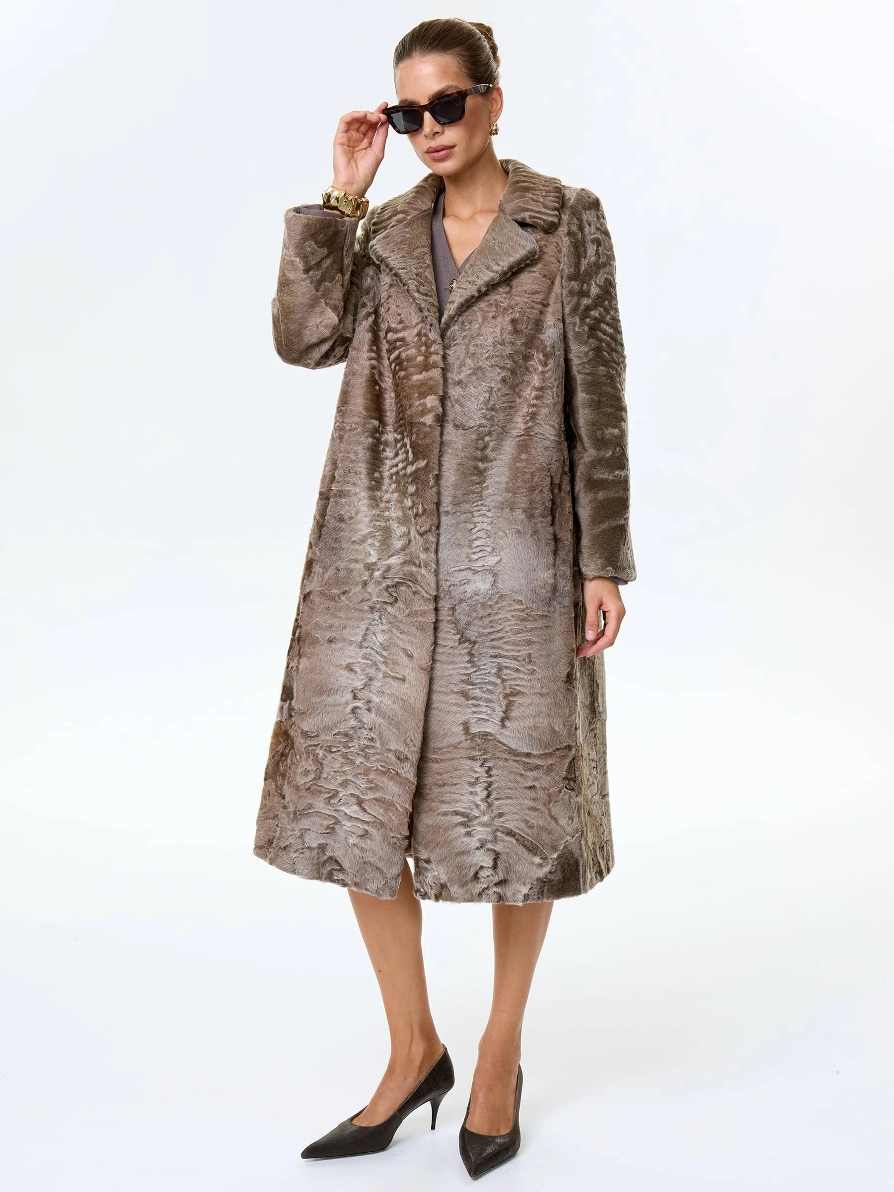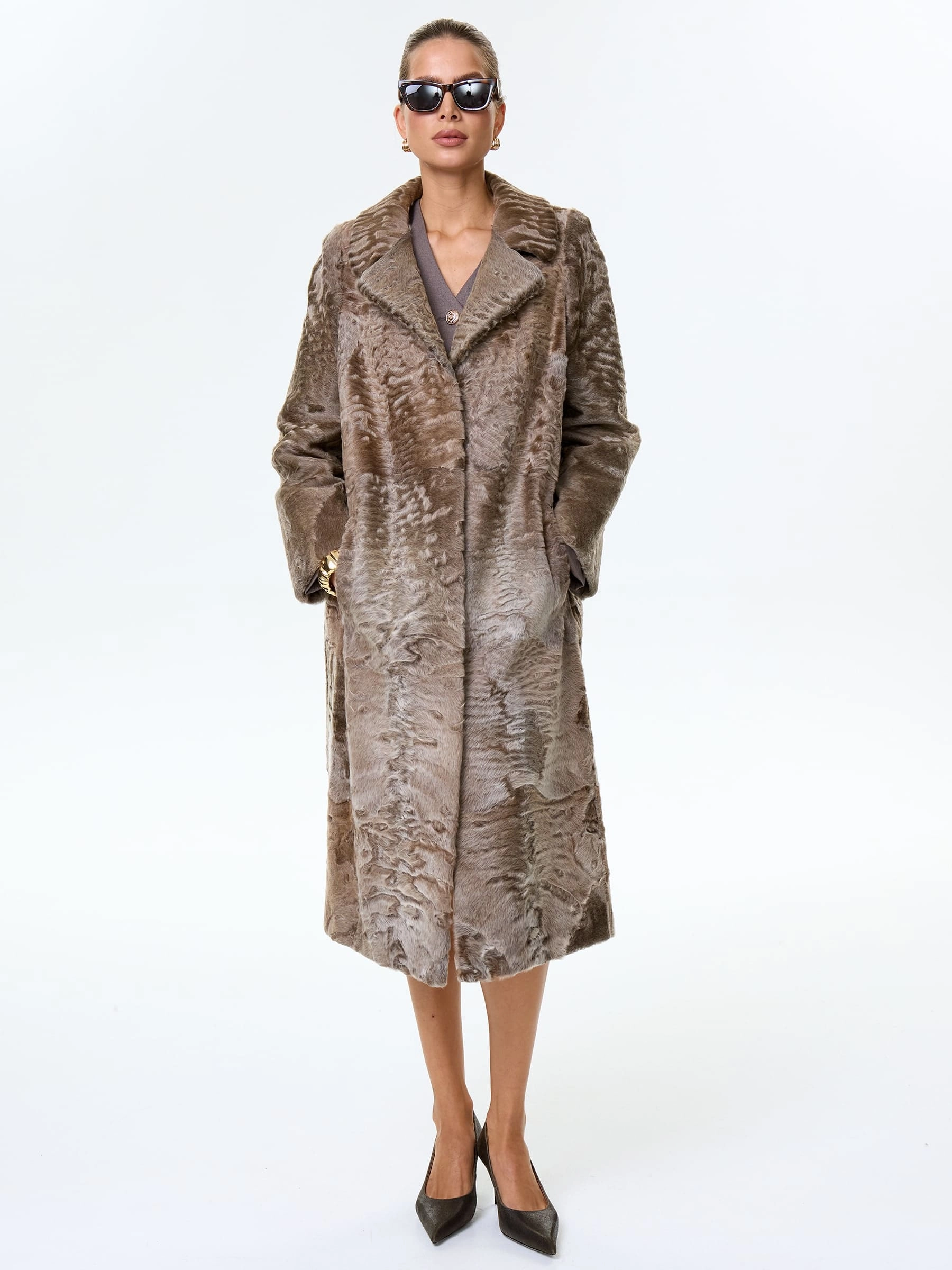 Длинная женская шуба из меха каракульчи премиум класса Лола(ав), светло-коричневая, размер 50, артикул 33990