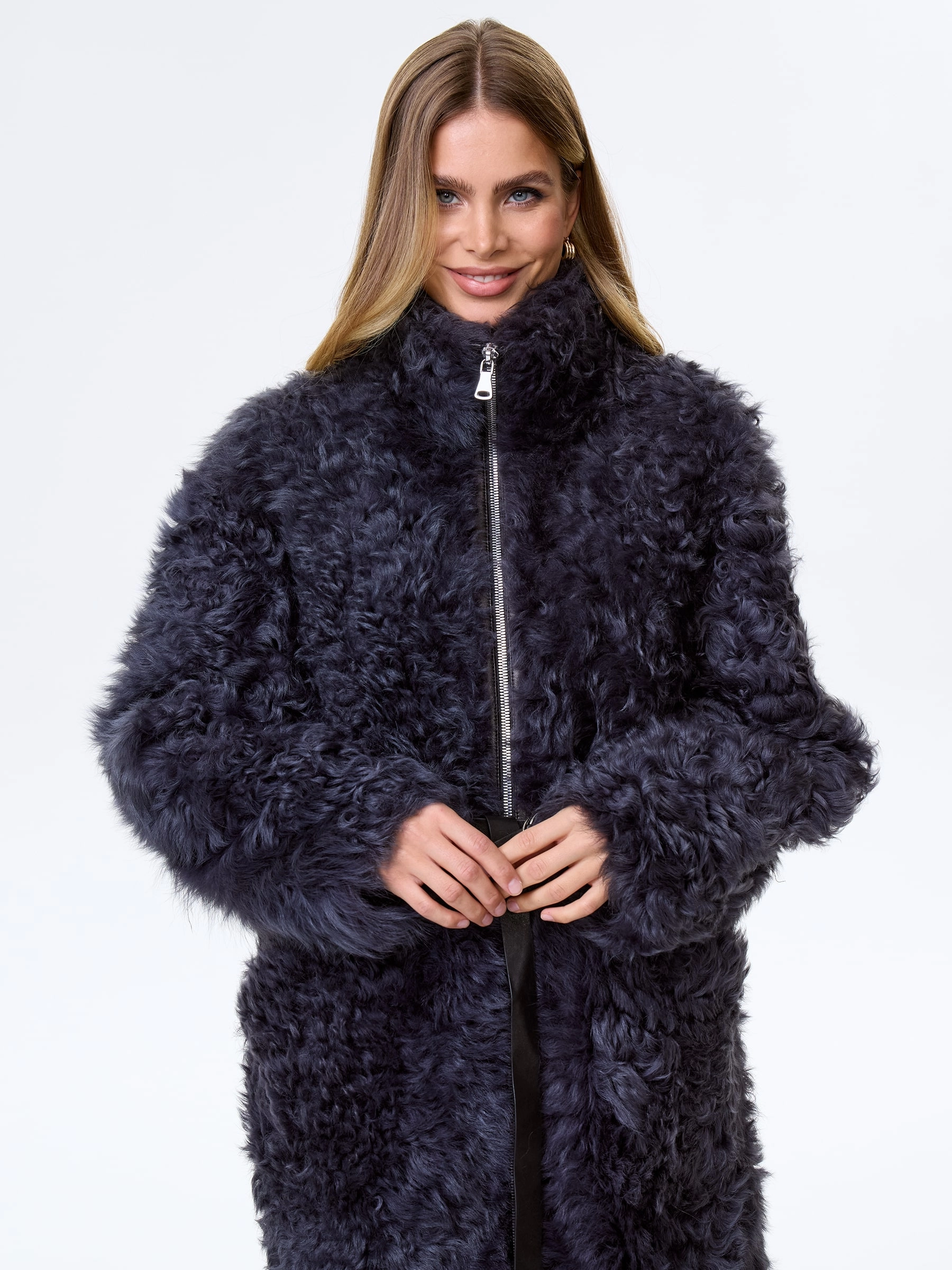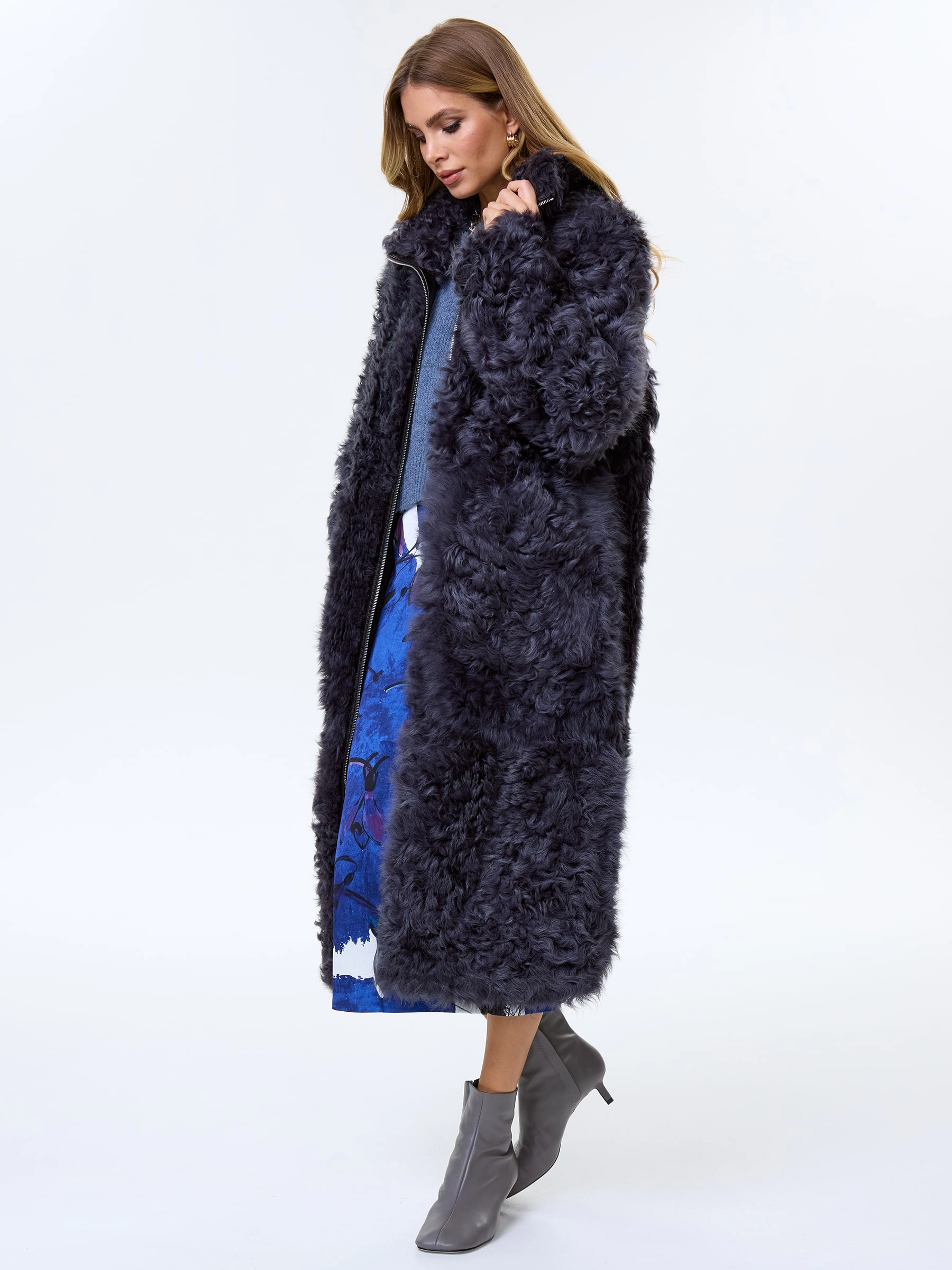 Товар длинное женское пальто из натуральной овчины тиградо премиум класса 2025, темно-серое, размер 44, артикул 64430 выполнен из овчина "тиградо" с застежкой молния. Рассчитан на сезон: осень-зима. Длина изделия 117 см, силуэт свободный.
