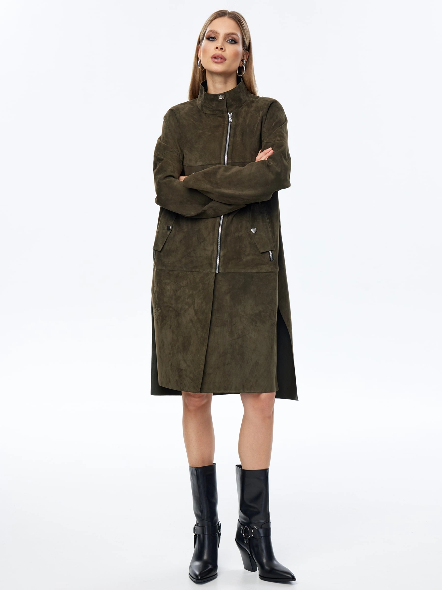 Длинный замшевый плащ оверсайз для женщин премиум класса 3041з, оливковый, размер 54, артикул 23580