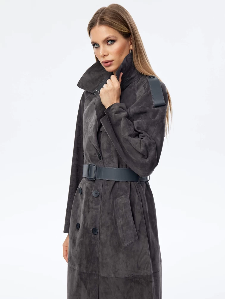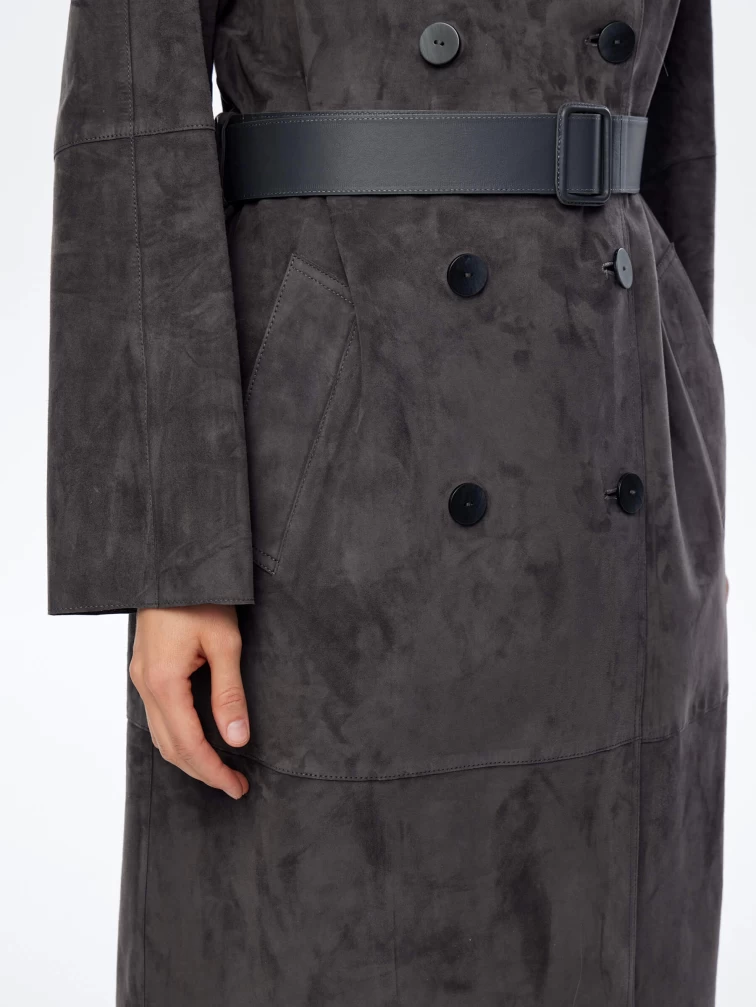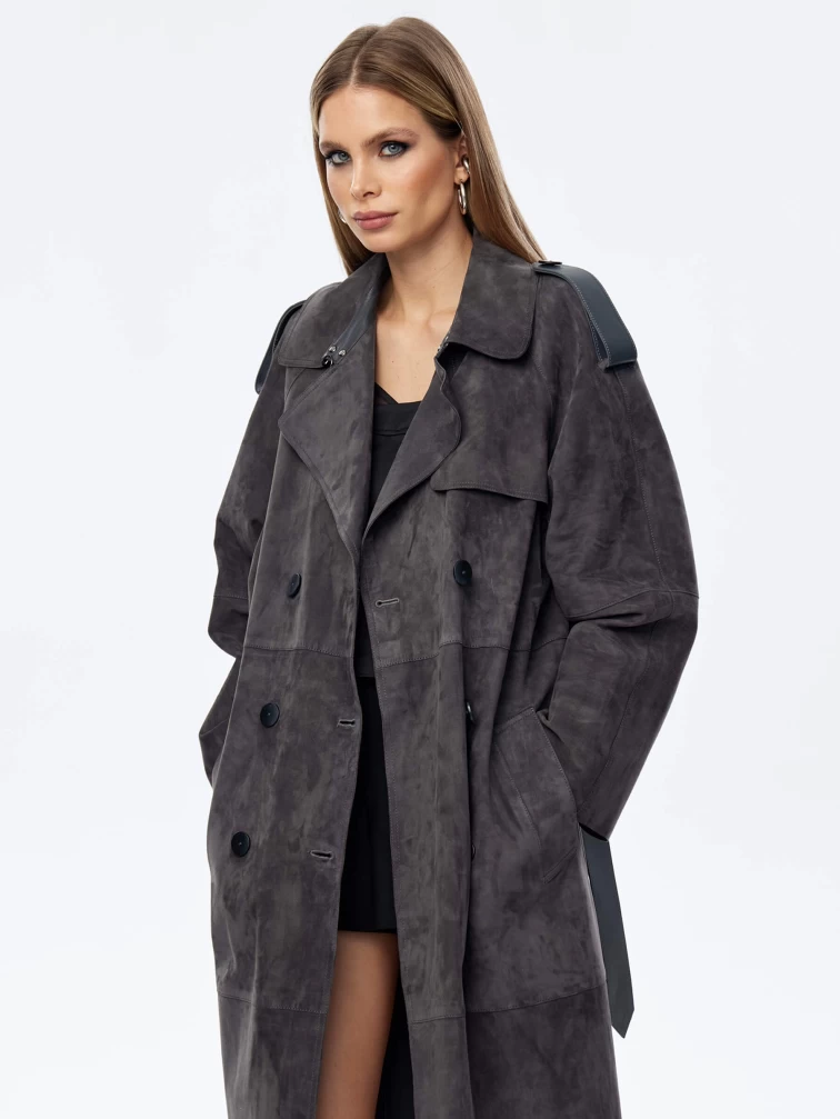 Длинный женский замшевый плащ френч оверсайз премиум класса 3070з, темно-серый, размер 44, артикул 23850