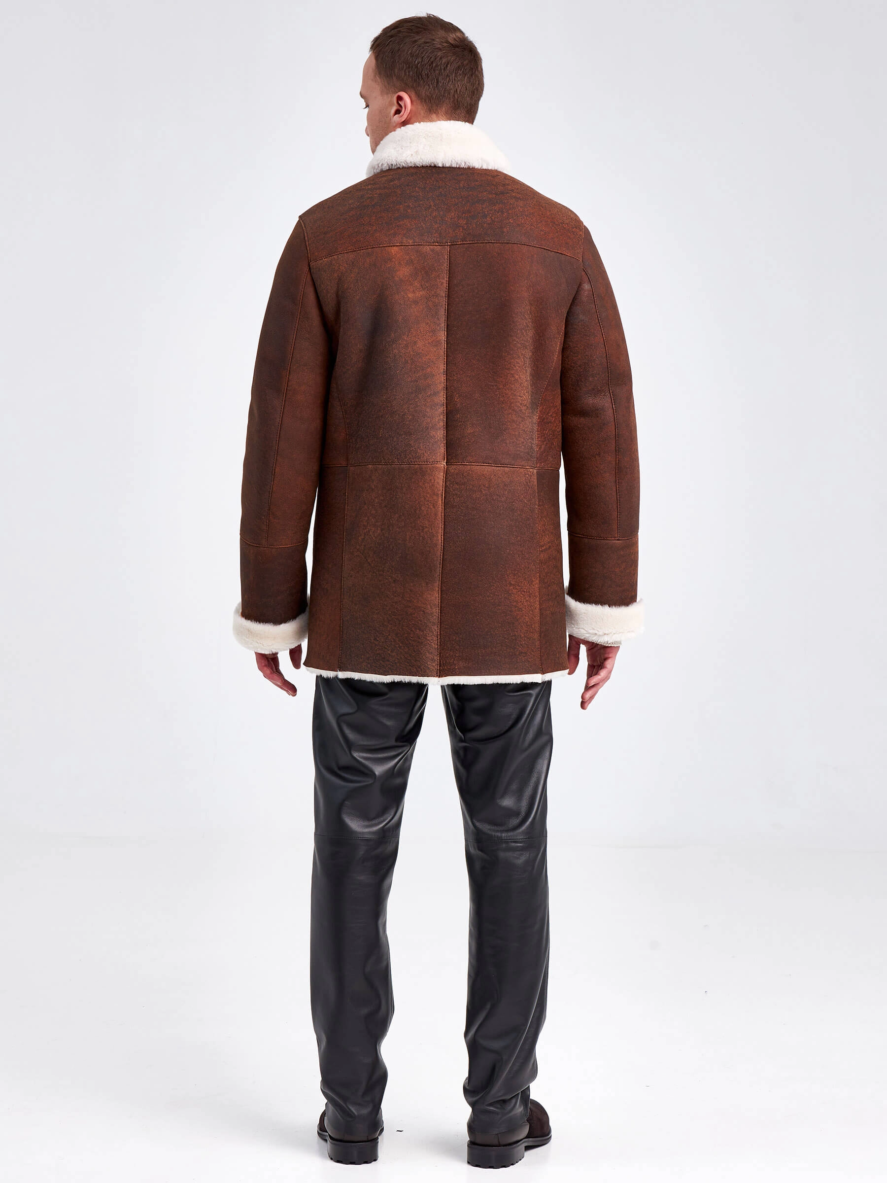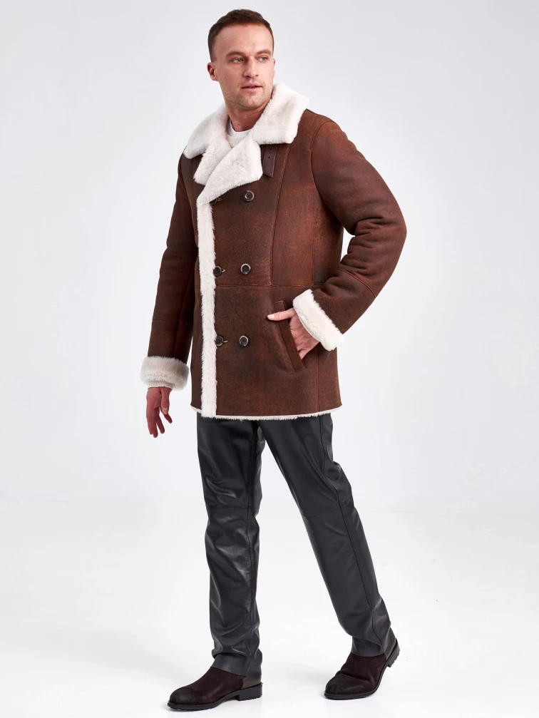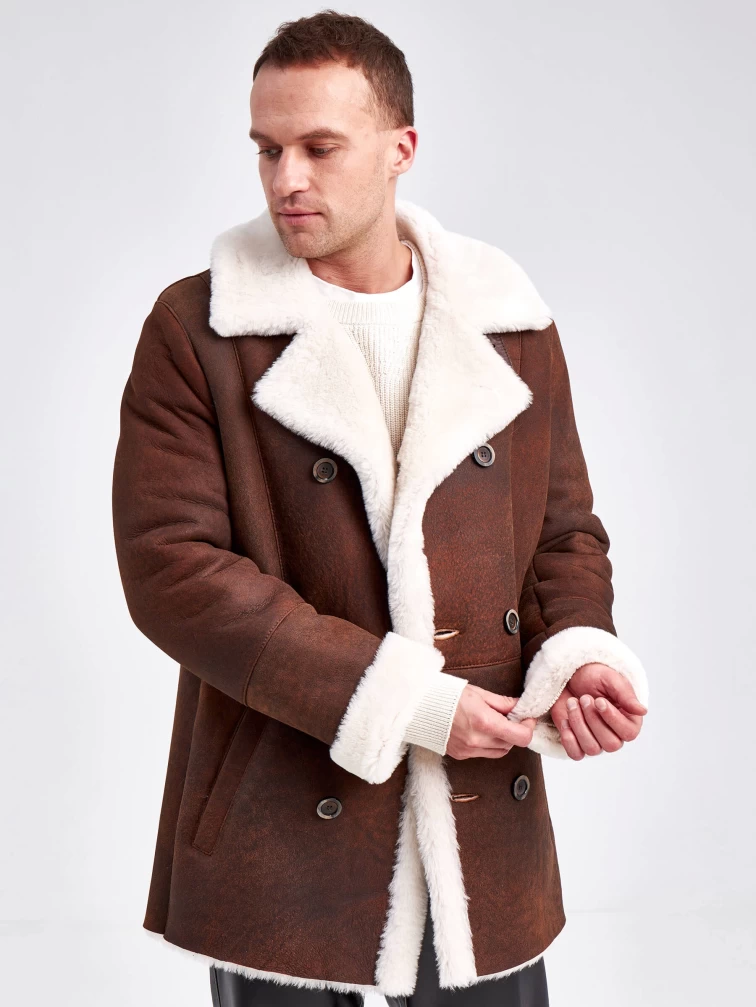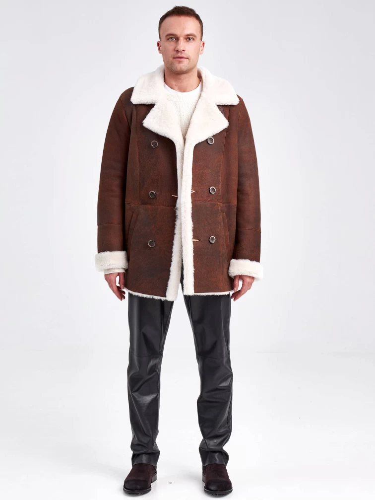 Дубленка двубортная мужская 431, виски, размер 48, артикул 71150
