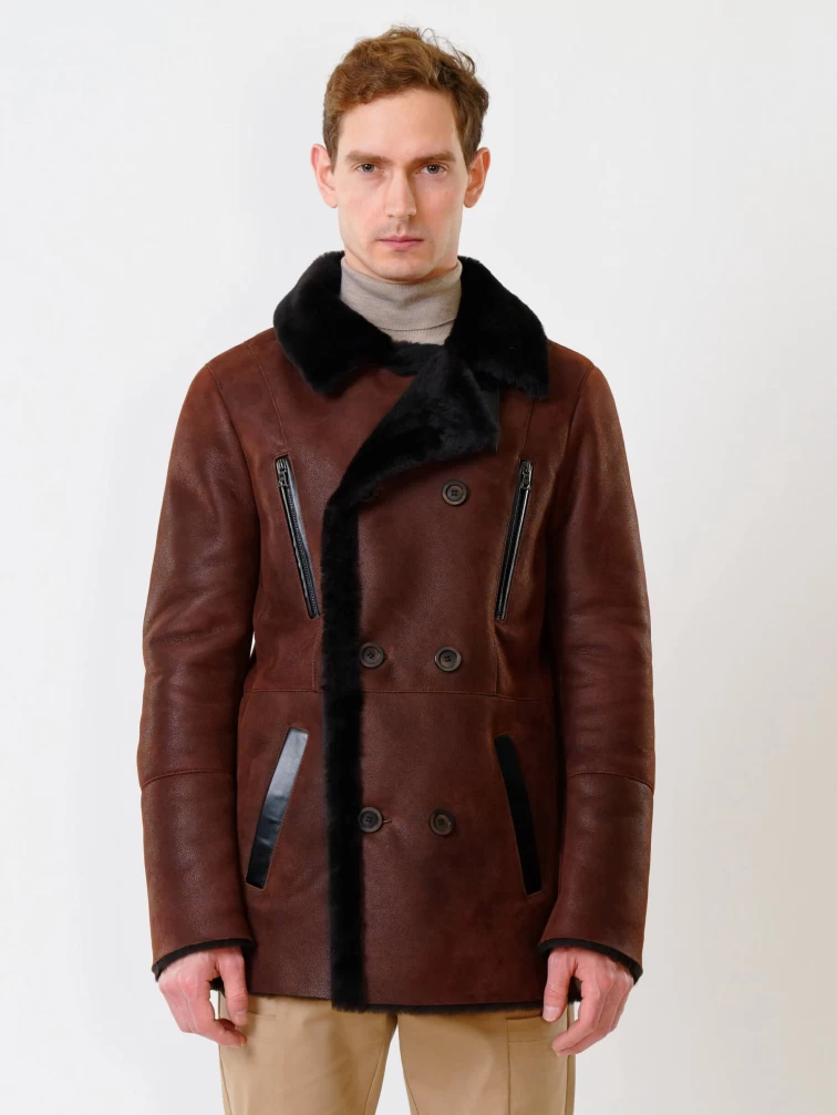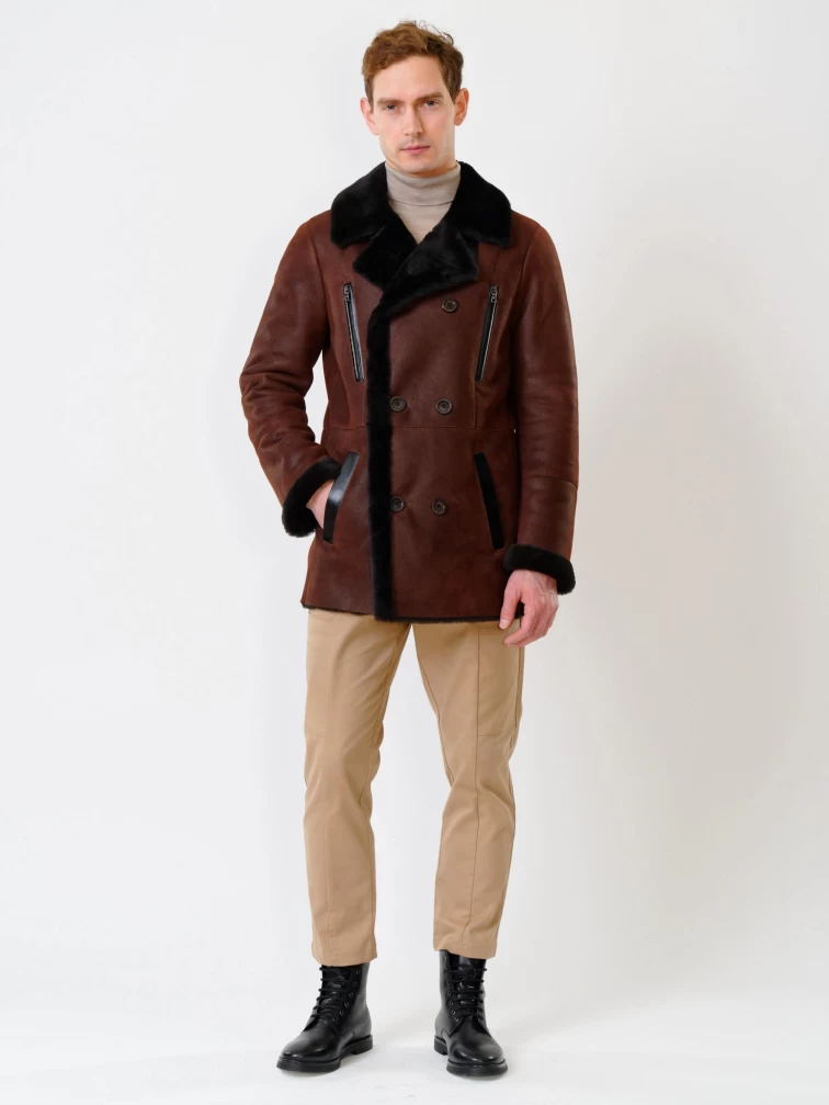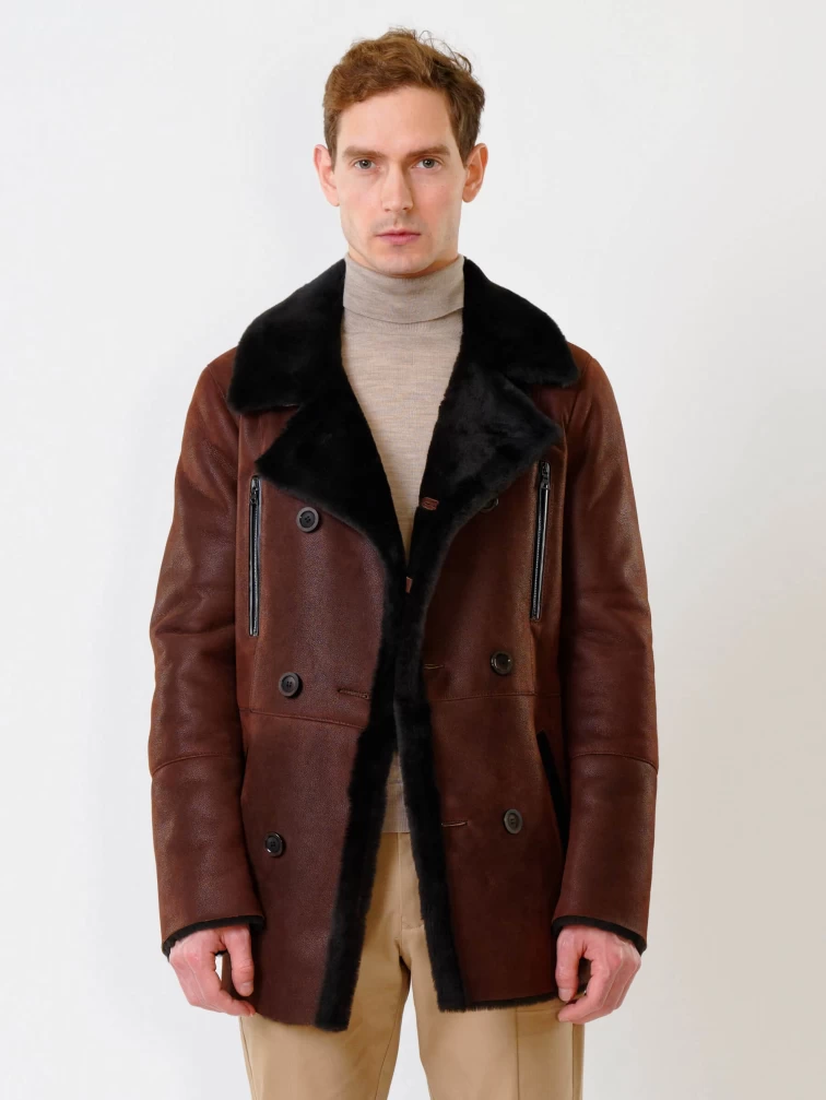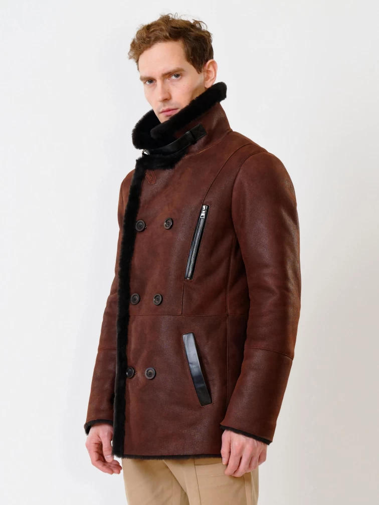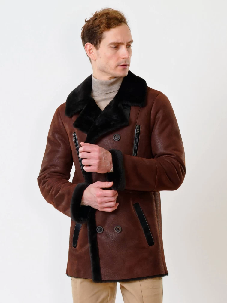 Дубленка двубортная мужская 431, коричневая, размер 48, артикул 70260