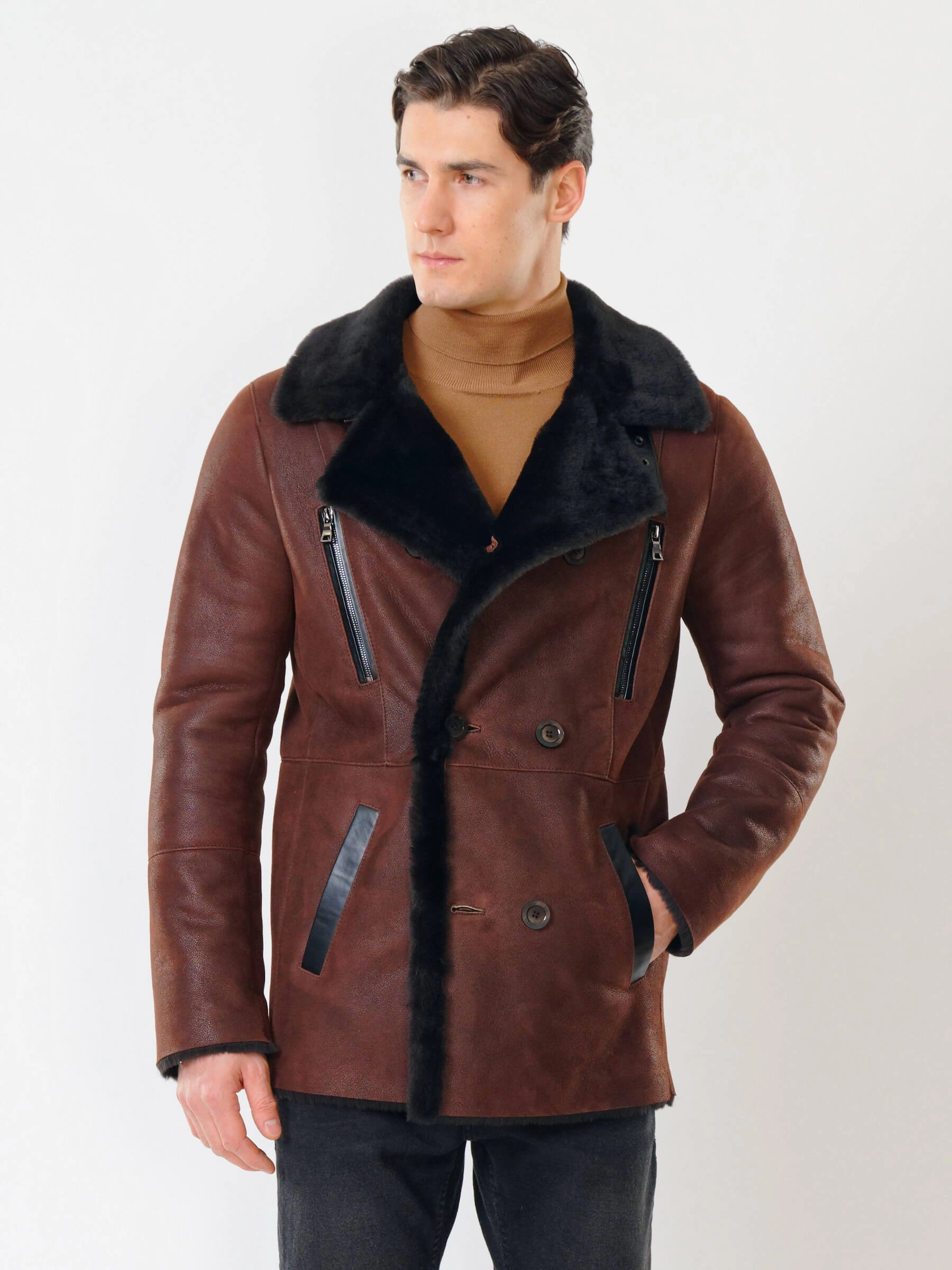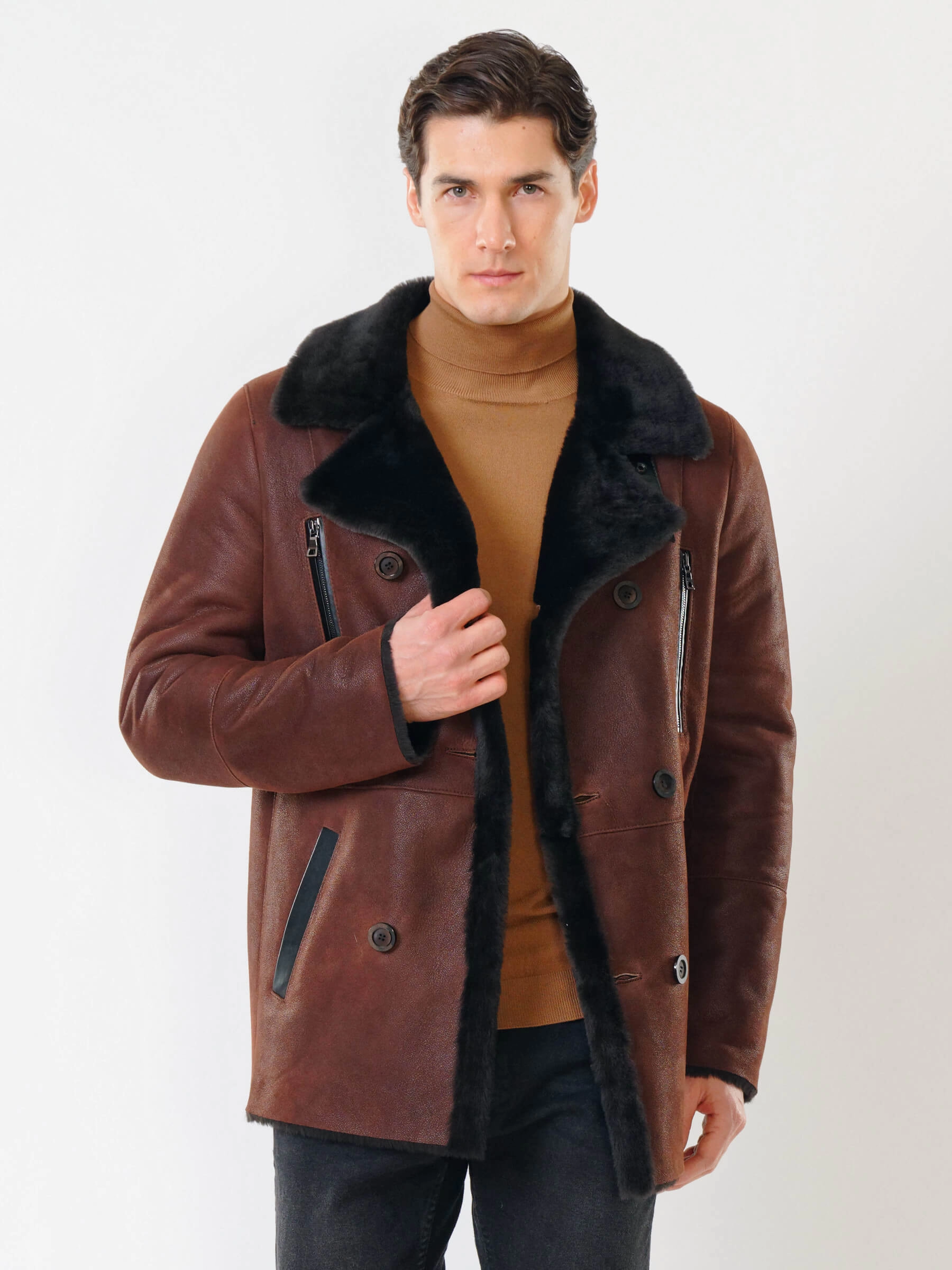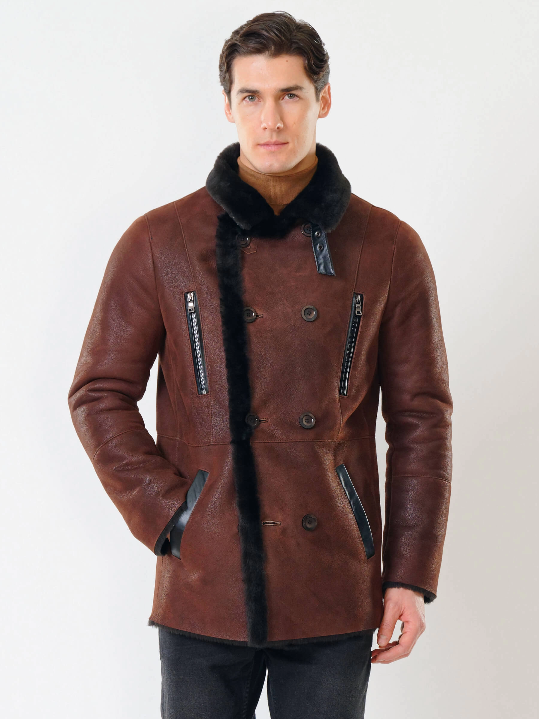 Дубленка двубортная мужская 431, коричневая, размер 48, артикул 70581