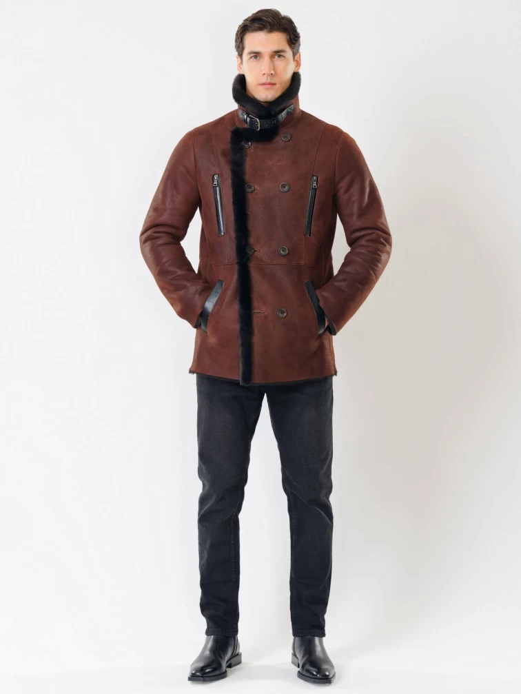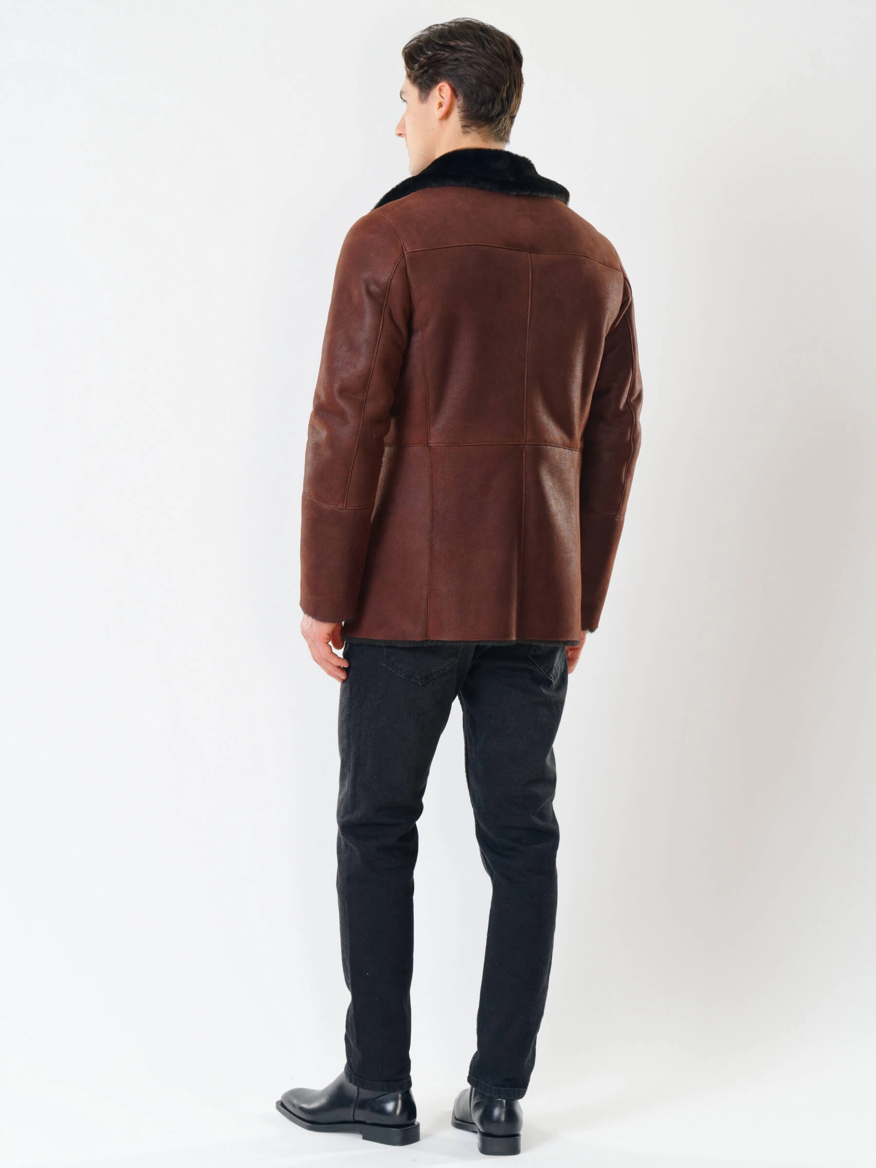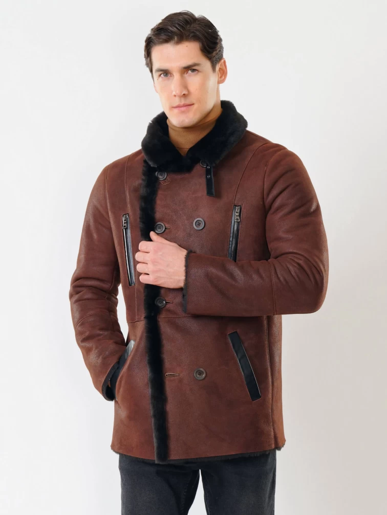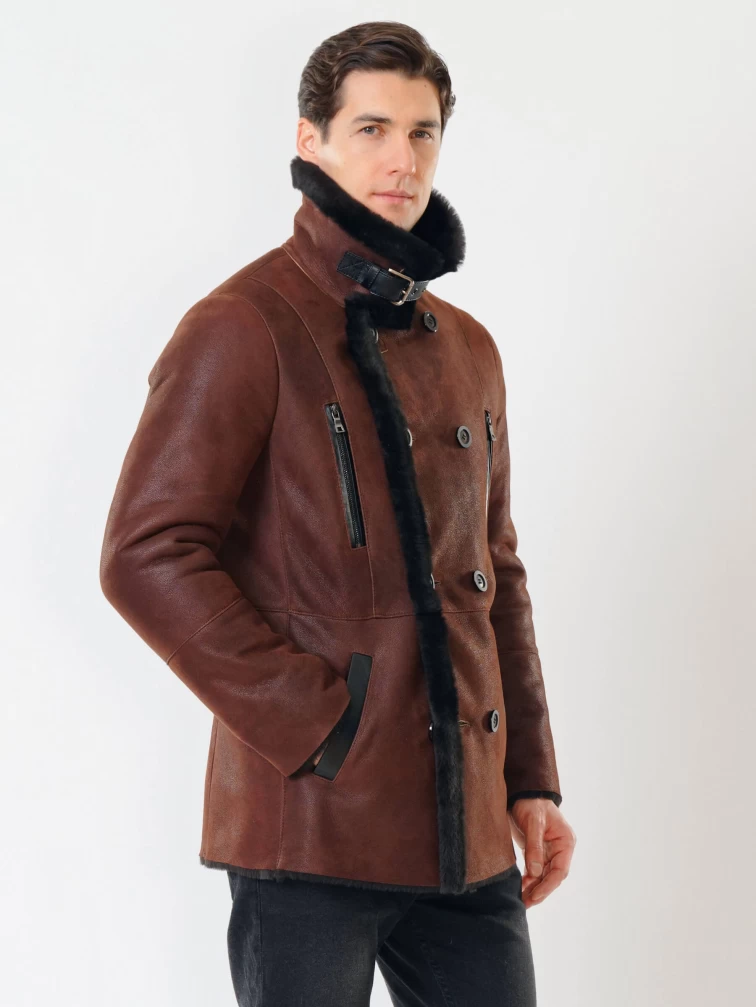 Дубленка двубортная мужская 431, коричневая, размер 48, артикул 70581