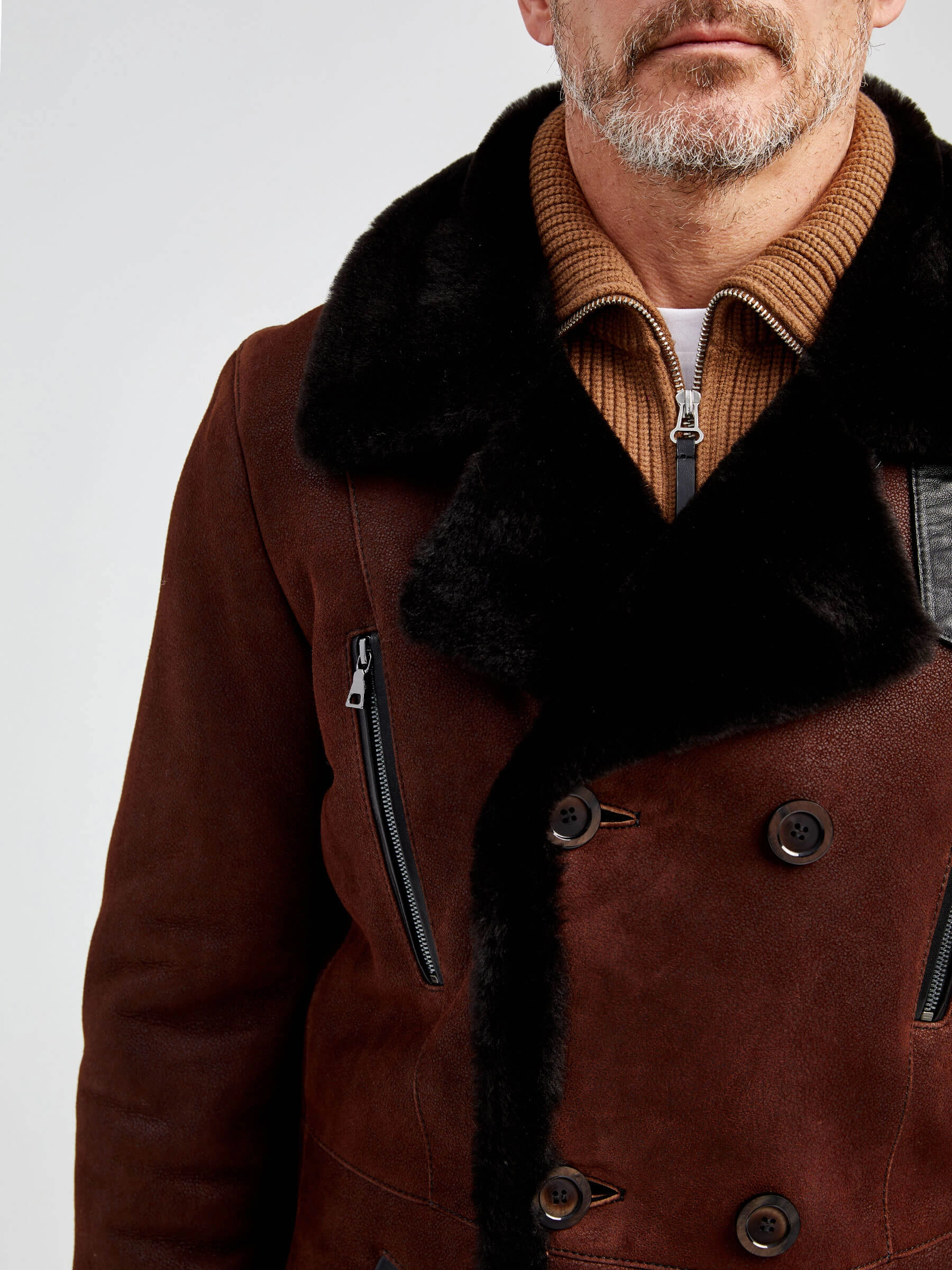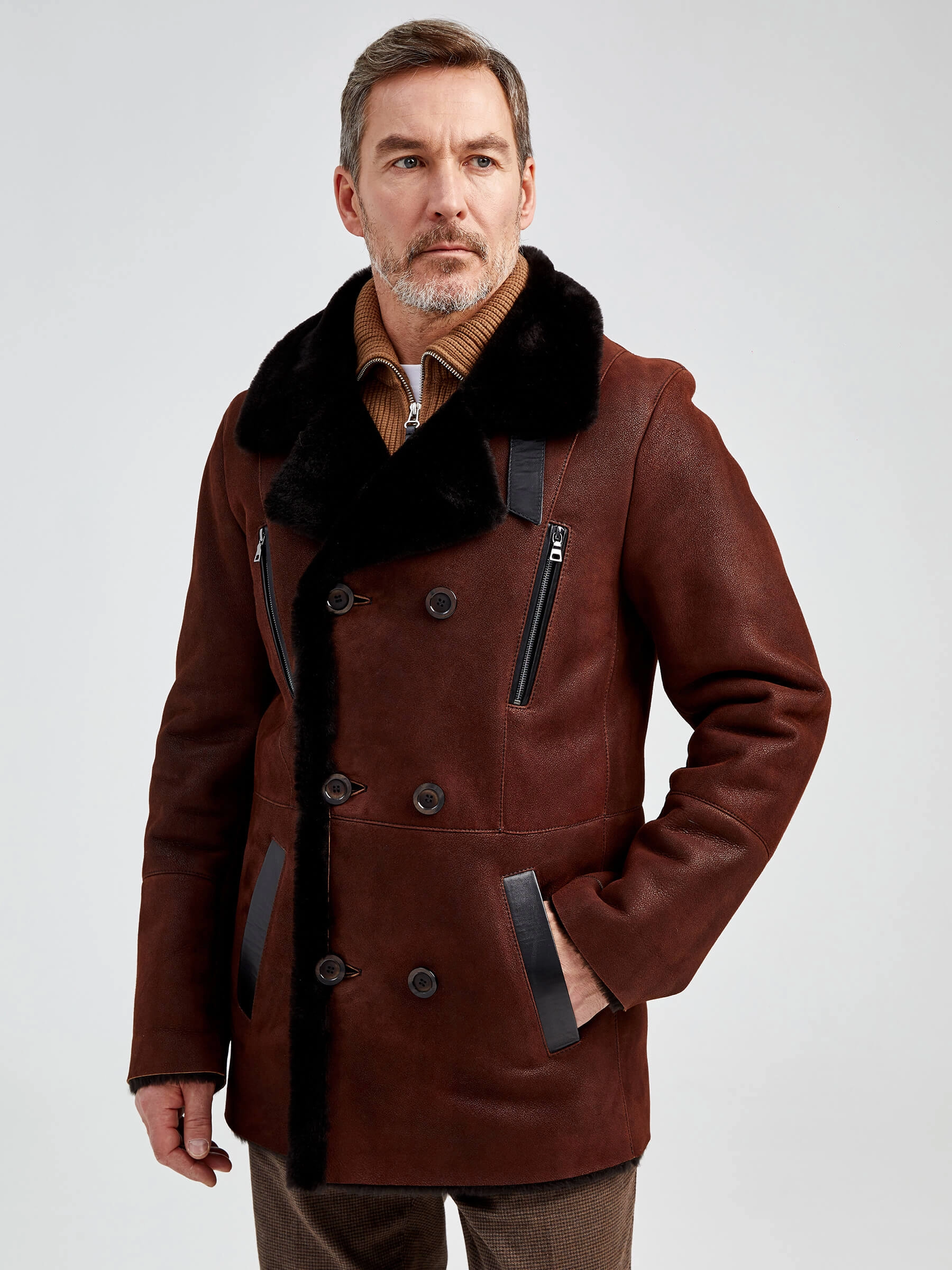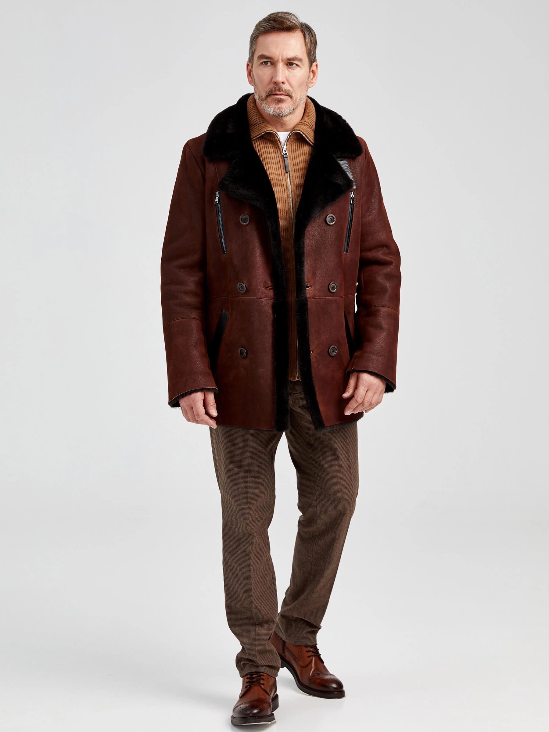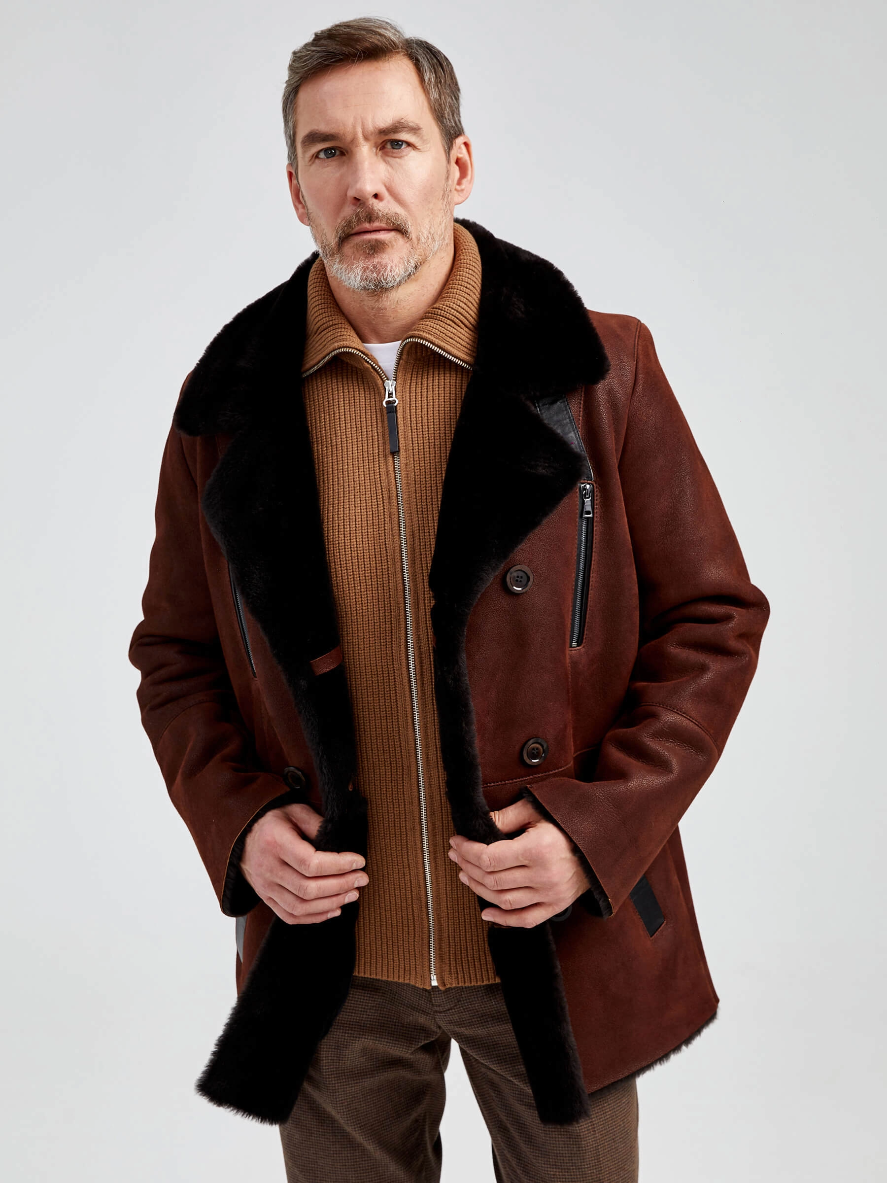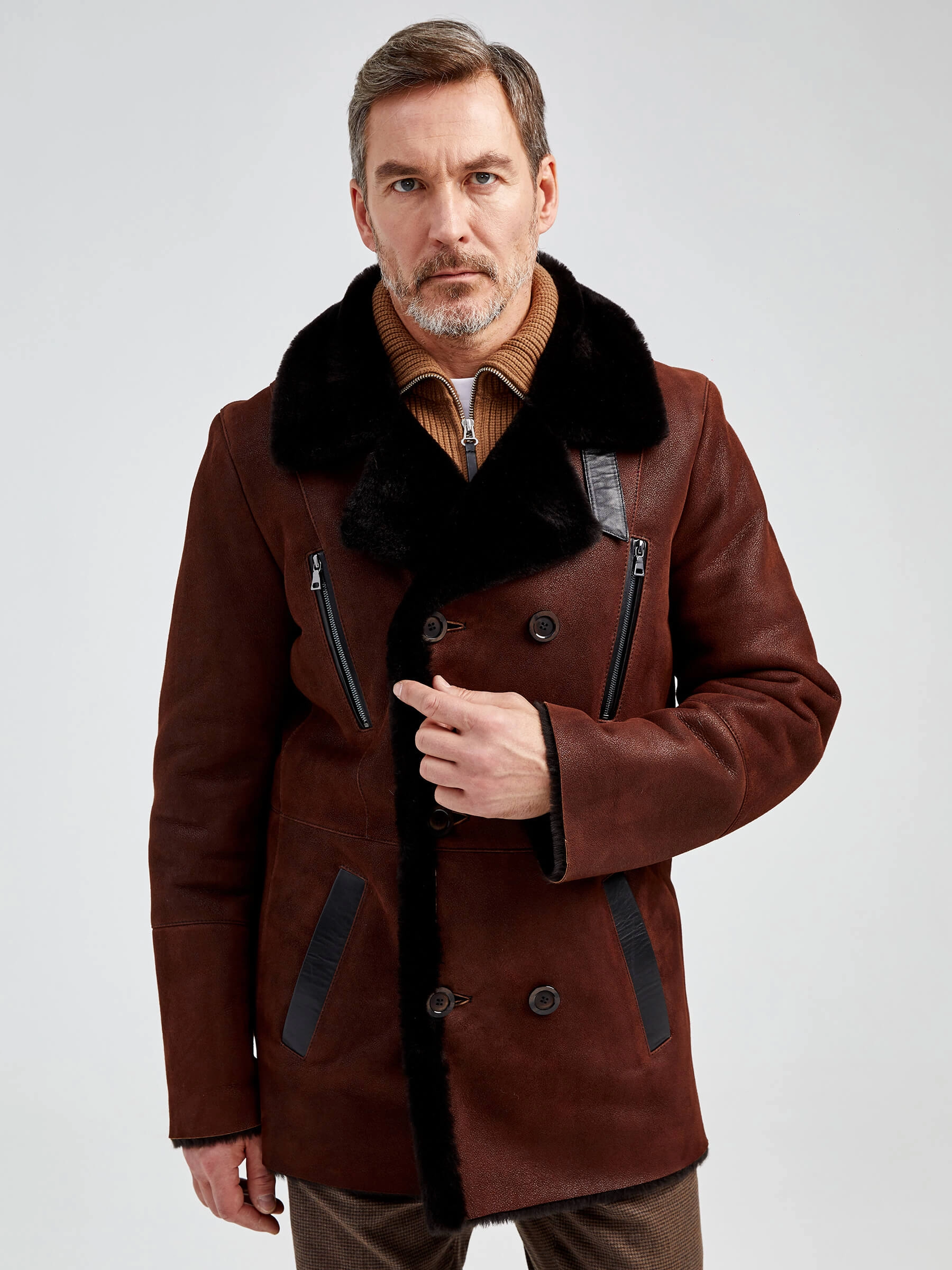 Дубленка двубортная мужская 431, коричневая, размер 48, артикул 70782