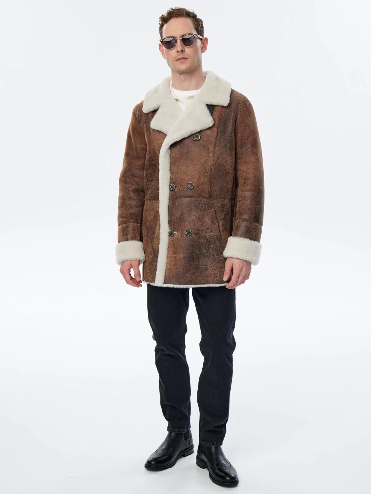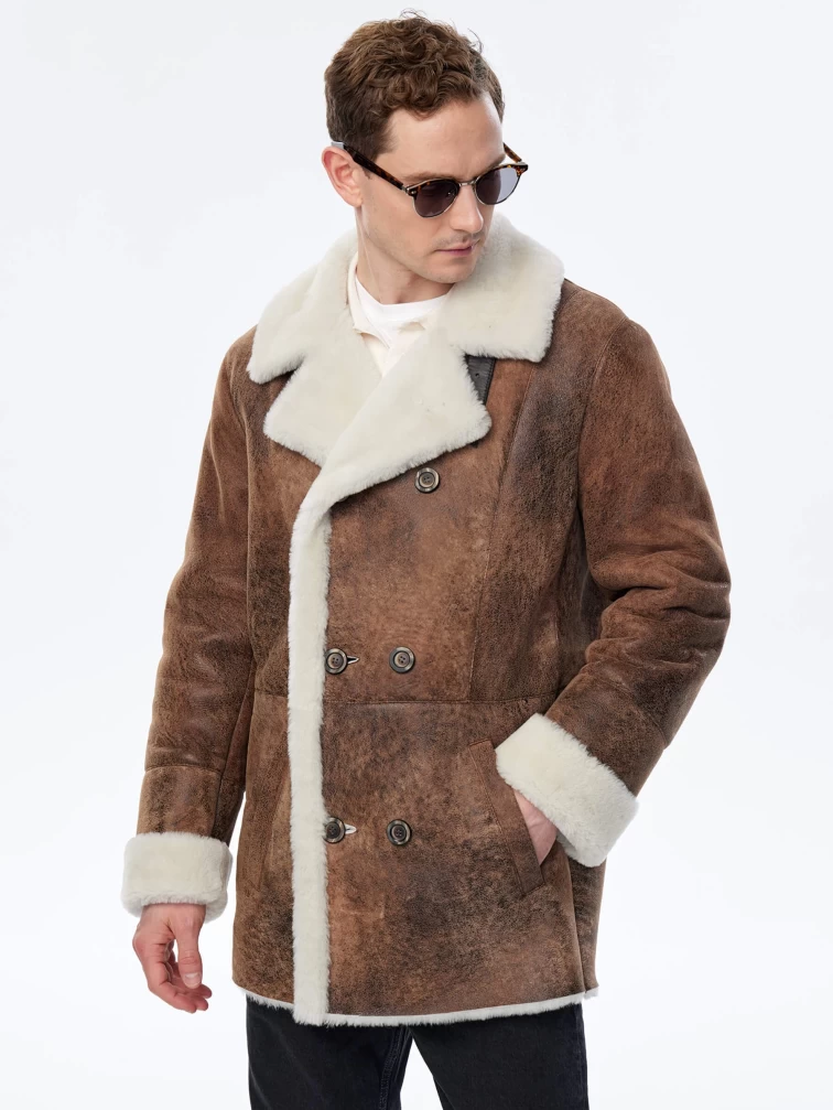 Дубленка двубортная премиум класса для мужчин 431, светло-коричневая, размер 50, артикул 71500
