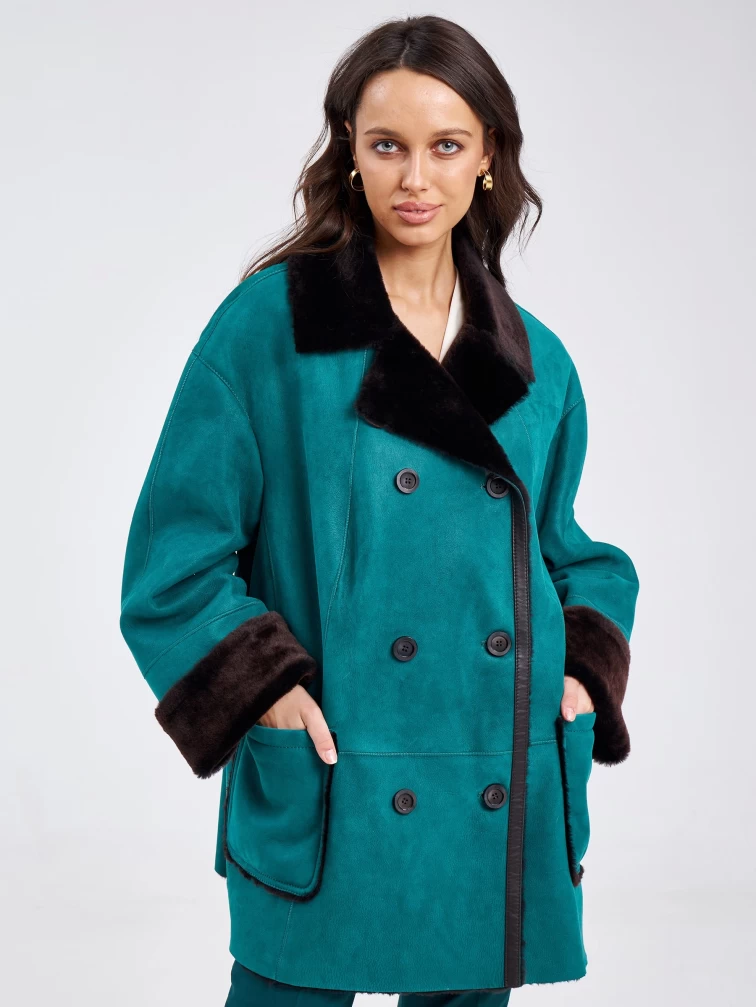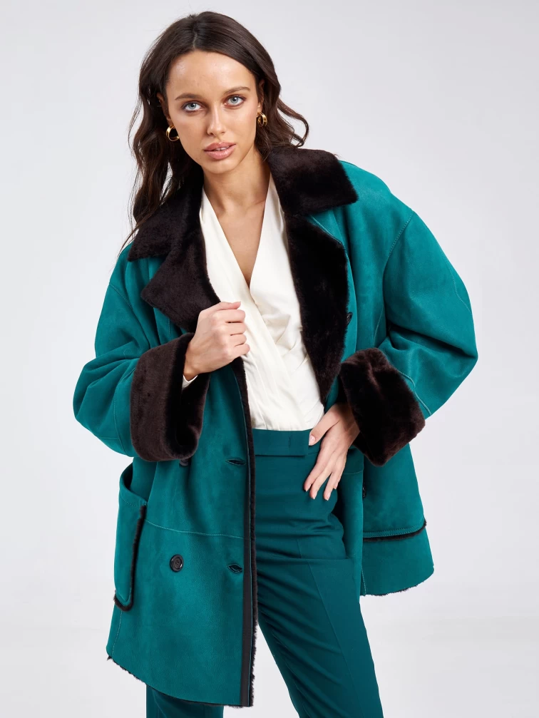 Товар короткая двубортная женская дубленка премиум класса 298, зеленая, размер 68, артикул 62890 выполнен из овчина "мерино" с застежкой пуговицы. Рассчитан на сезон: зима. Длина изделия 85 см, силуэт свободный.