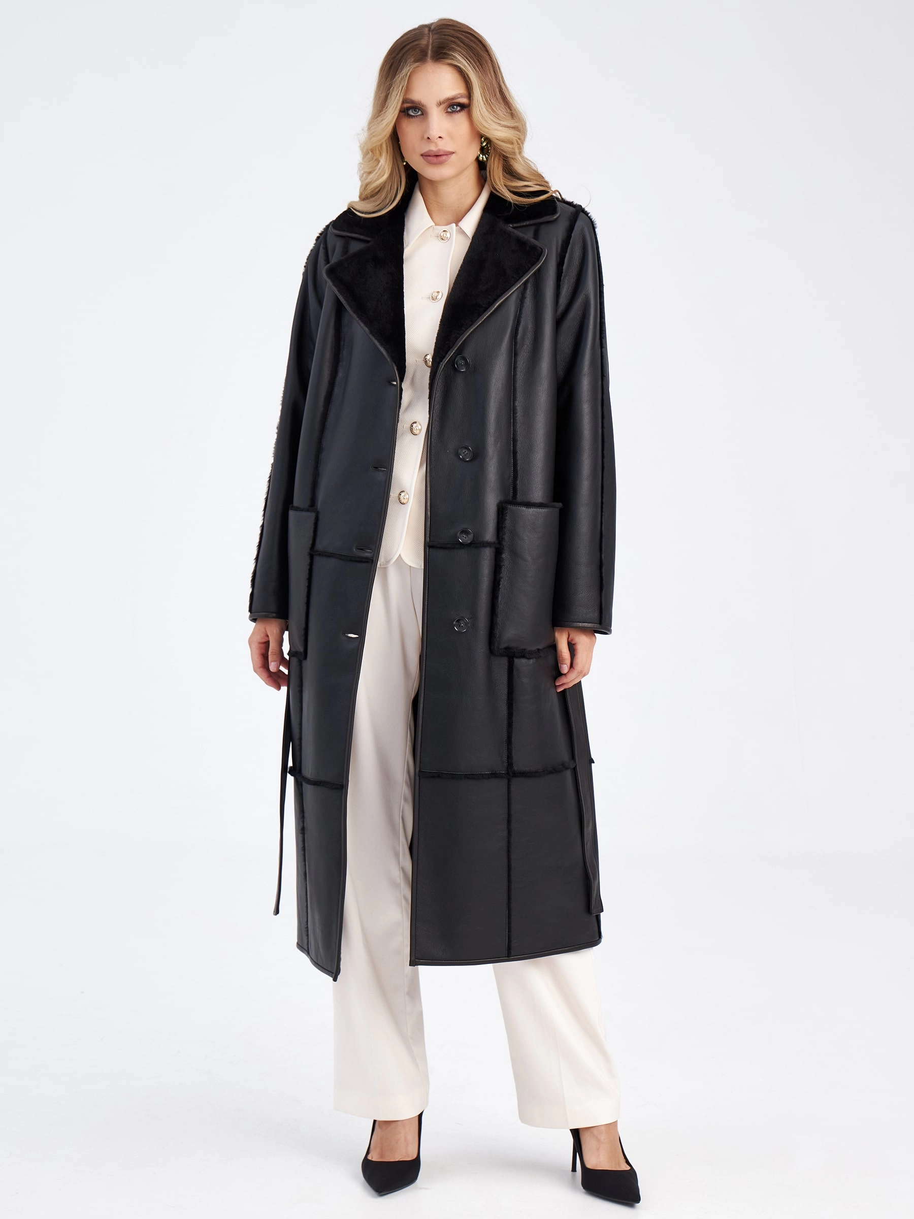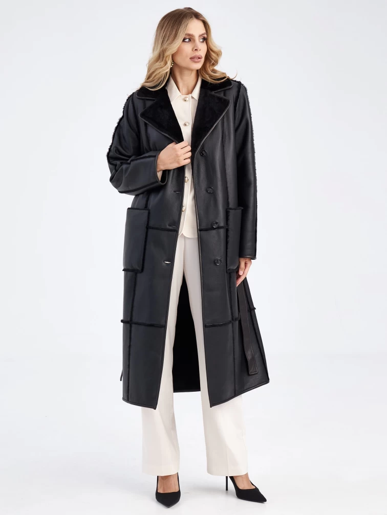 Товар классическая длинная дубленка премиум класса для женщин 2013н, черная, размер 48, артикул 63230 выполнен из овчина "мерино" с застежкой пуговицы. Рассчитан на сезон: осень-зима. Длина изделия свыше 90 см, силуэт прямой.