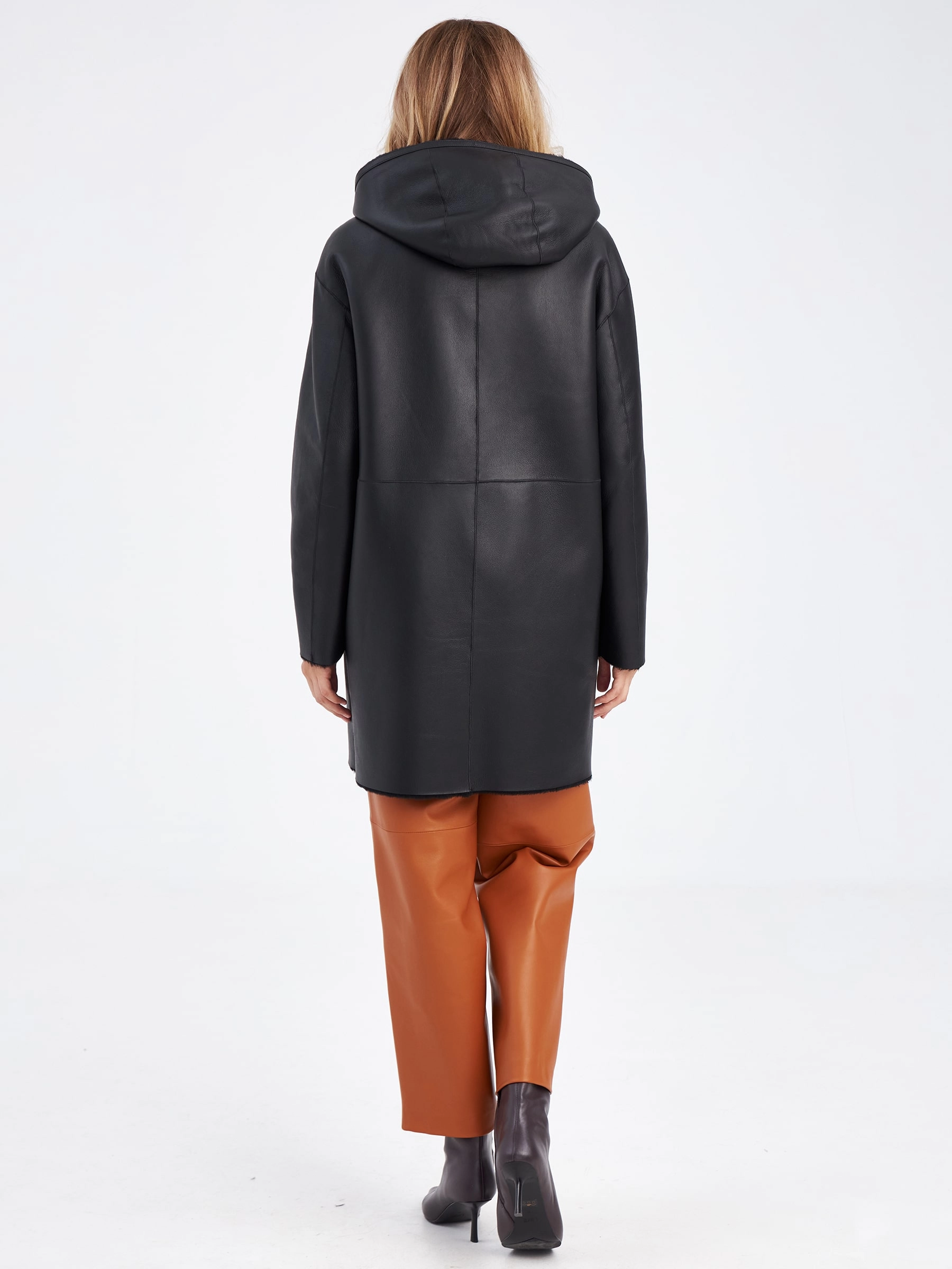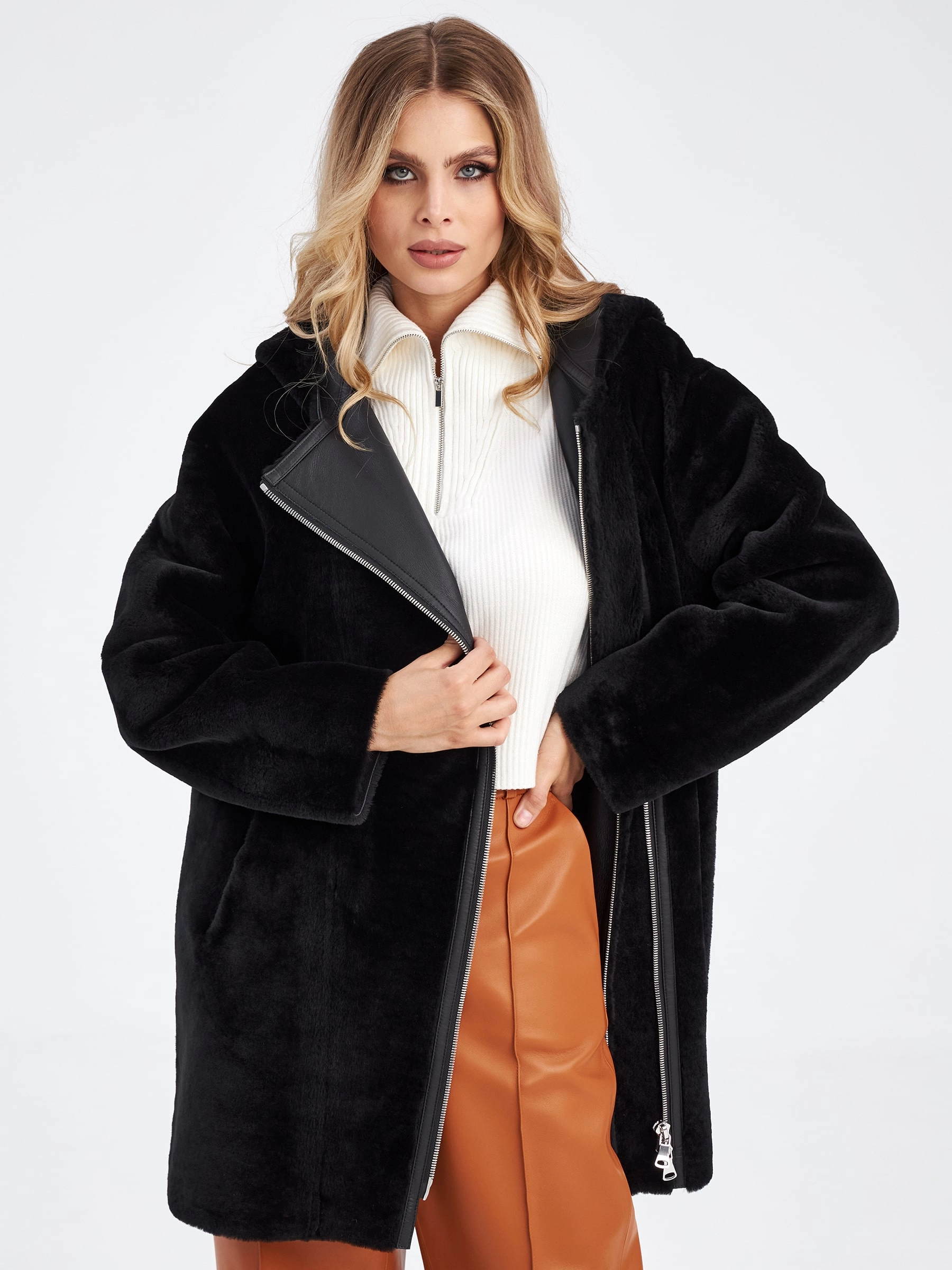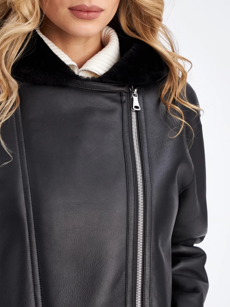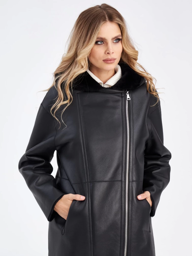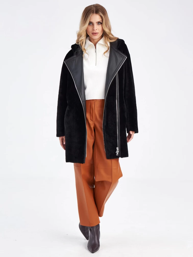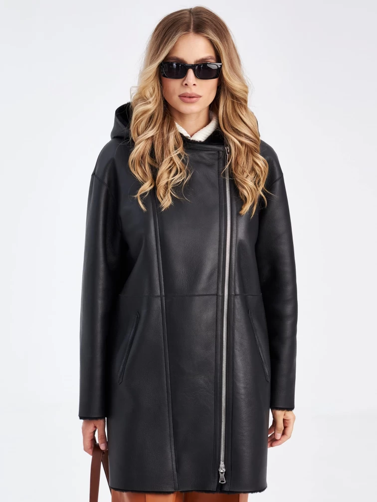 Женская двусторонняя дубленка косуха с капюшоном премиум класса 2012н, черная, размер 44, артикул 63200