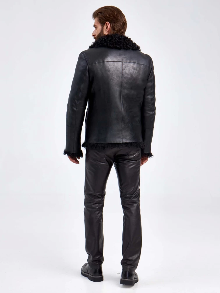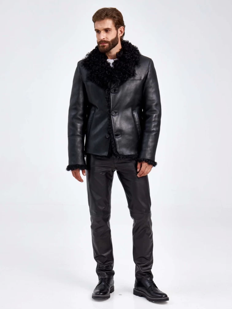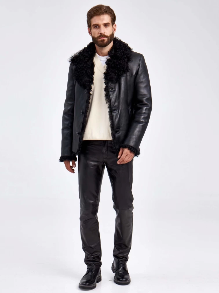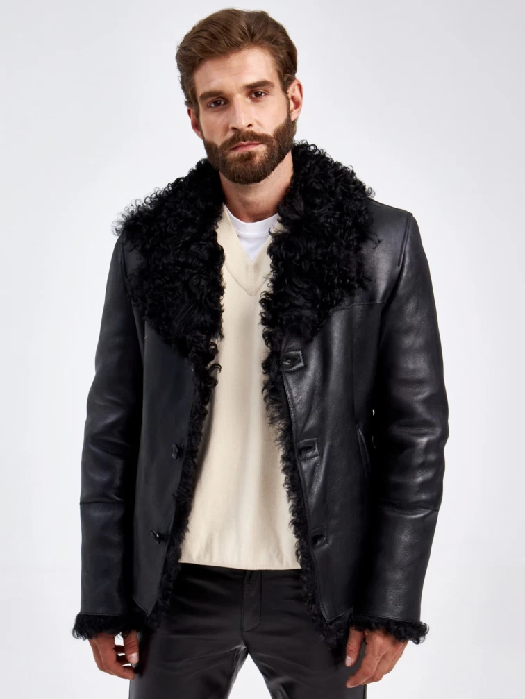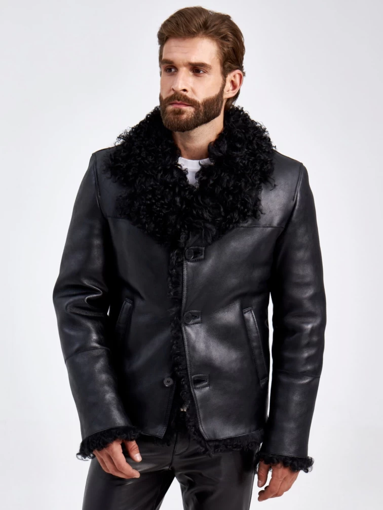 Короткая мужская дубленка из овчины тиградо 1062, черная, размер 50, артикул 29360