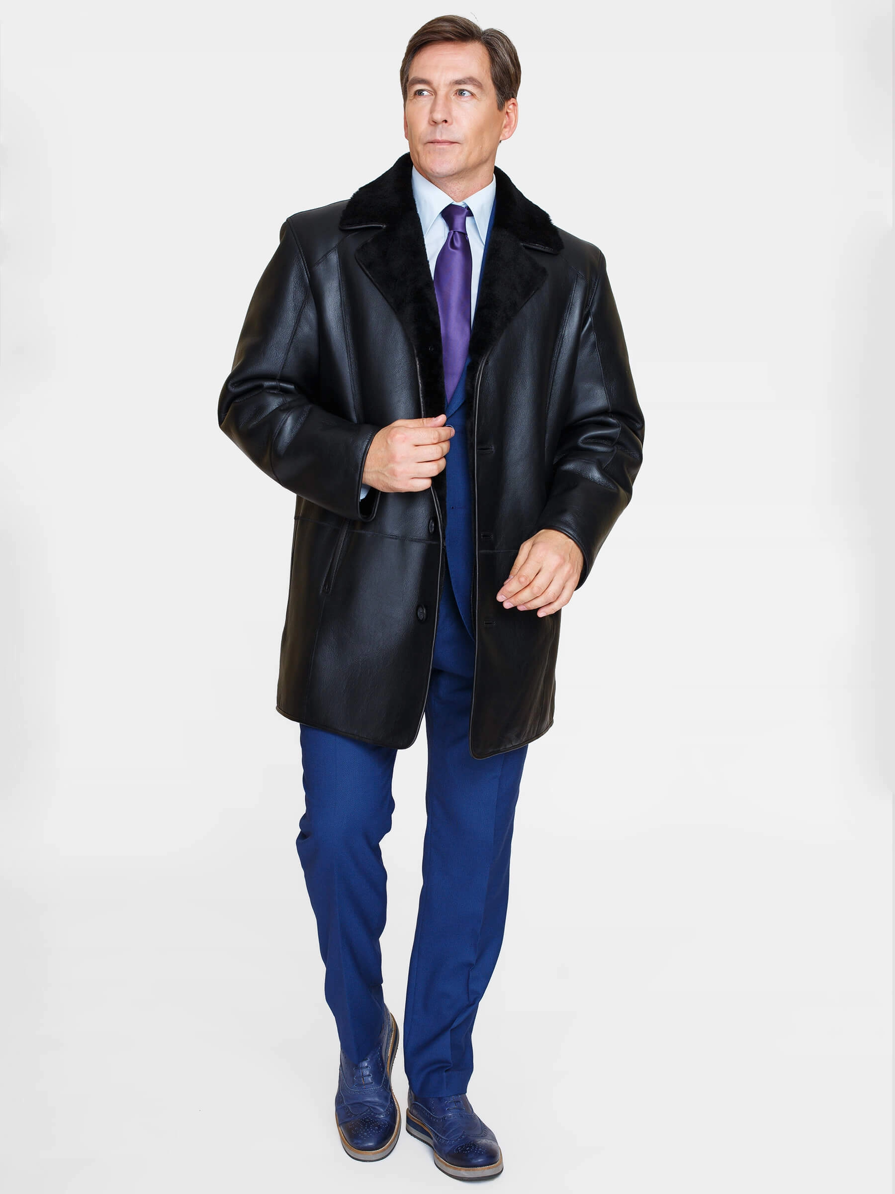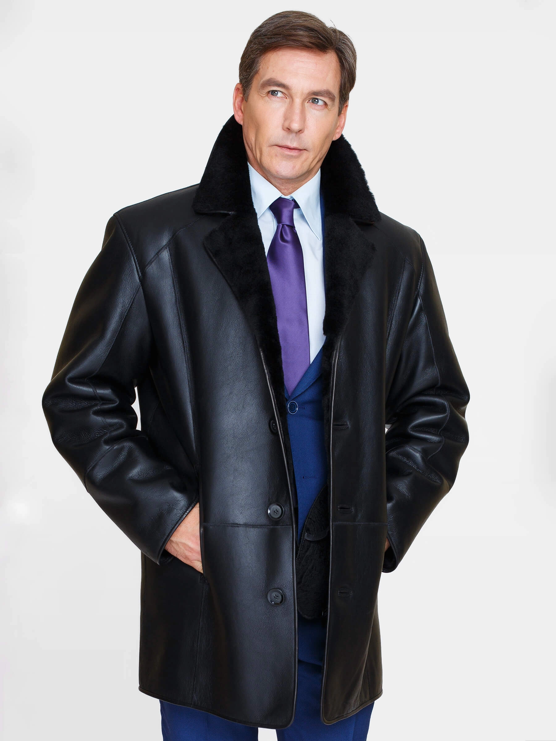 Классическая мужская дубленка. Устойчивое защитное покрытие на кожевой поверхности. На лацкане воротника предусмотрена застёжка, закрывающая горловину. Кожаные канты по борту и низу модели для предотвращения деформаций. Удобные наружные и внутренние карманы. Комфортная посадка по фигуре. Аккуратная работа наших портных.