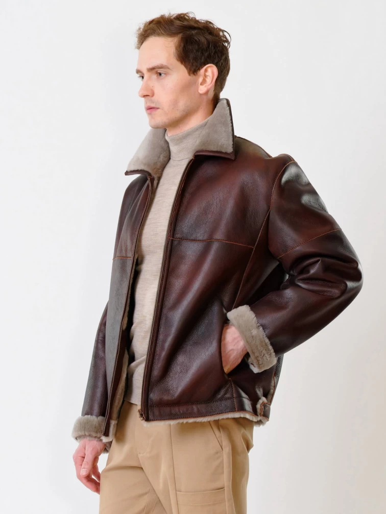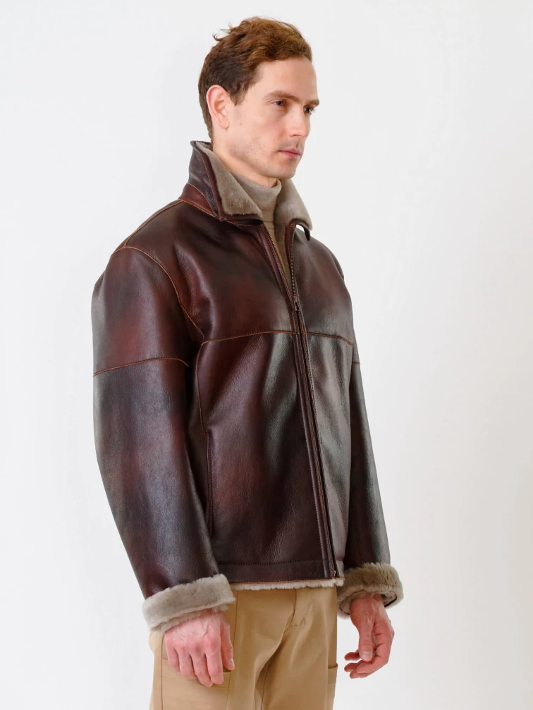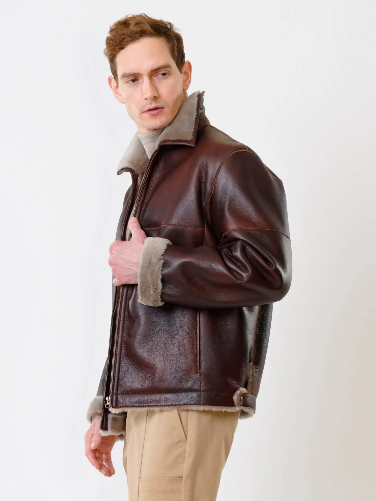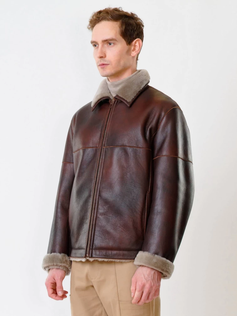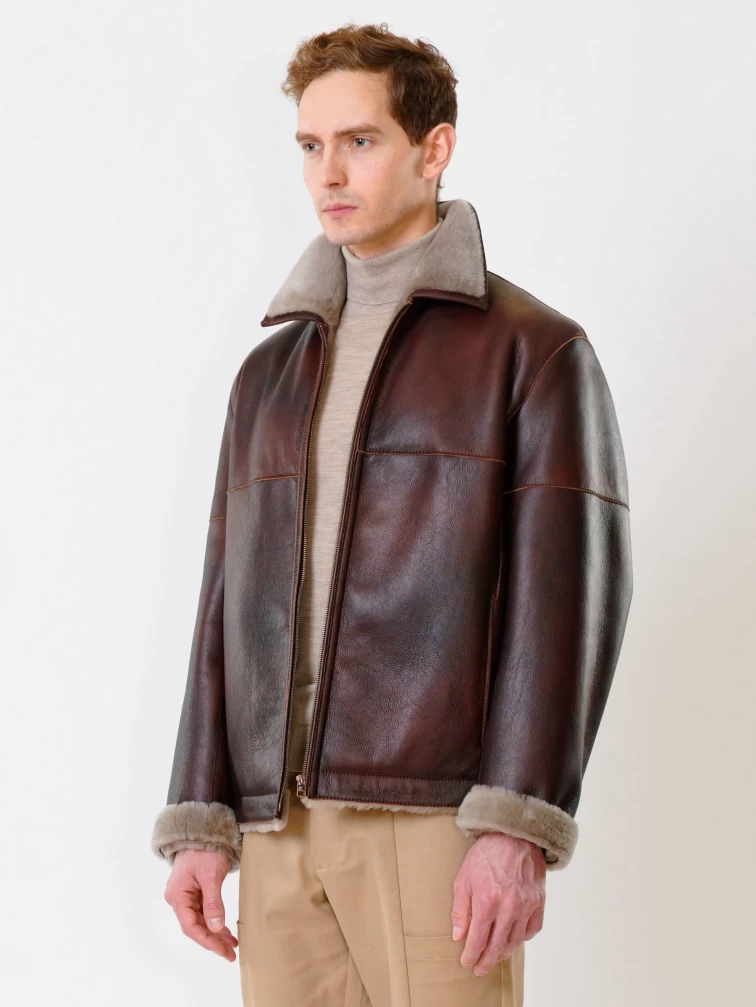 Короткая мужская дубленка 140, виски, размер 48, артикул 70250