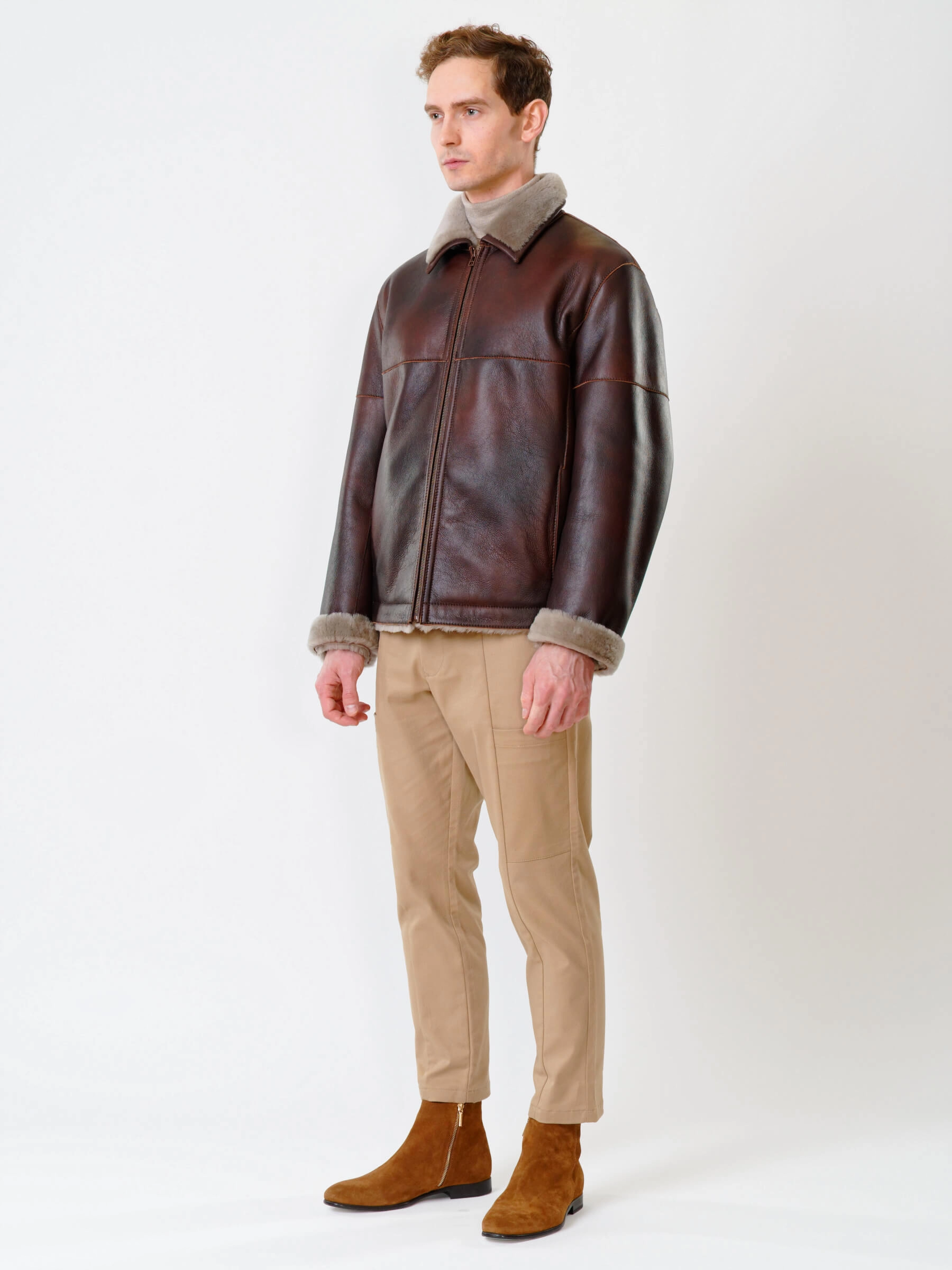 Товар короткая мужская дубленка 140, виски, размер 48, артикул 70250 выполнен из овчина "мерино" с застежкой молния. Рассчитан на сезон: осень-зима. Длина изделия 70 см, силуэт прямой.