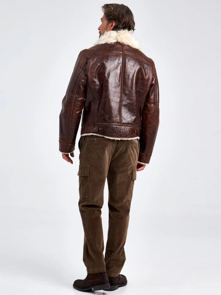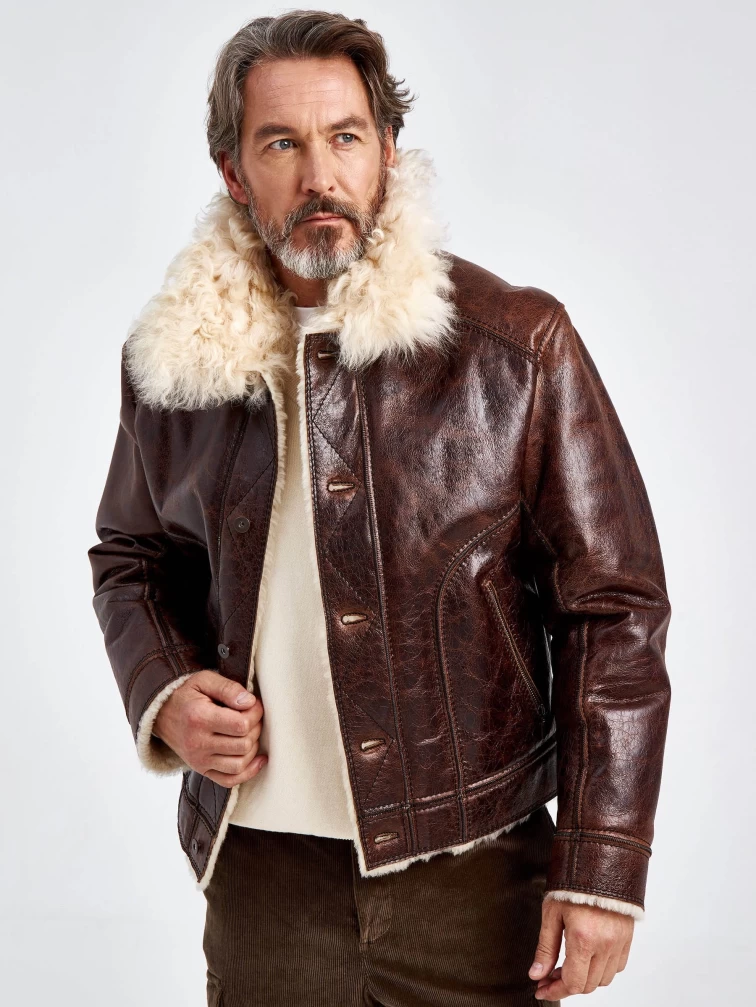 Зимняя мужская кожаная куртка на подкладке из овчины тиградо 151, коричневая, размер 52, артикул 70680