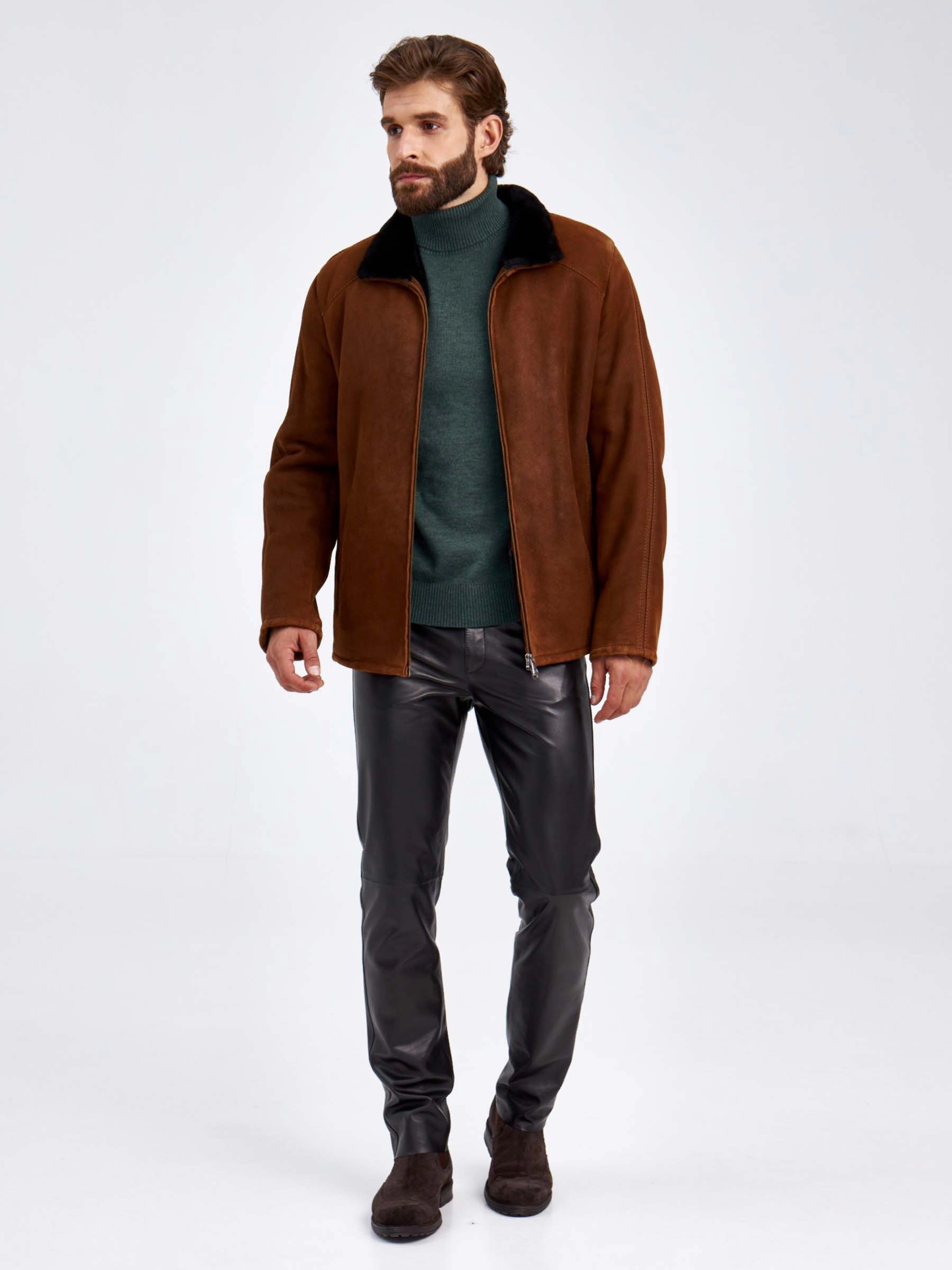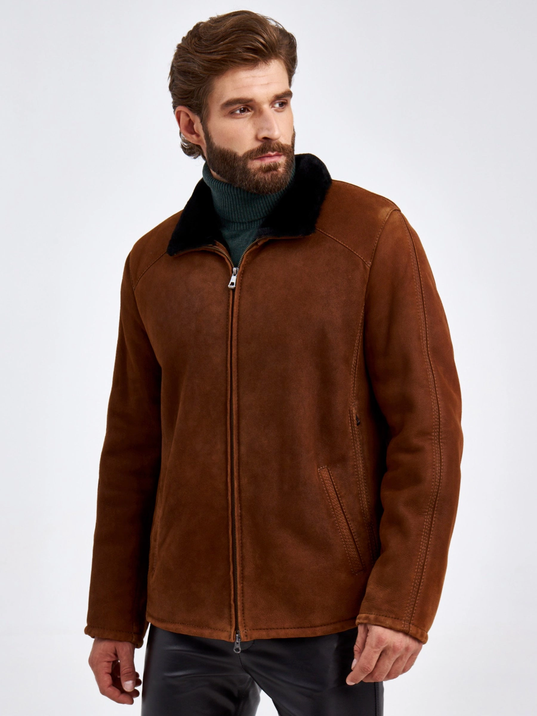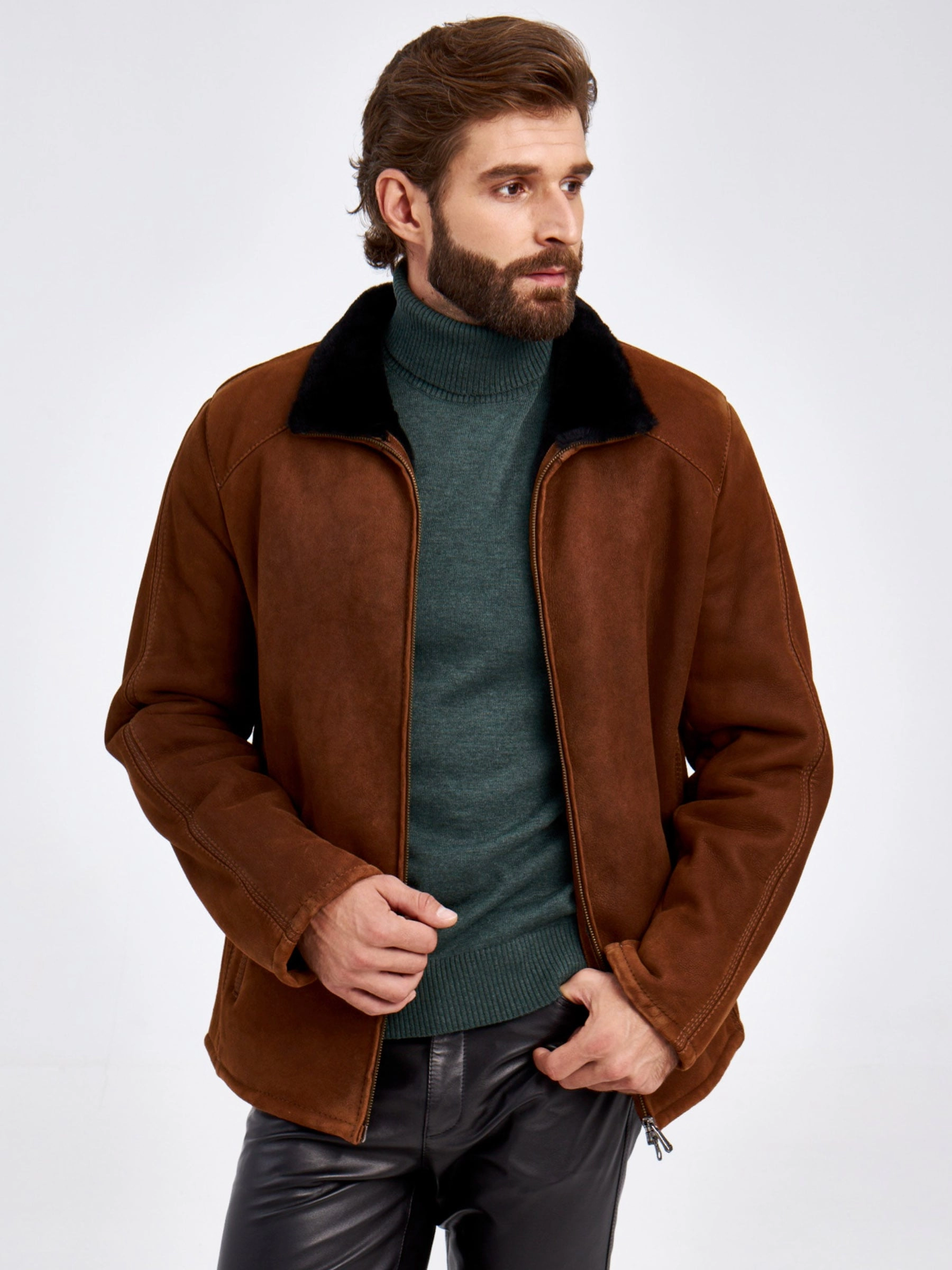 Короткая замшевая дубленка для мужчин 2240, коричневая, размер 48, артикул 29380