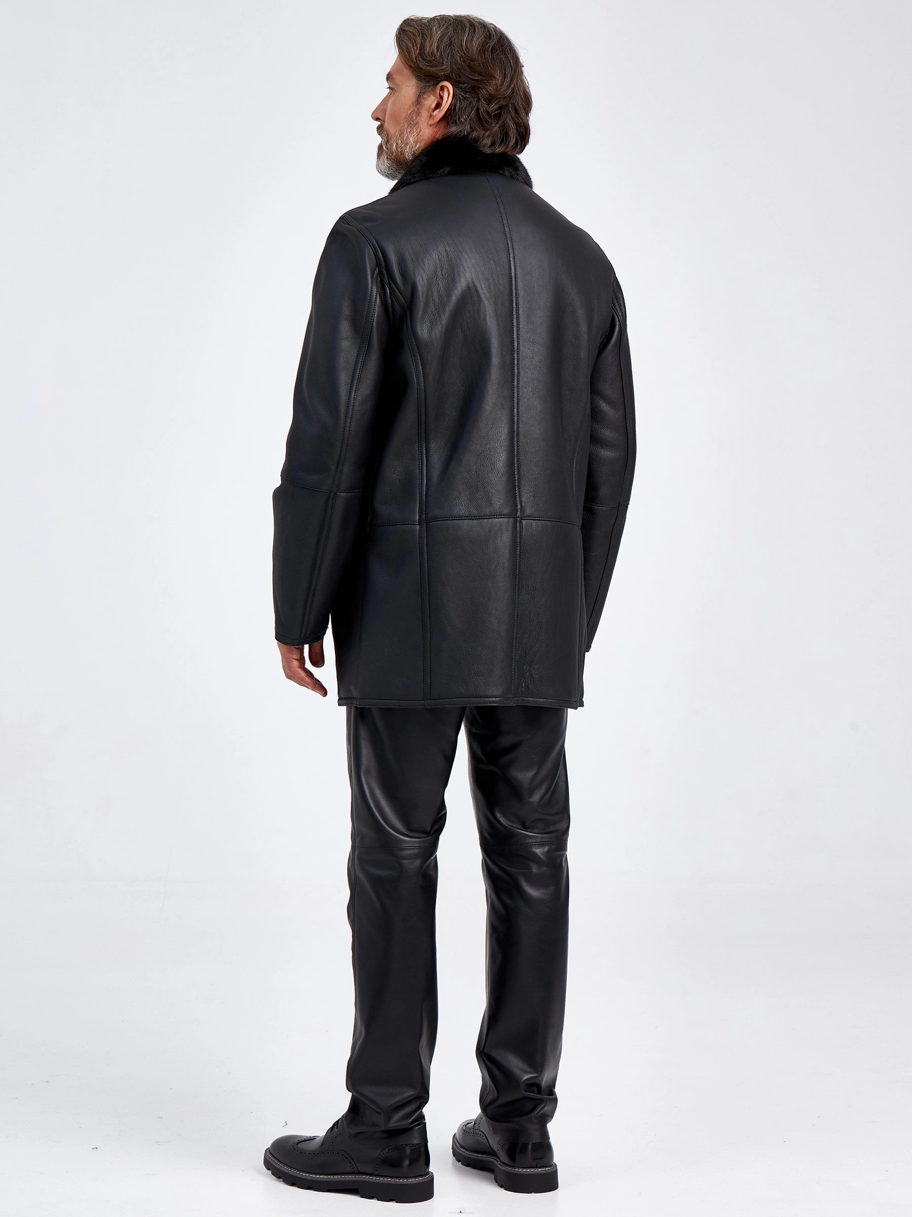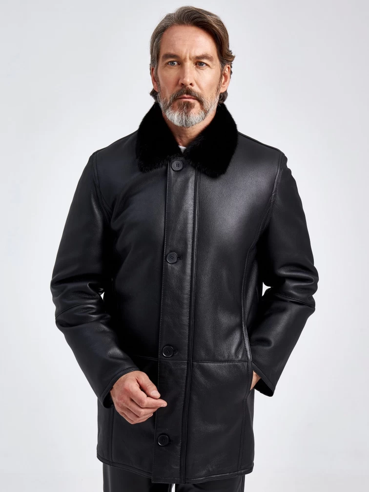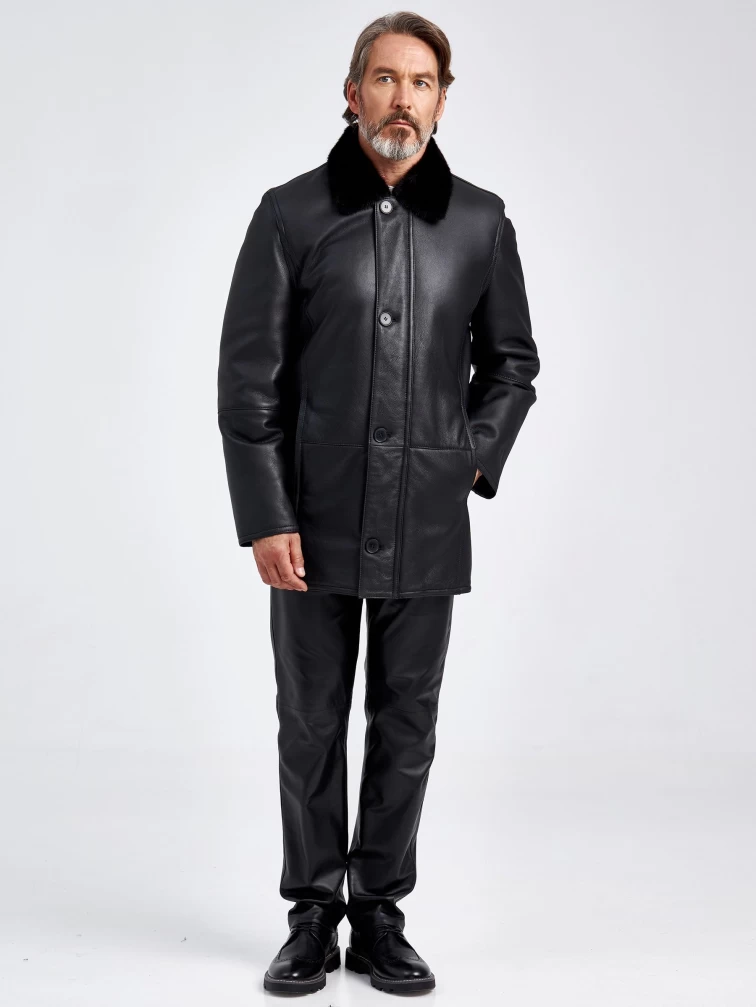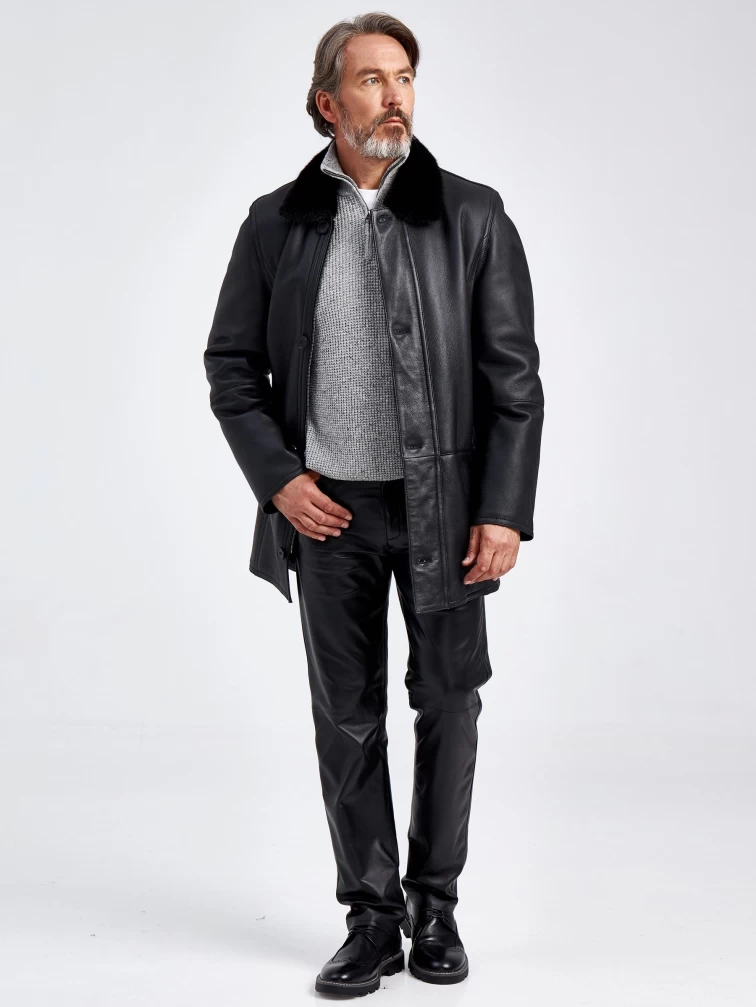 Товар мужская дубленка с норковым воротником 2323, черная, размер 46, артикул 71810 выполнен из овчина "мерино" с застежкой пуговицы. Рассчитан на сезон: осень-зима. Длина изделия 84 см, силуэт прямой.