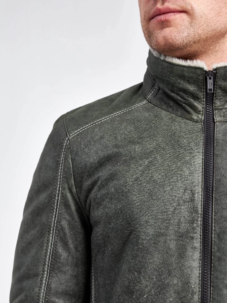 Облегченная мужская дубленка из меха ягненка на молнии с эффектом "Джангл"