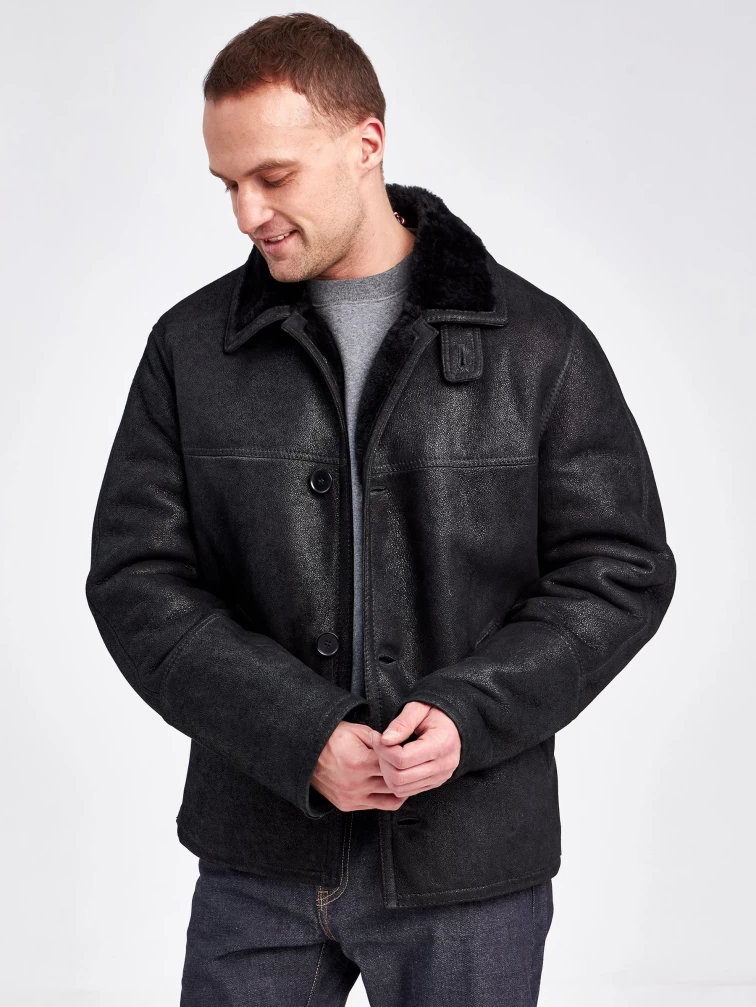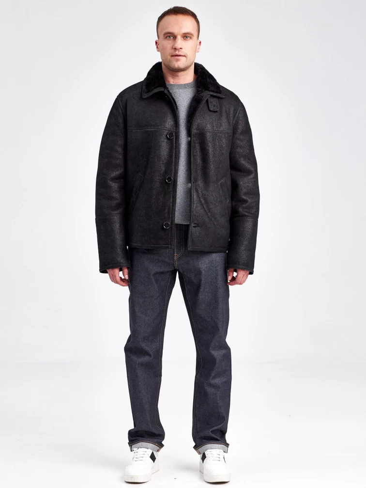 Дубленка мужская 2355, короткая, черная, размер 48, артикул 71190
