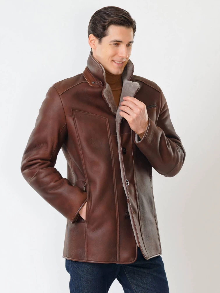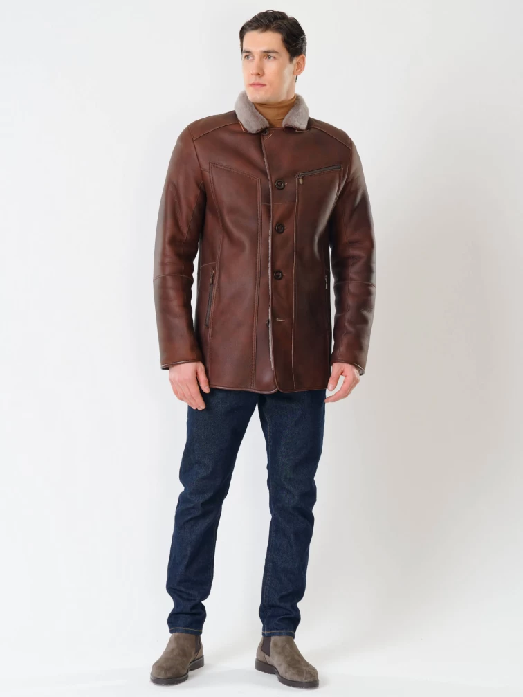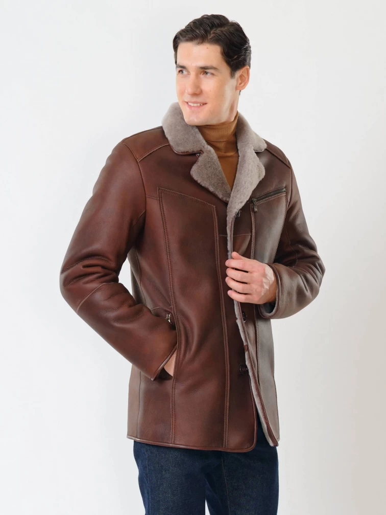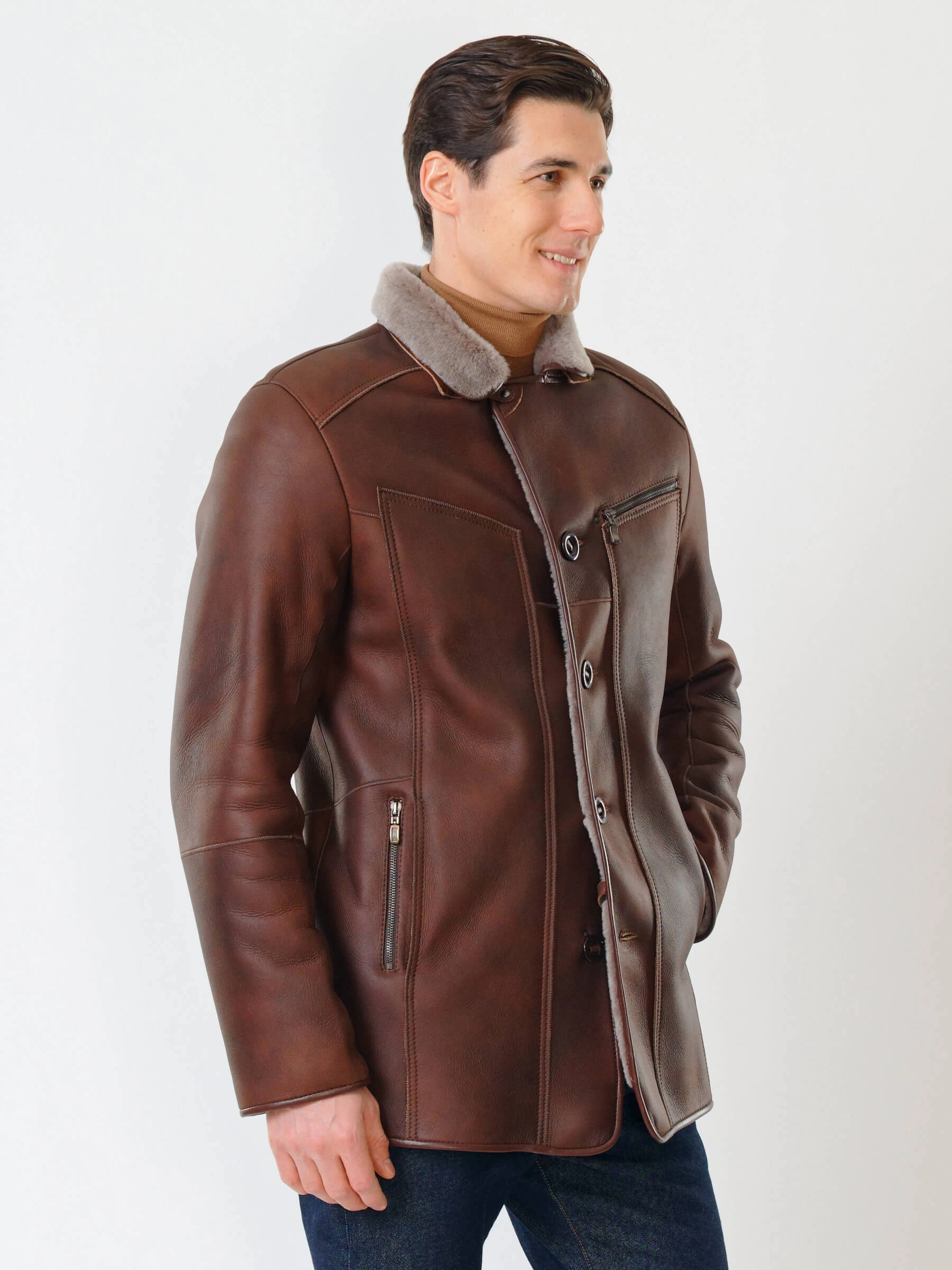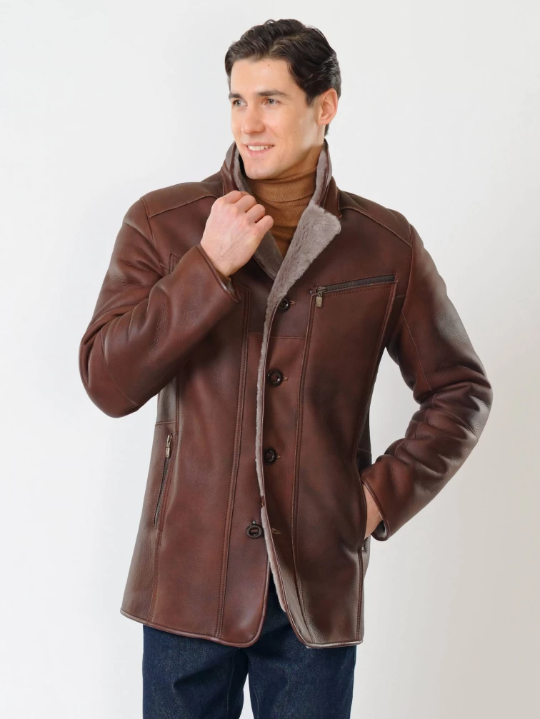 Классическая мужская дубленка 402, виски, размер 48, артикул 70420