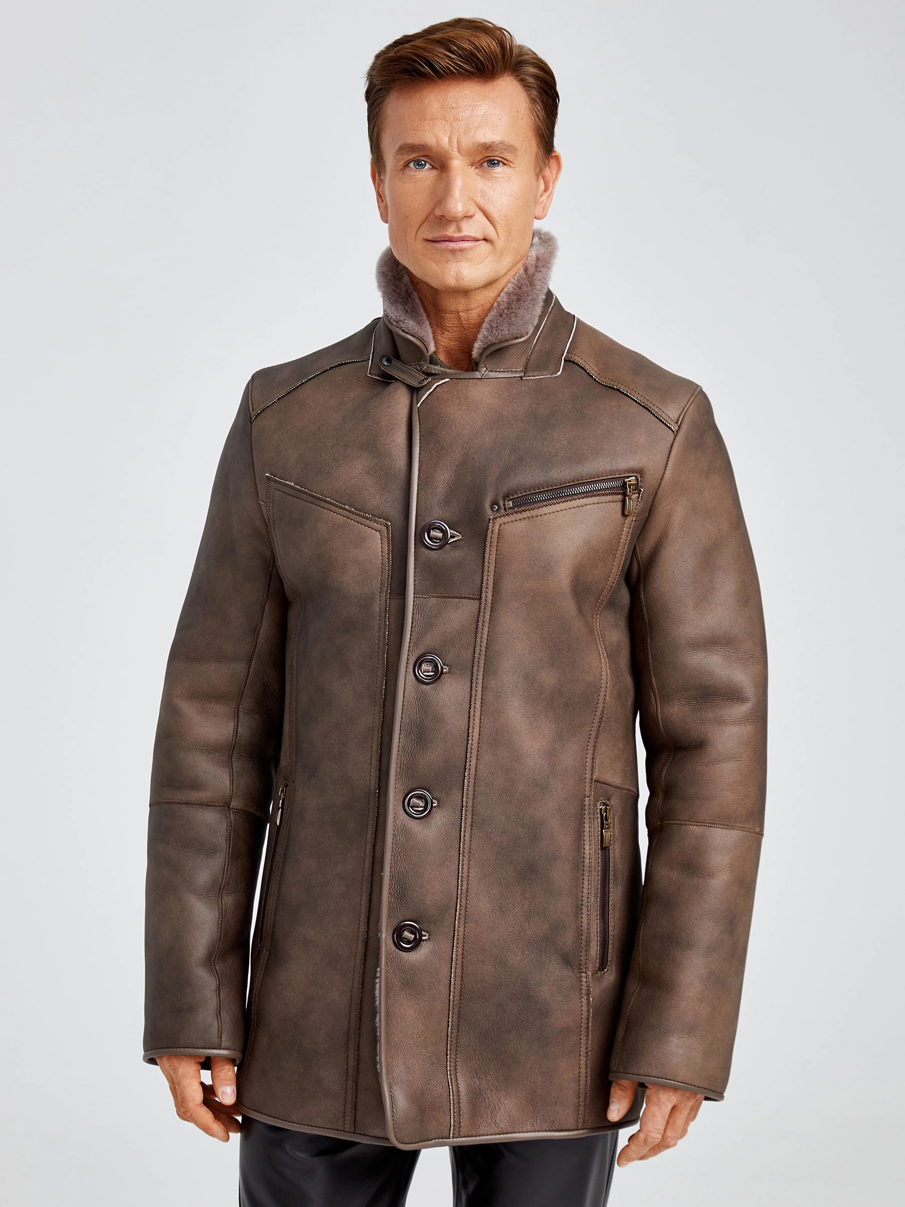 Современная мужская дублёнка, классической длины. Удобные карманы для ключей и документов. Новейшее защитное покрытие. Особо прочные нитки. Приятный на ощупь, максимально густой мех мериносной породы овец. Идеальные швы, продуманные и удобные элементы. Аккуратность во всей работе. Чёткая и очень удобная посадка по фигуре. Великолепная свобода движений. Абсолютный комфорт.