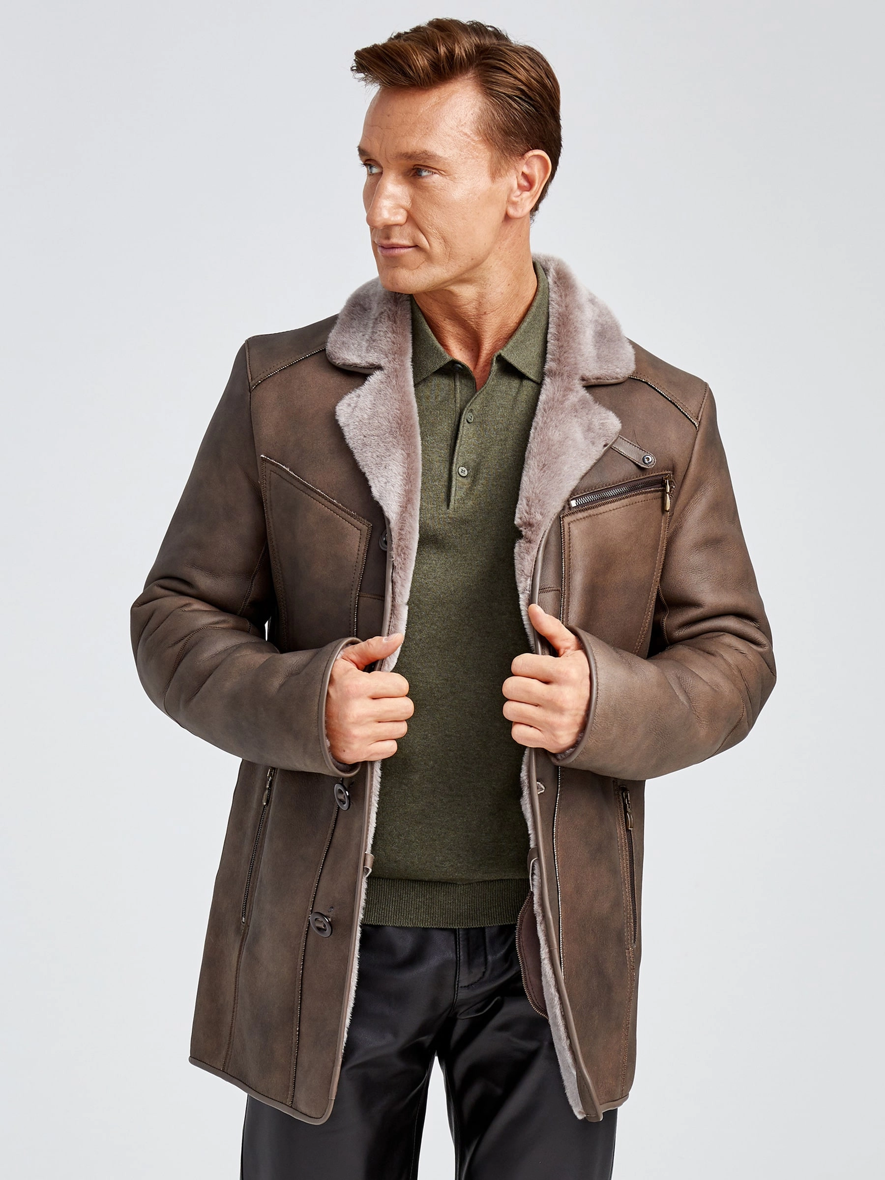 Классическая мужская дубленка 402, серо-коричневая, размер 50, артикул 70751