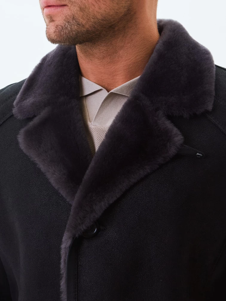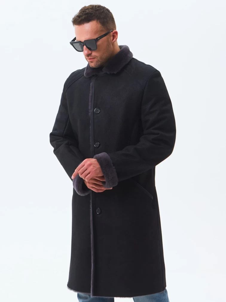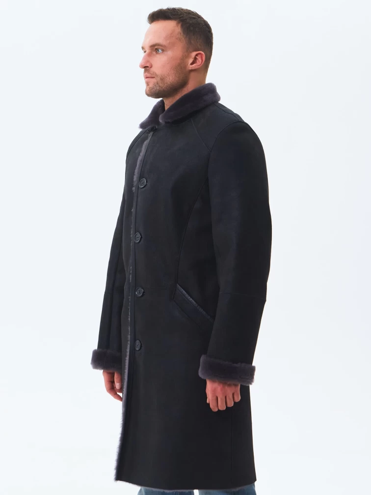 Элегантное мужское меховое пальто. Идеальное стилистическое сочетание с классическим деловым костюмом. Тонкорунная овчина мериносной породы с максимально густым шелковистым волосом. Новейшее защитное покрытие надёжно предохраняет от царапин. Верхняя застёжка закрывает горловину. Рельефы полочек создают эффект приталенности. Предусмотрен внутренний карман для документов. Эргономичные боковые карманы с листочками. Сзади выполнена шлица. Идеальные швы, продуманные и удобные элементы. Аккуратность во всей работе. Чёткая и очень удобная посадка по фигуре. Великолепная свобода движений. Абсолютный комфорт.