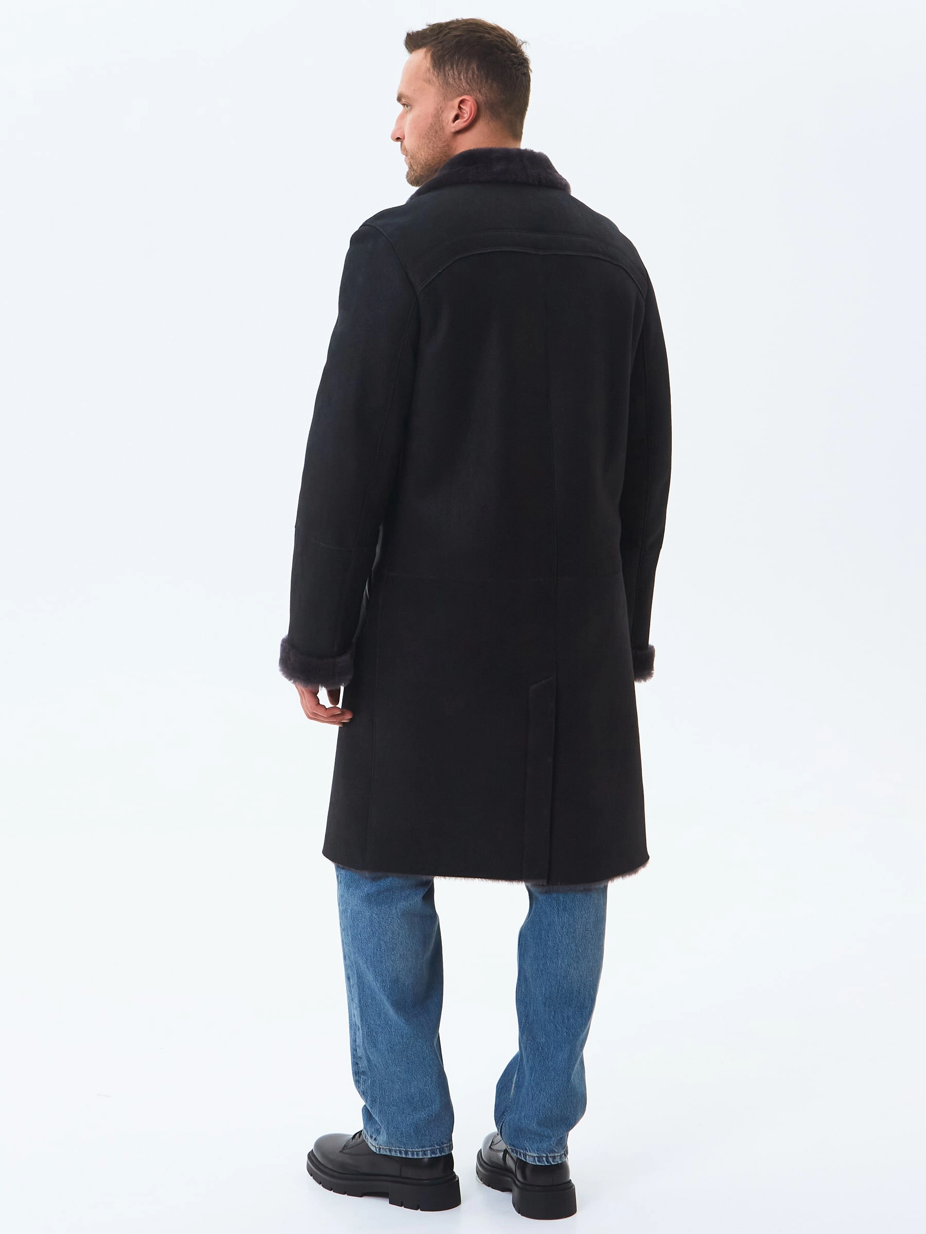 Длинная классическая мужская дубленка премиум класса 407, черная, размер 50, артикул 70440