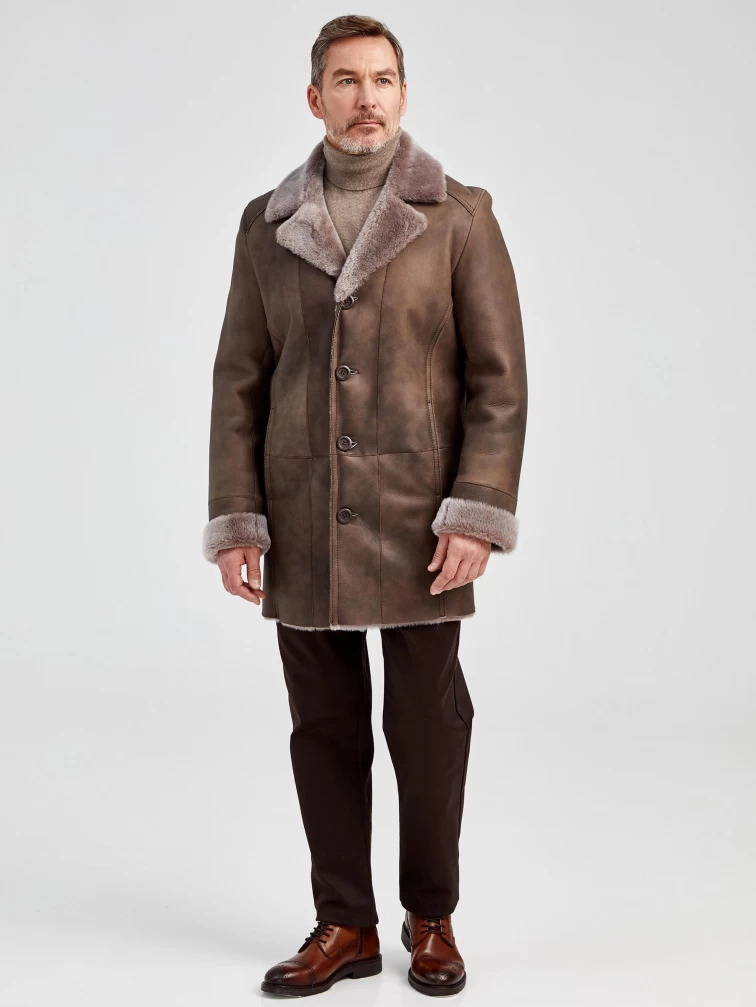 Товар дубленка классическая мужская 412, серо-коричневая, размер 50, артикул 9730 выполнен из овчина "мерино" с застежкой пуговицы. Рассчитан на сезон: осень-зима. Длина изделия 90 см, силуэт прямой.