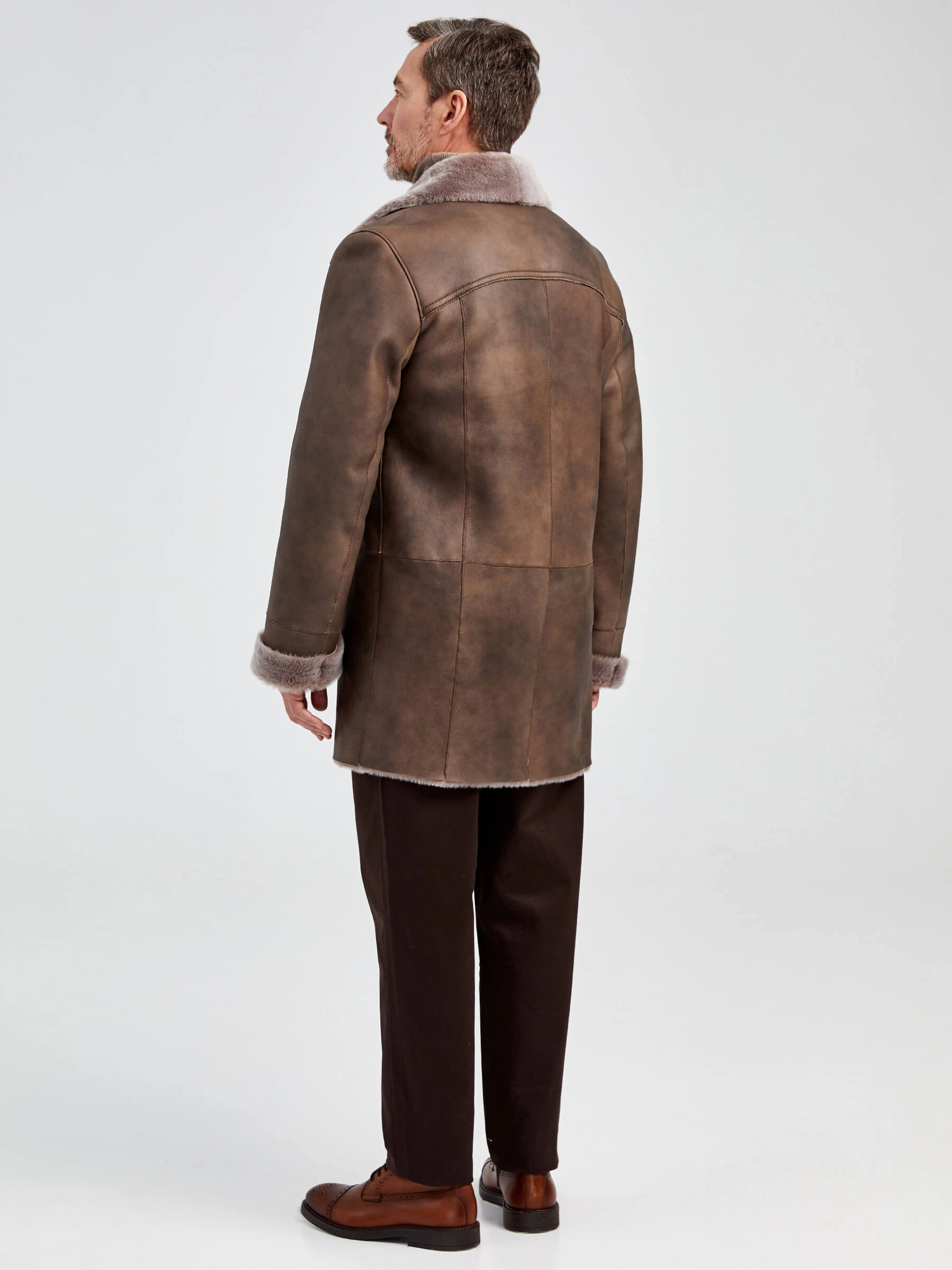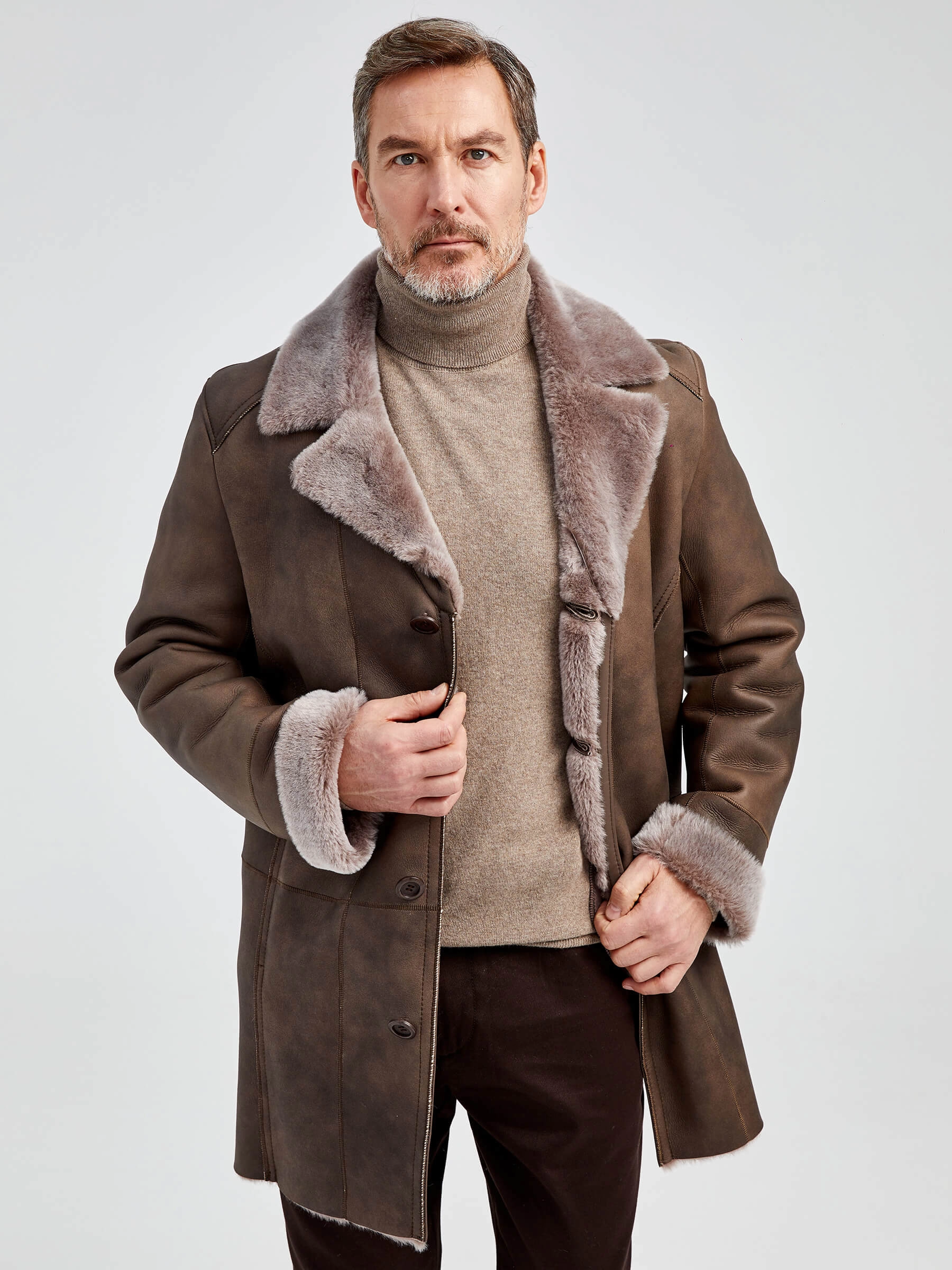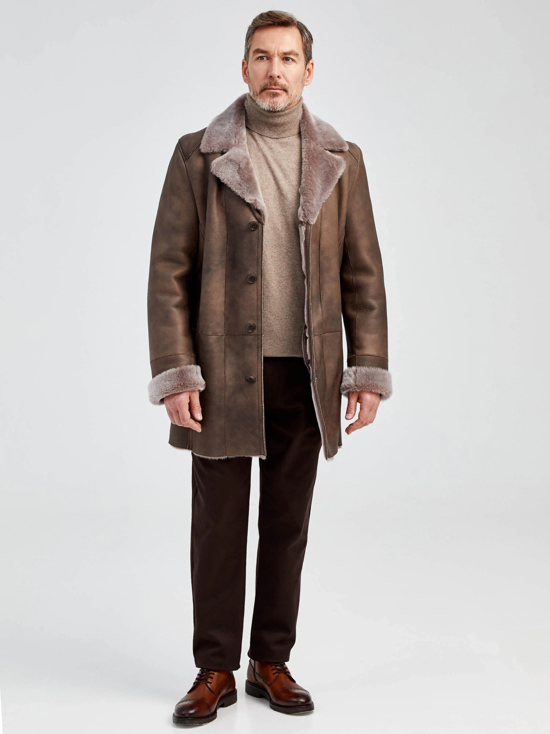 Современная мужская дублёнка классической длины. Удобные карманы для ключей и документов. Новейшее защитное покрытие. Особо прочные нитки. Приятный на ощупь, максимально густой мех мериносной породы овец. Идеальные швы, продуманные и удобные элементы. Аккуратность во всей работе. Чёткая и очень удобная посадка по фигуре. Великолепная свобода движений. Абсолютный комфорт.